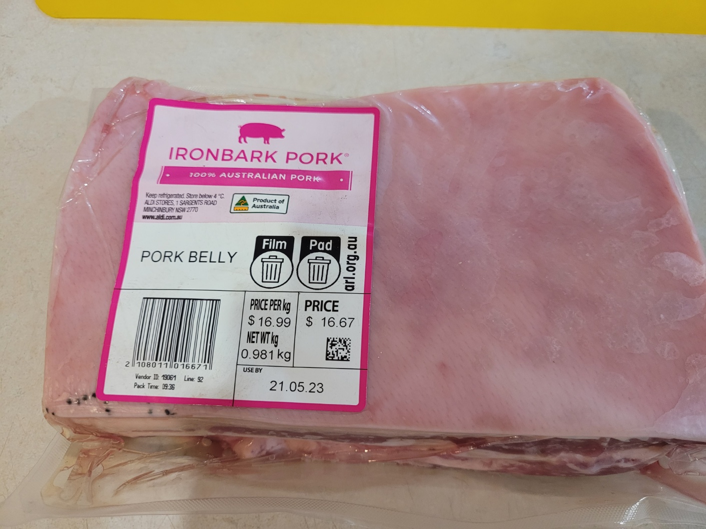 2인분 양으로 통삼겹 한 줄