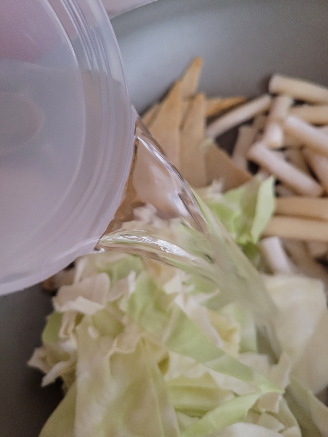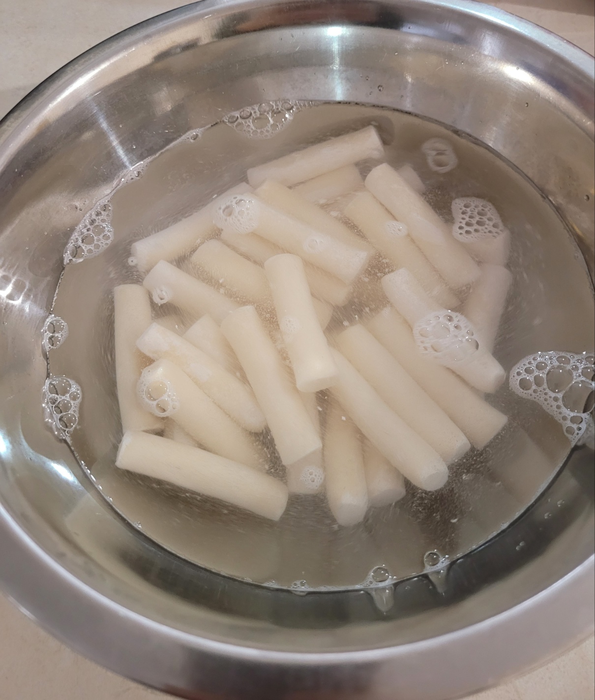밀떡 100g은 잠시 물에 불려 사용했어요.