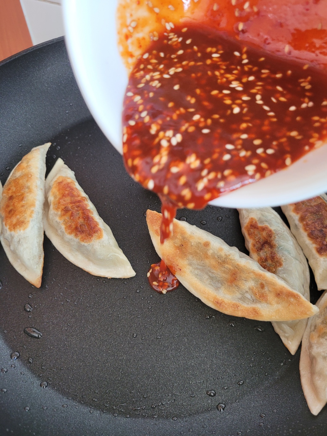 만두 굽고 양념만 만들어