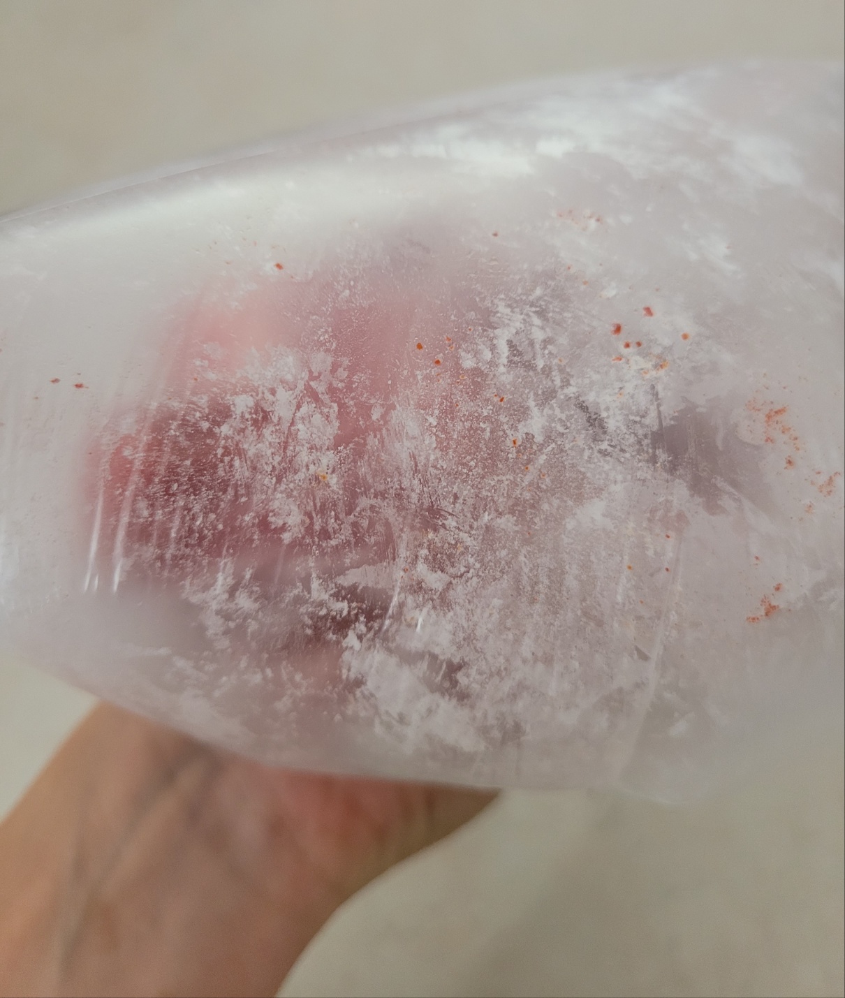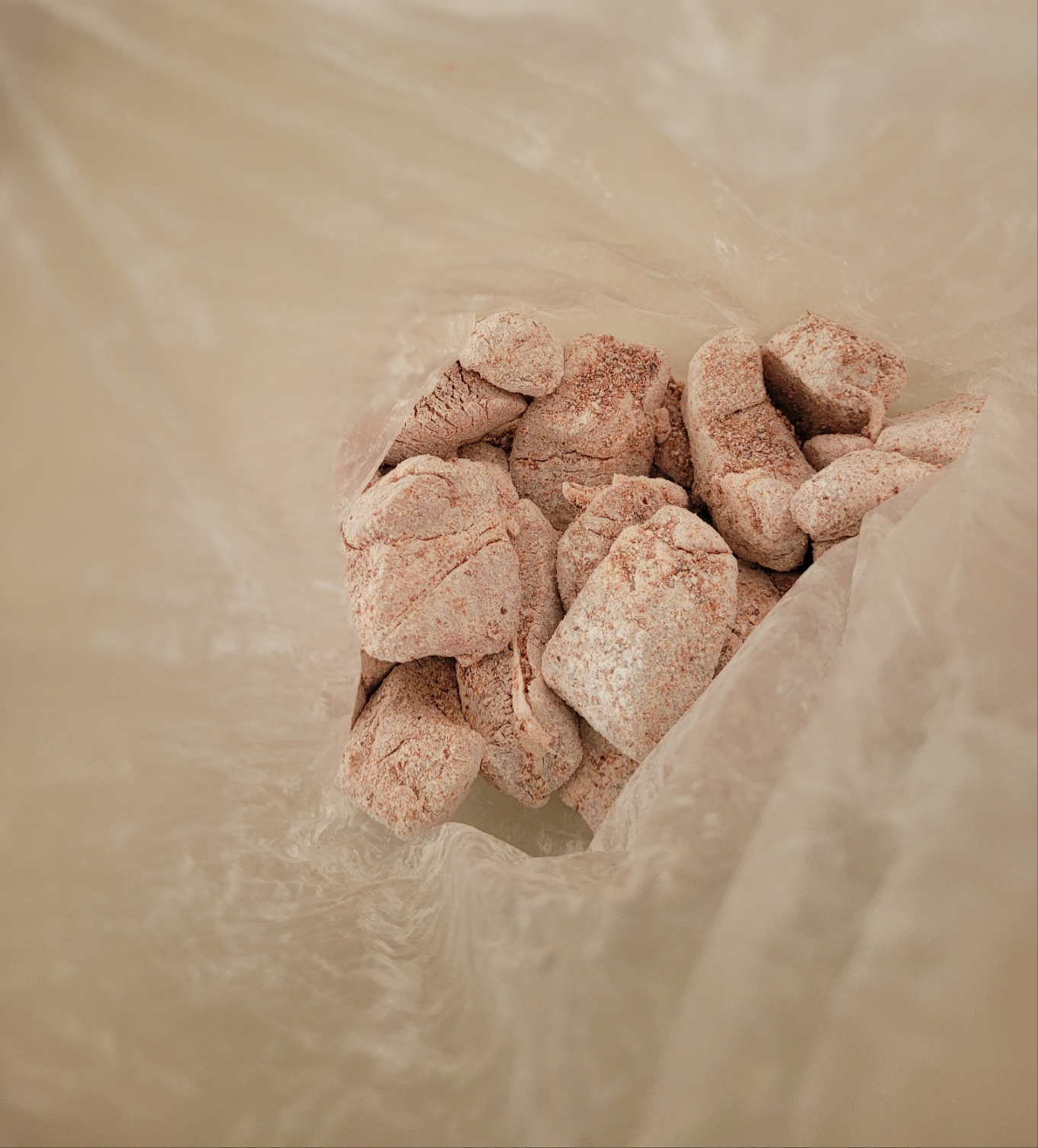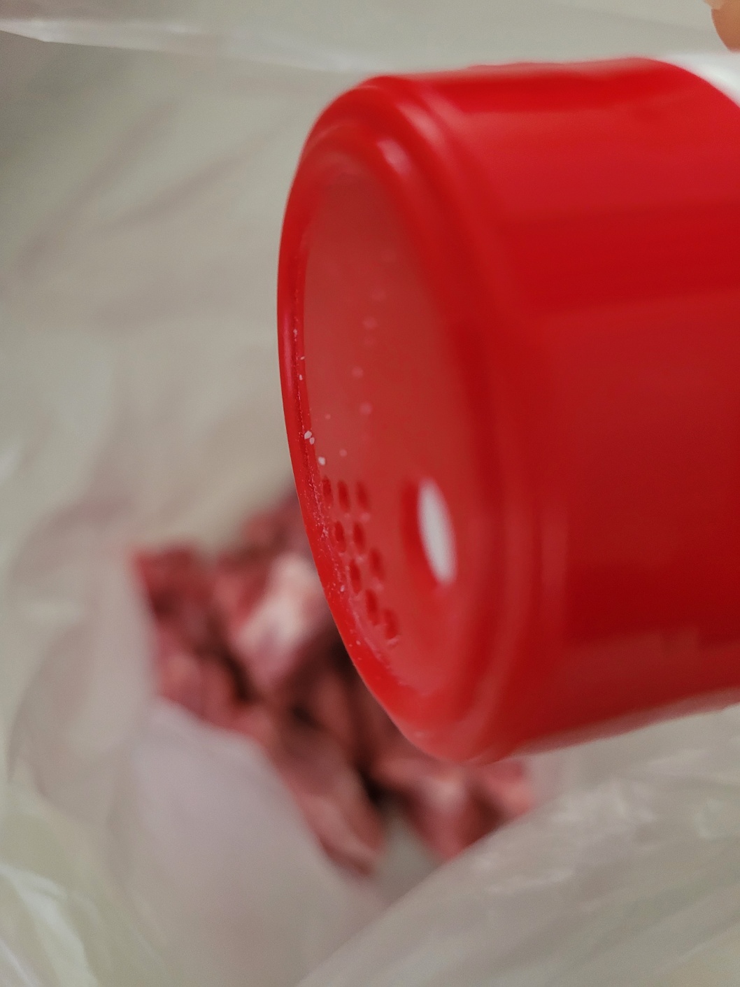 비닐에 썰어 놓은 고기를 넣고