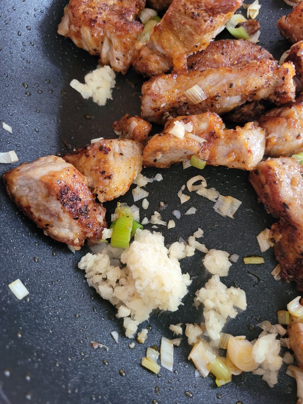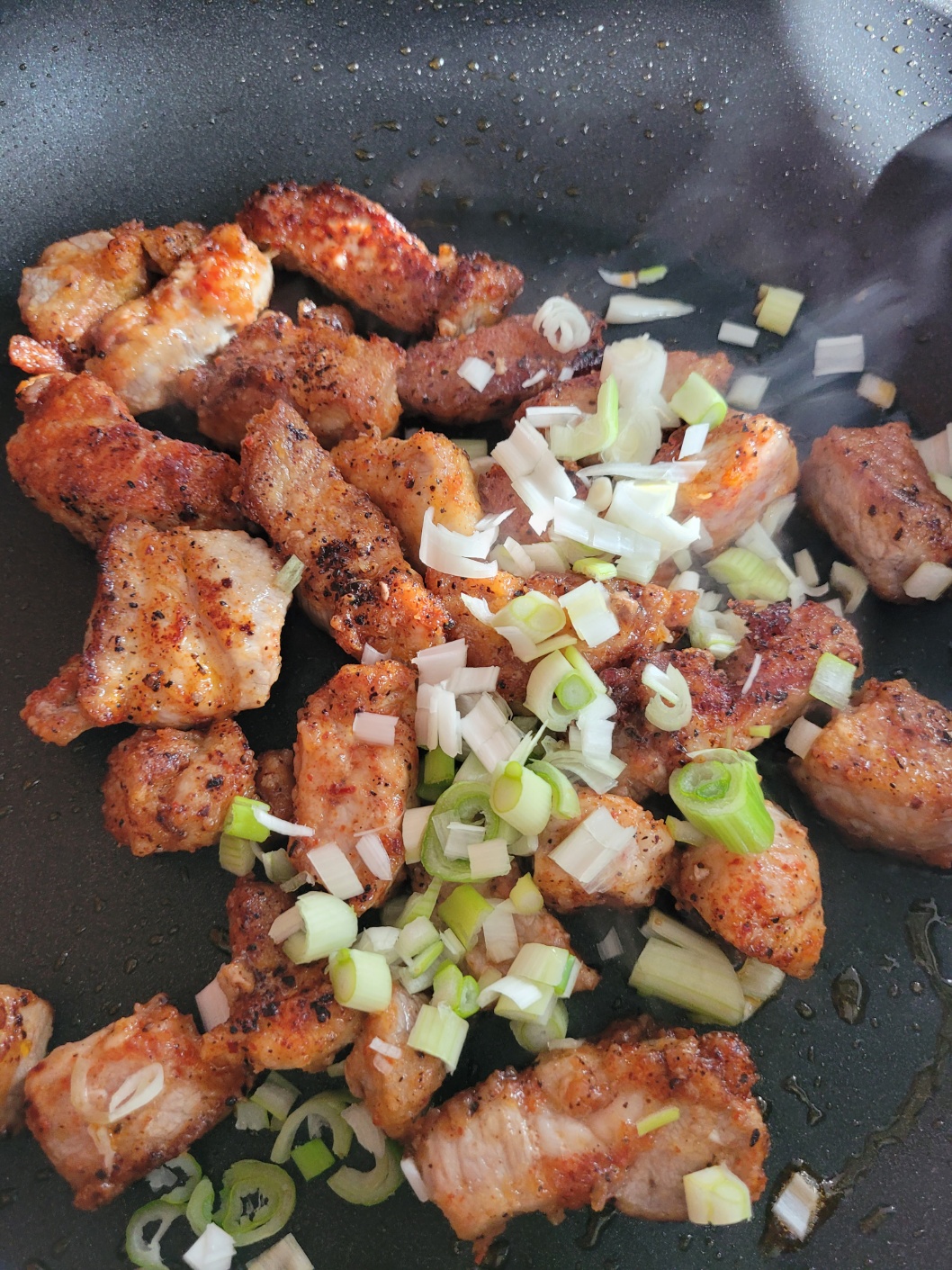 목살에서 고추기름이 나오도록 볶아주세요.