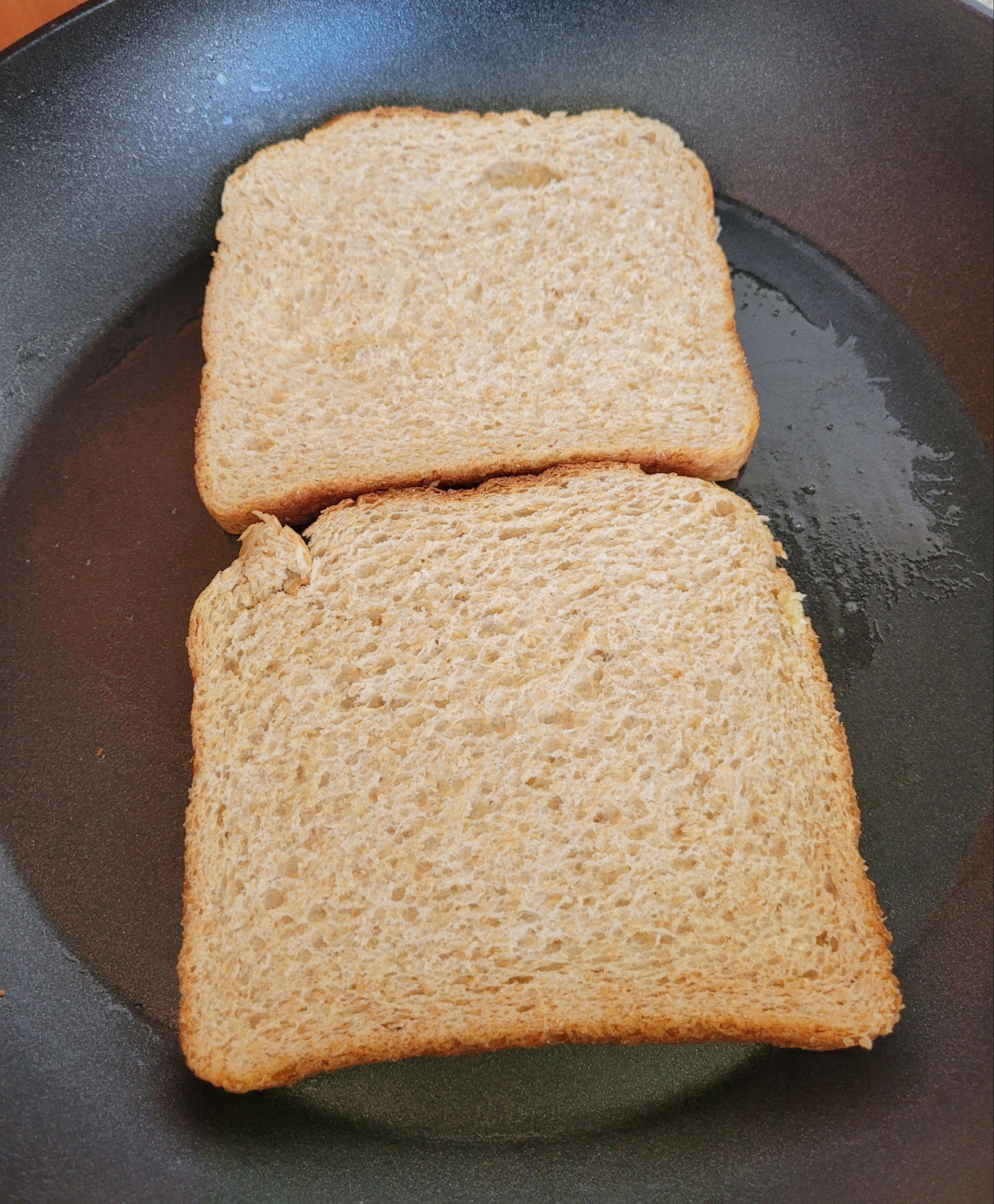 버터가 발린 쪽을 팬 쪽으로 놓고