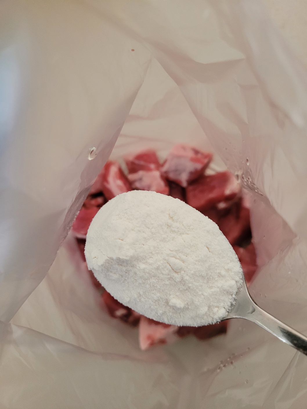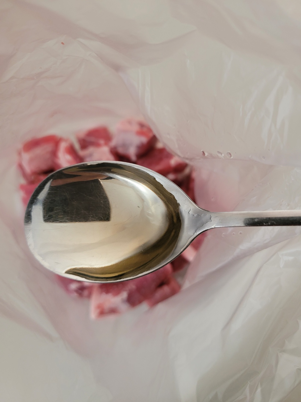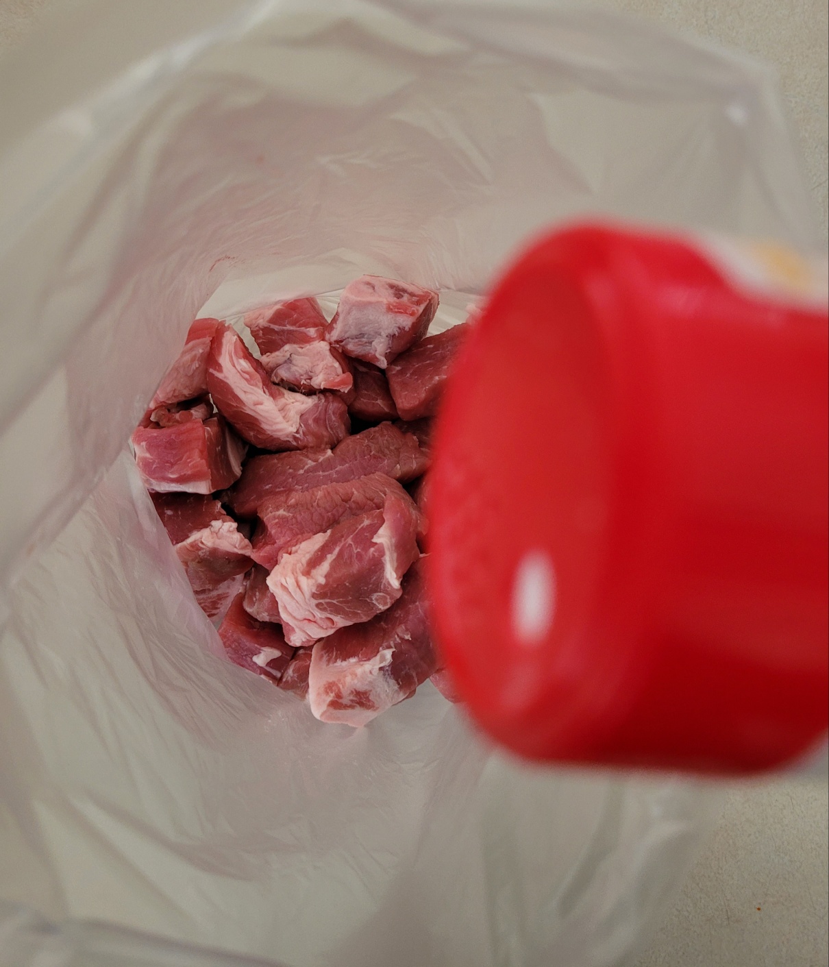 볼이나 비닐에 고기를 담고