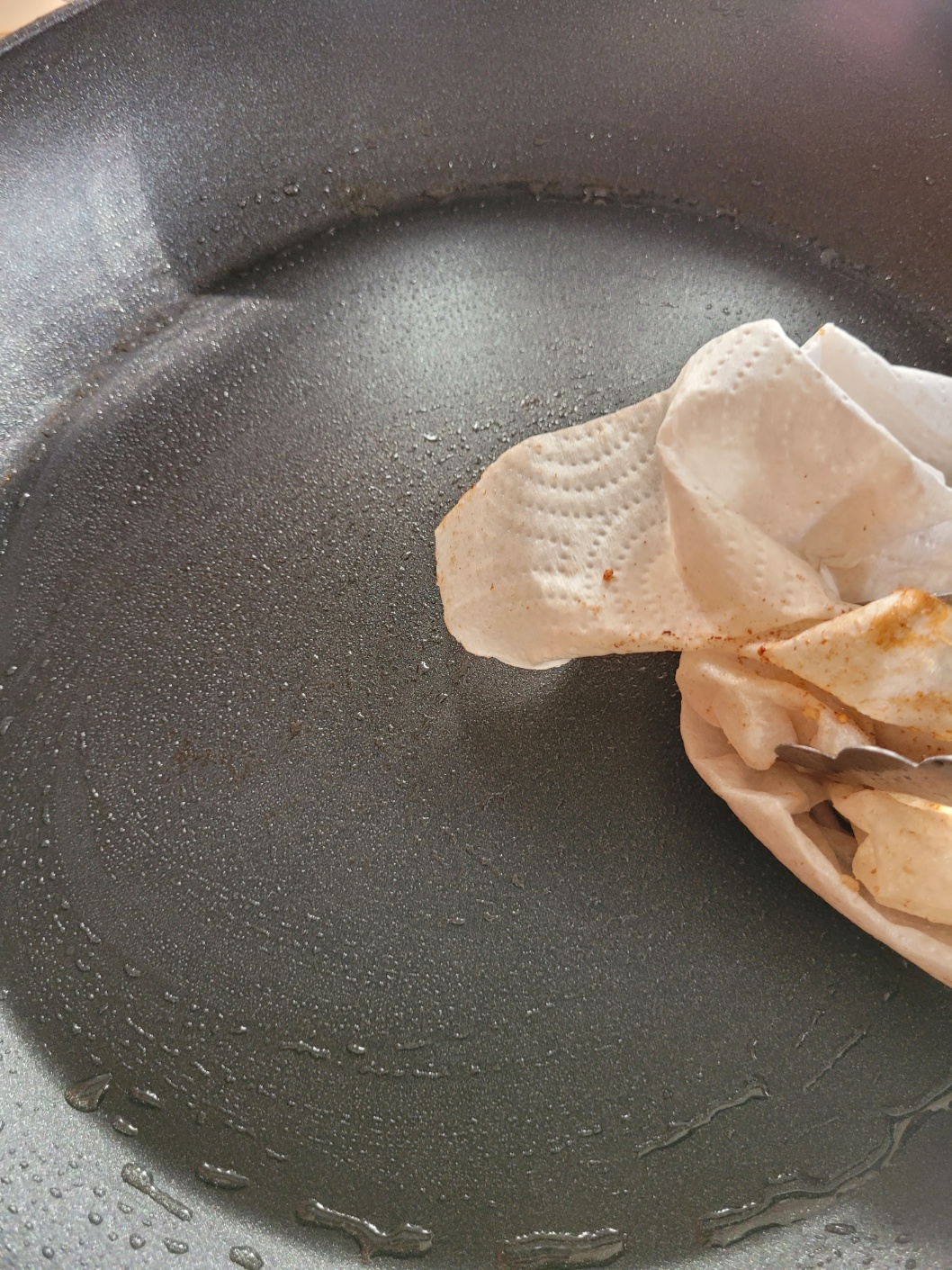 팬에 기름기를 닦아내고
