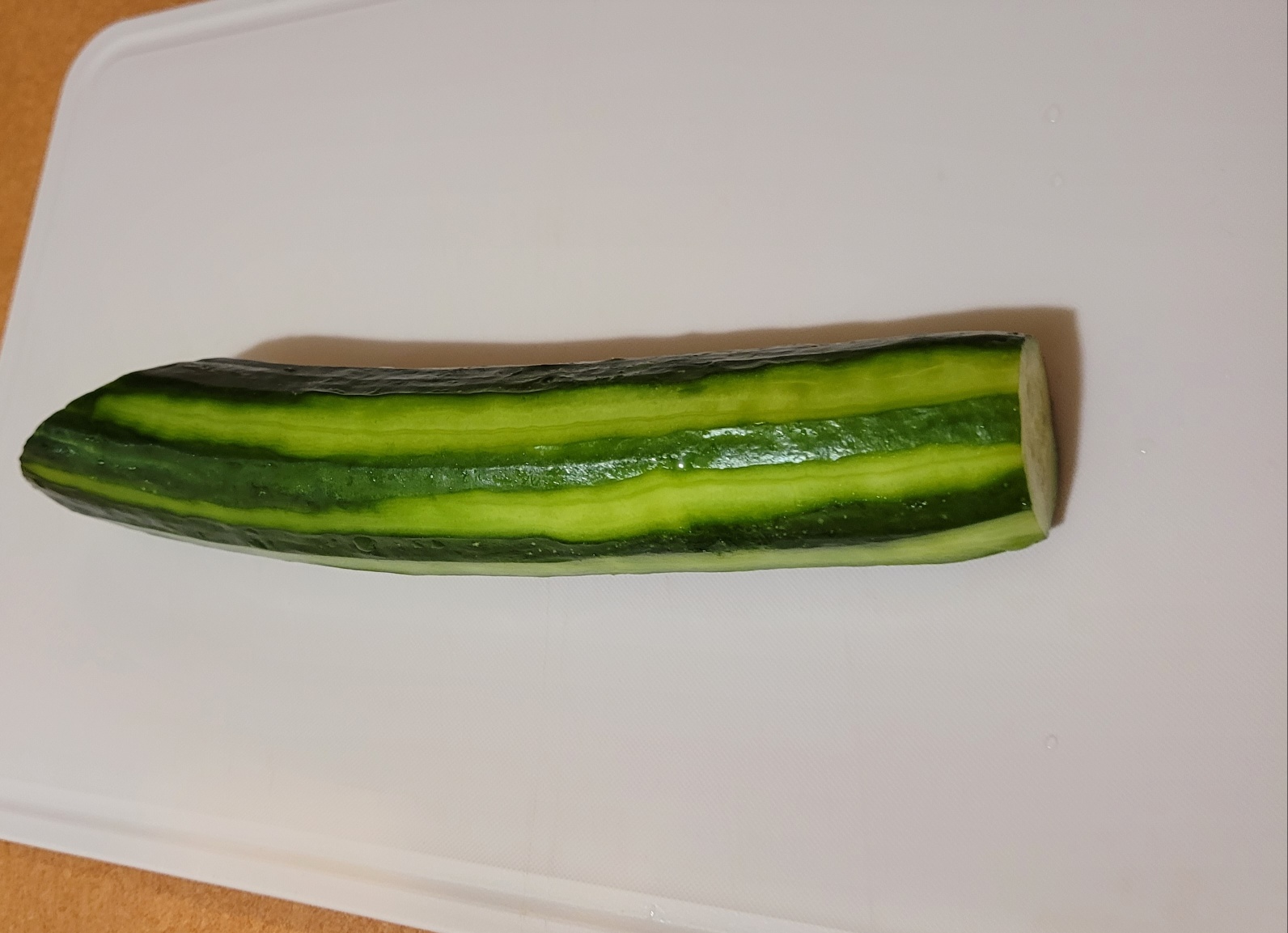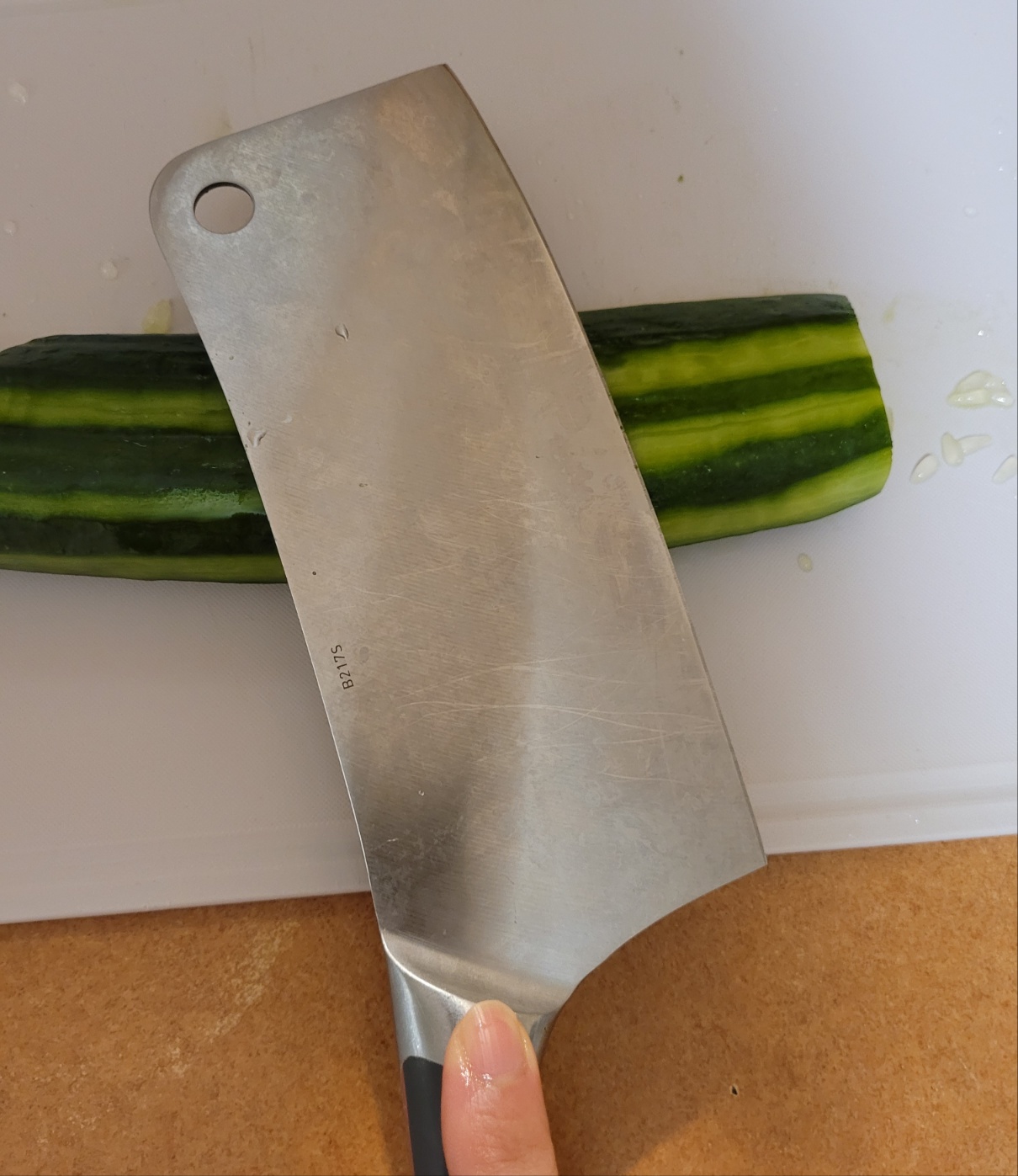 오이를 칼로 두들기듯이 내리쳐 주세요.