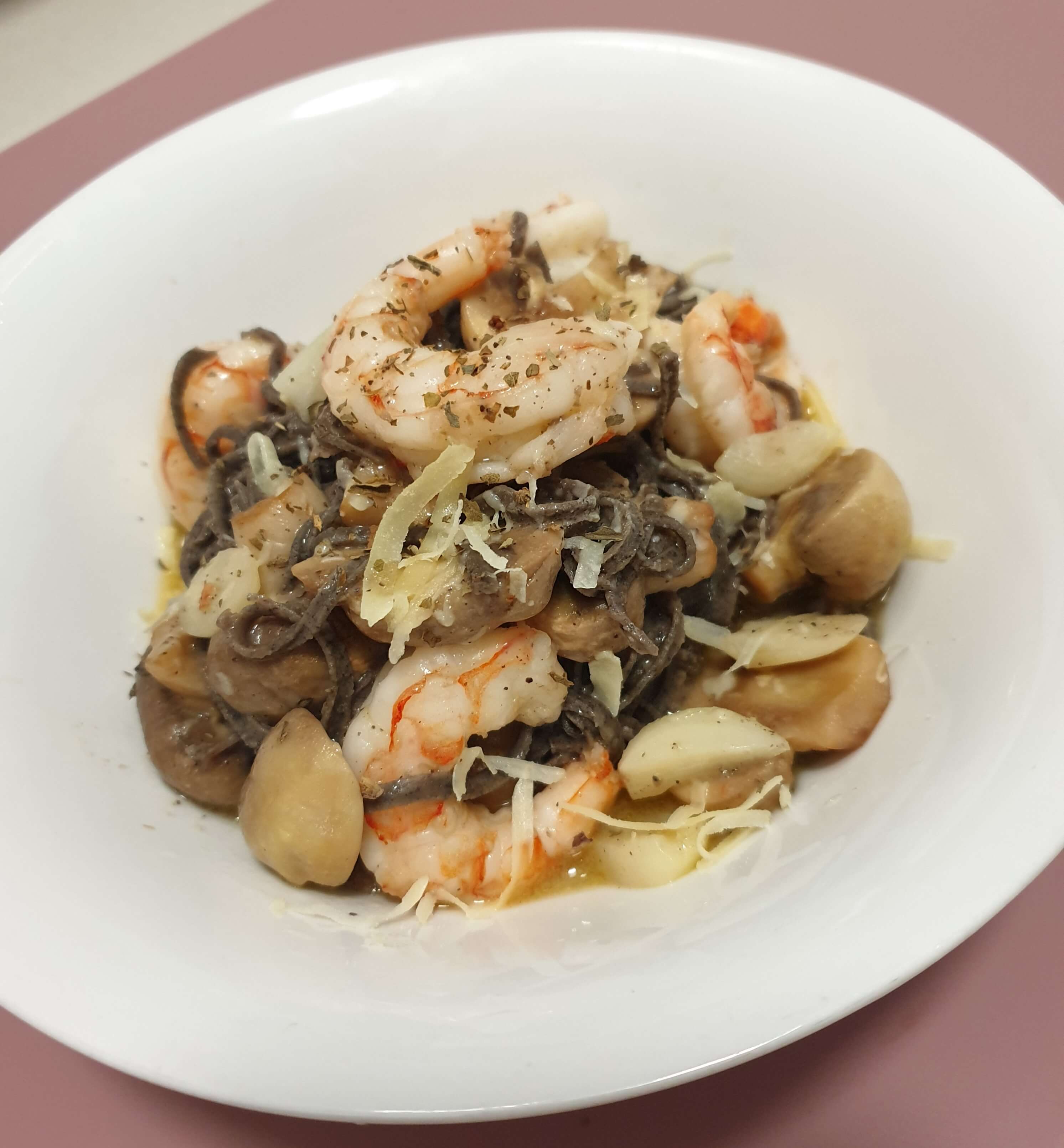 버섯, 새우, 마늘만 넣고