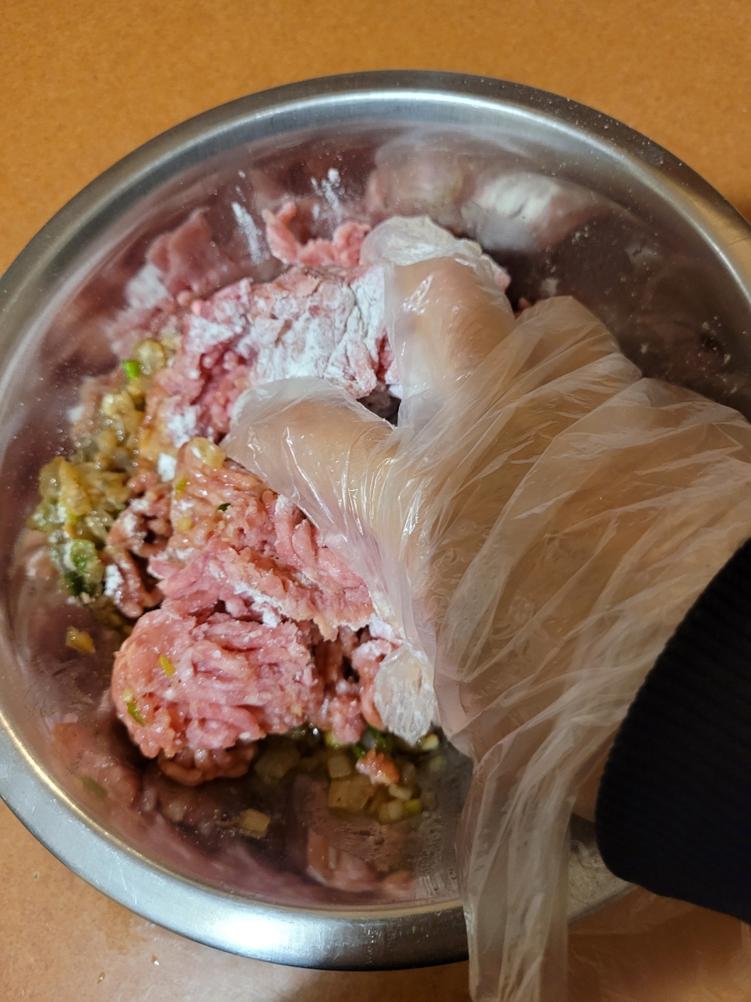 다짐육을 볼에 넣고