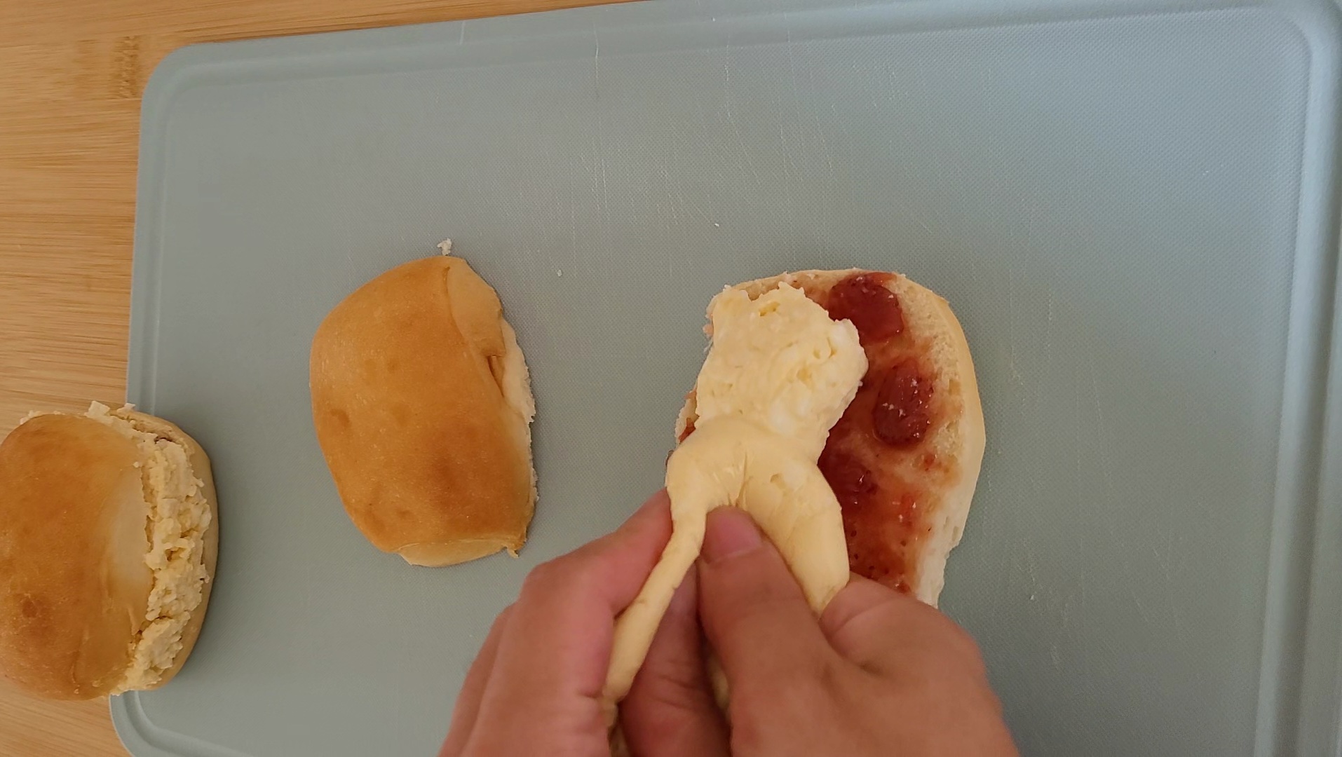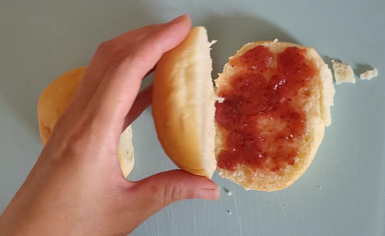딸기잼을 발라 주세요.