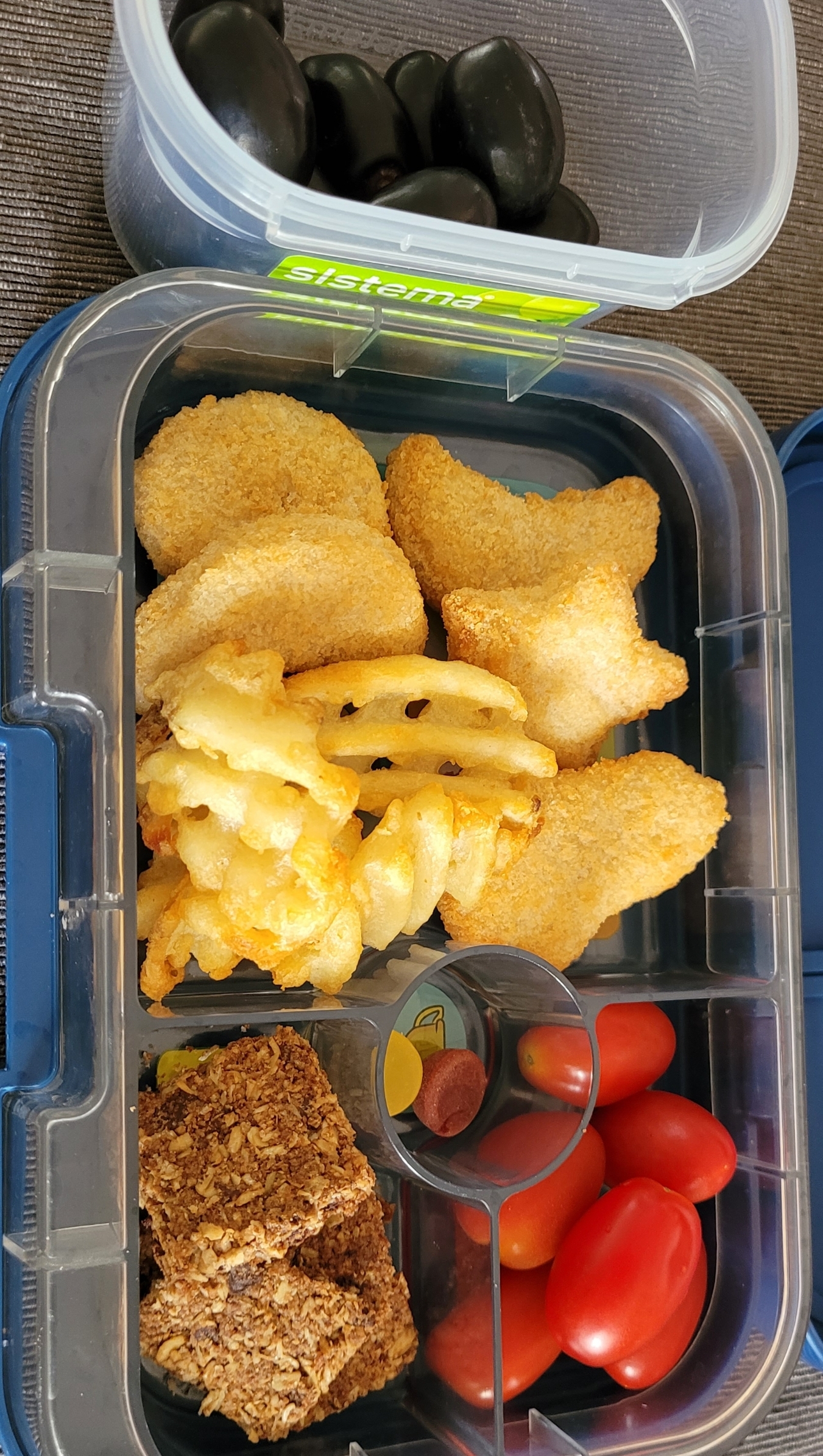 런치박스에는 치킨 너겟, 포테이토