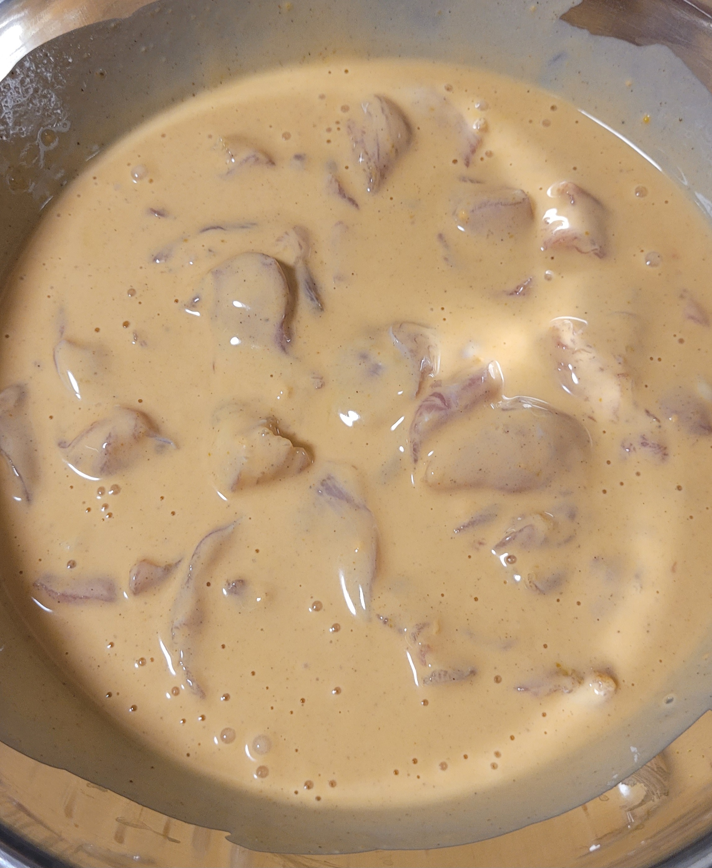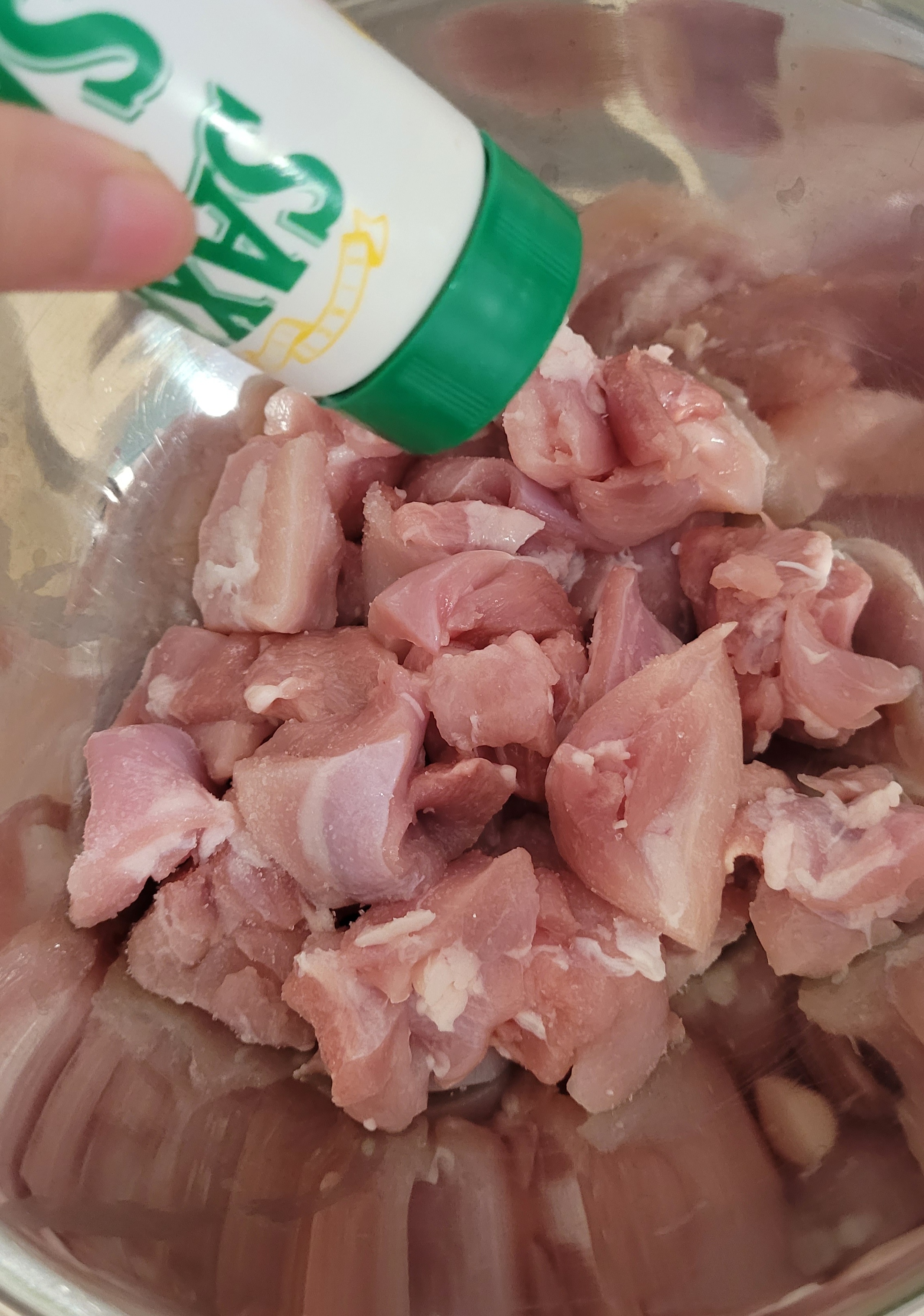 재워둔 닭을 넣어