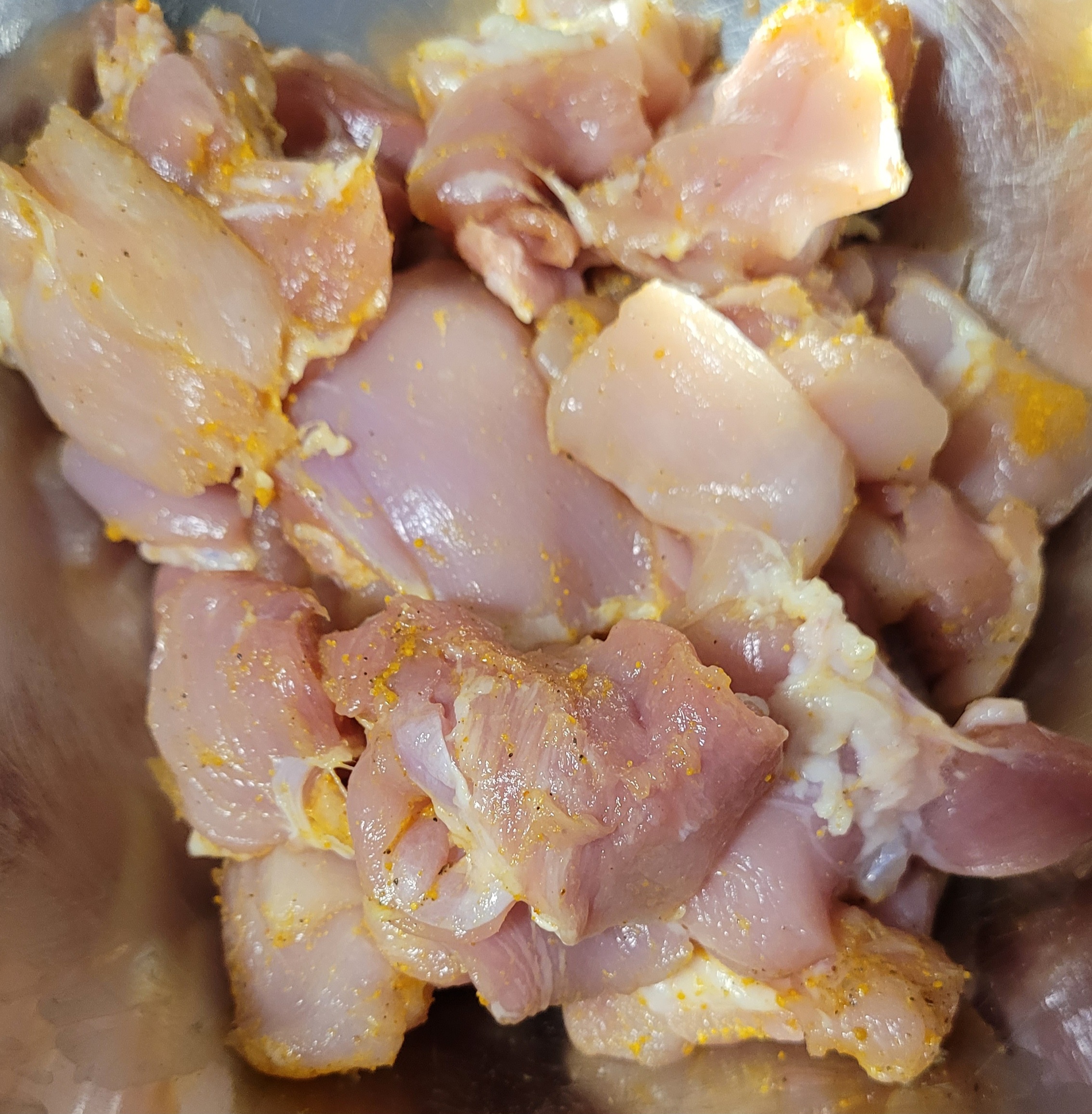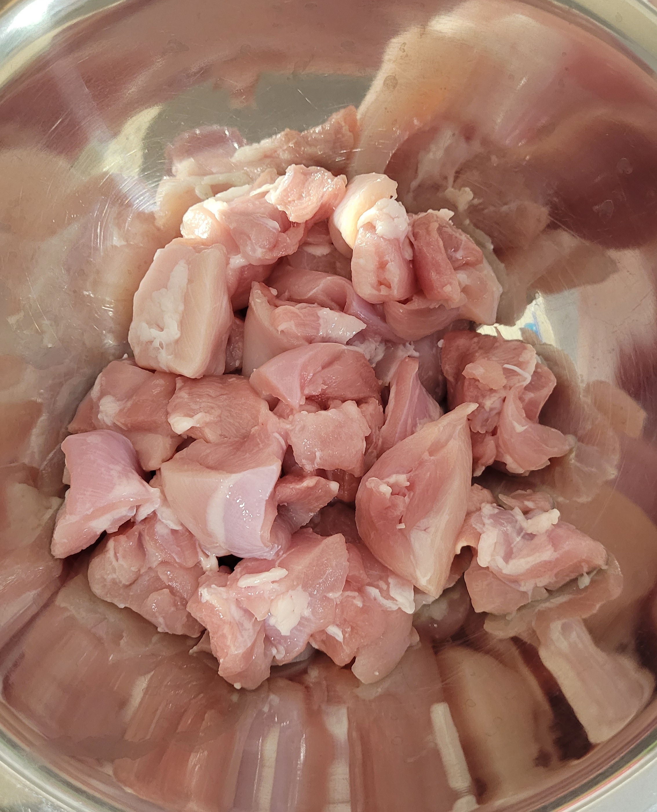 닭 허벅지 살은 먹기 좋게 썰어 주세요.