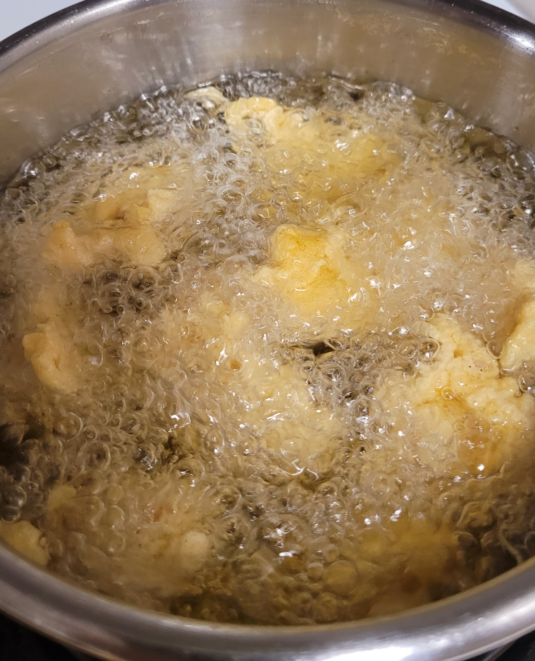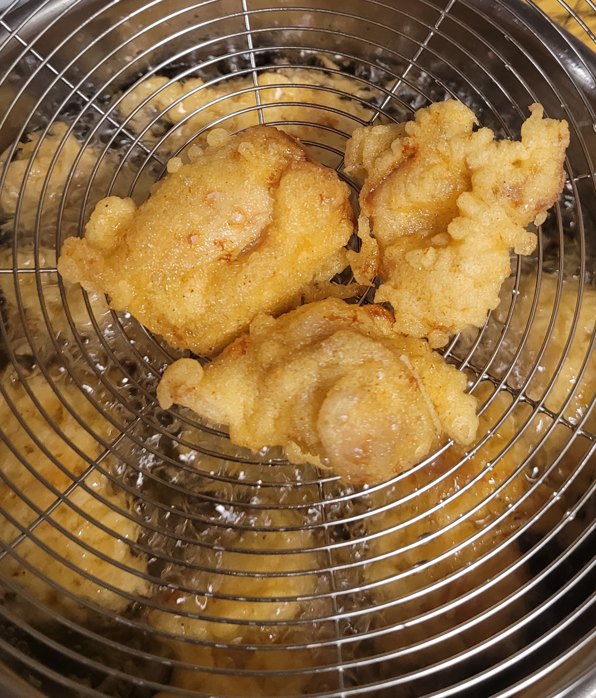 5~6 조각씩만 넣어가며 튀겨 주세요.