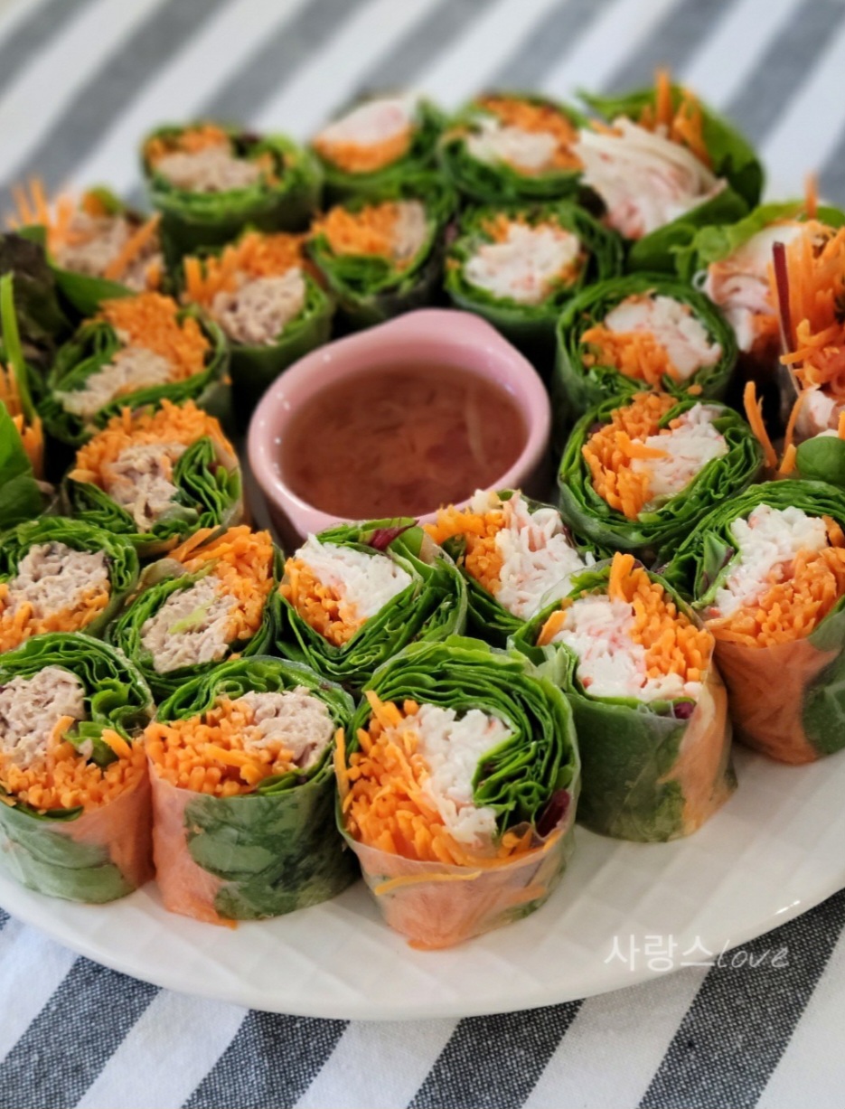 참치와 채소를 이용해 만든 미니 월남쌈 레시피입니다.