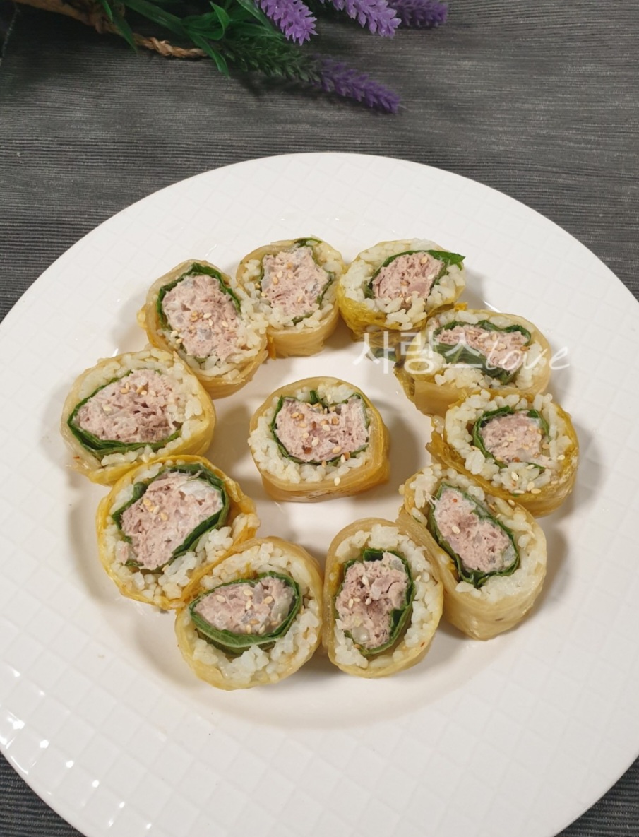 참치가 들어간 밥 없는 김밥 레시피 입니다.