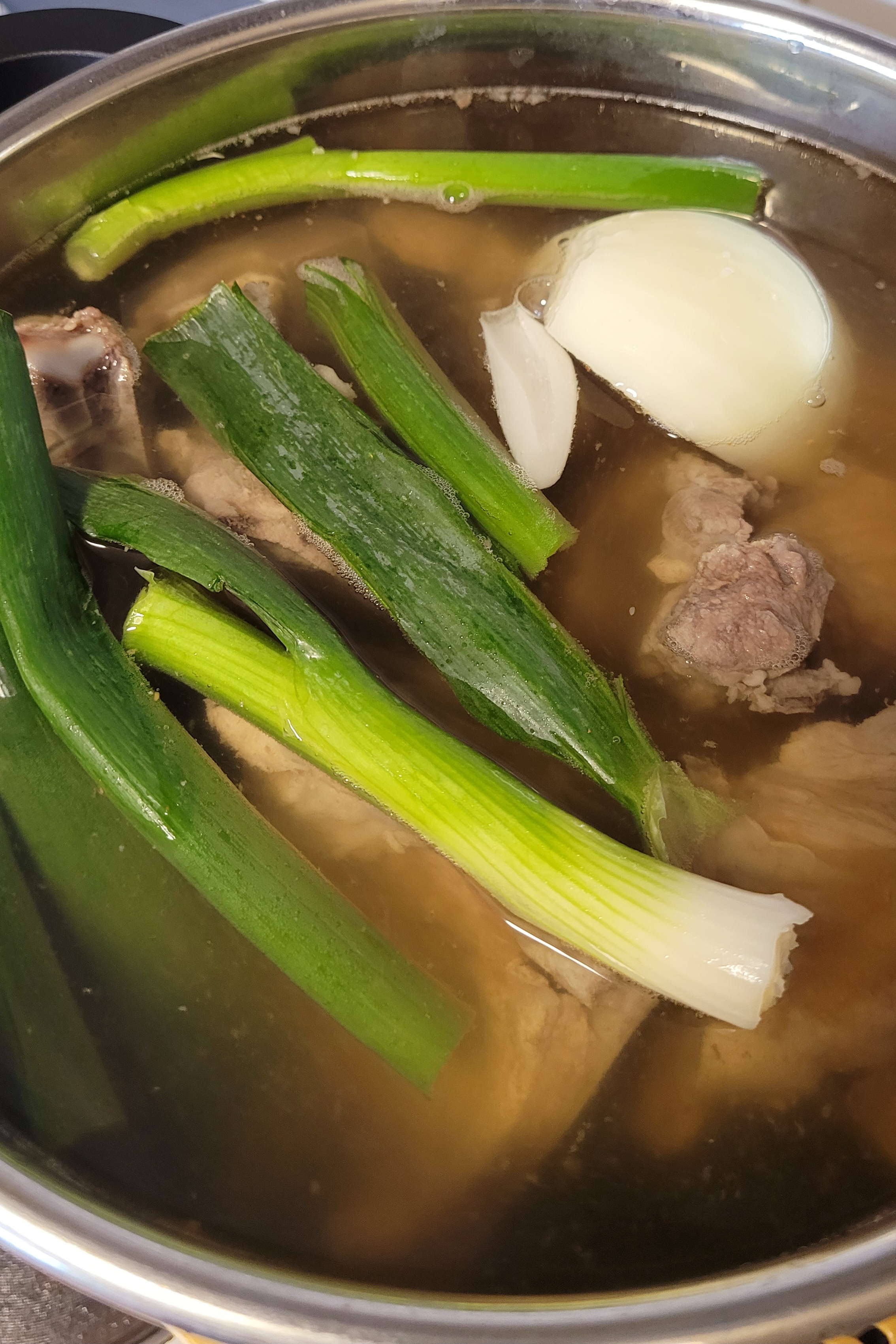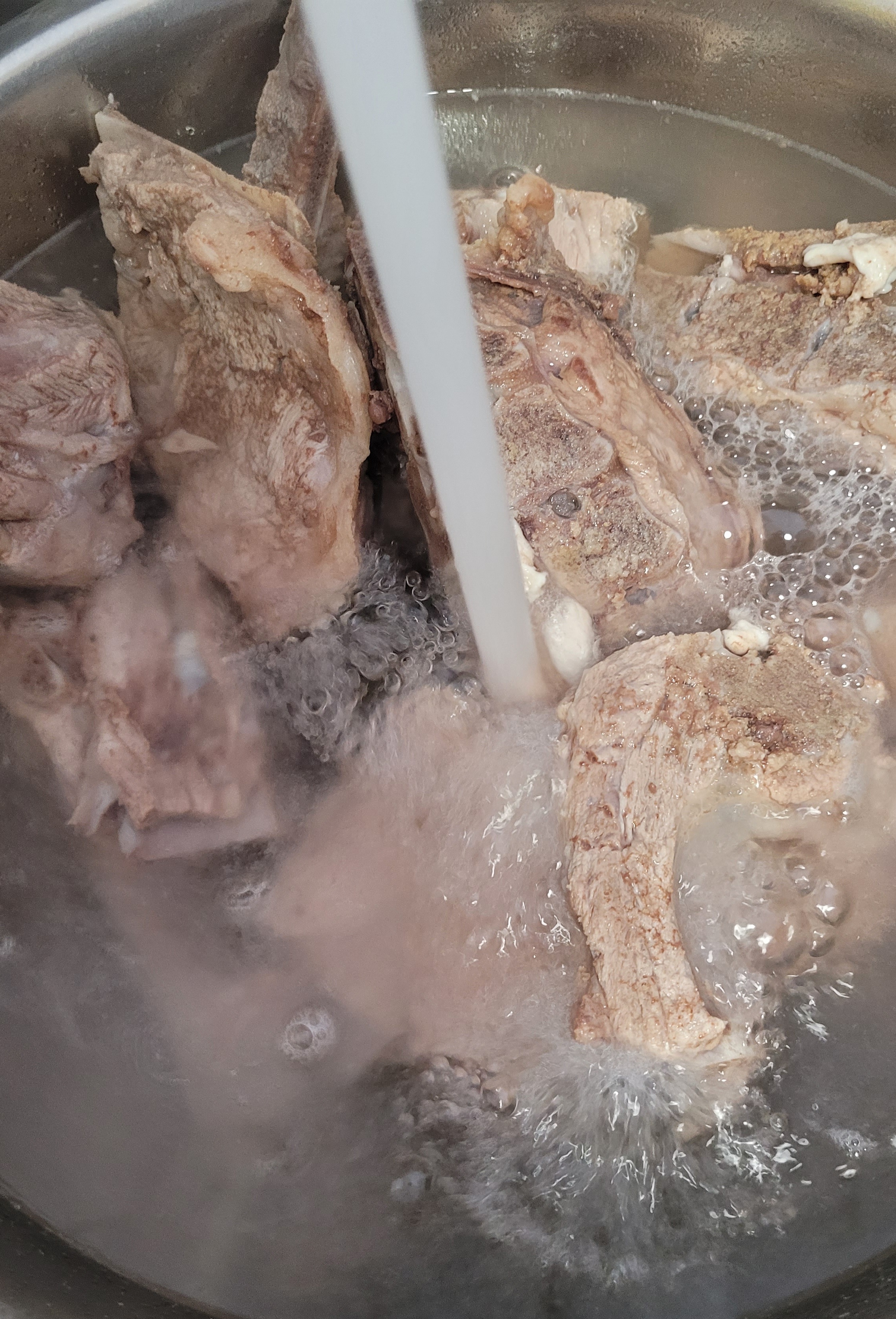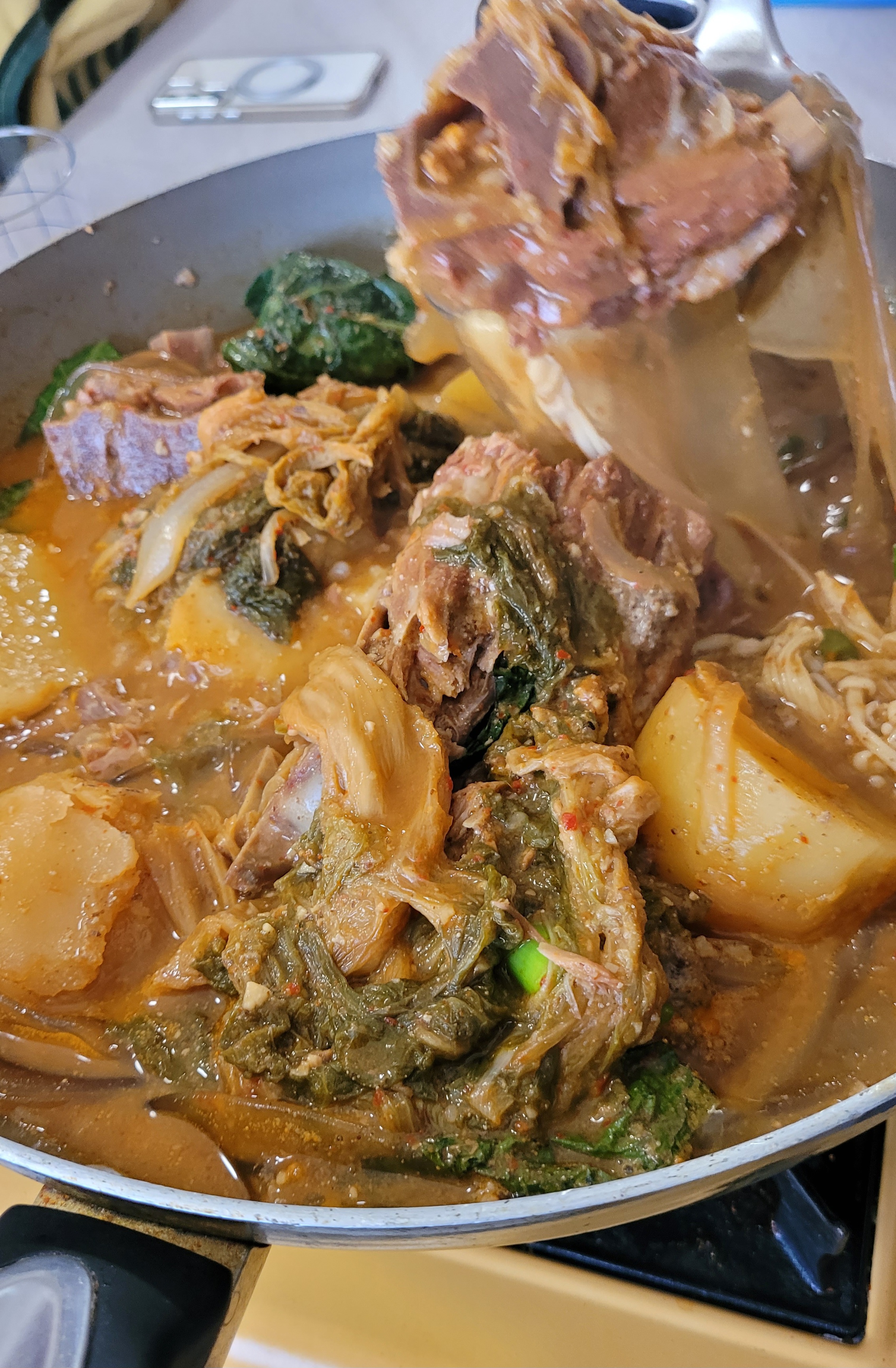 오늘은 돼지 등뼈를 푹 고아 우거지 감자탕을 끓였어요.