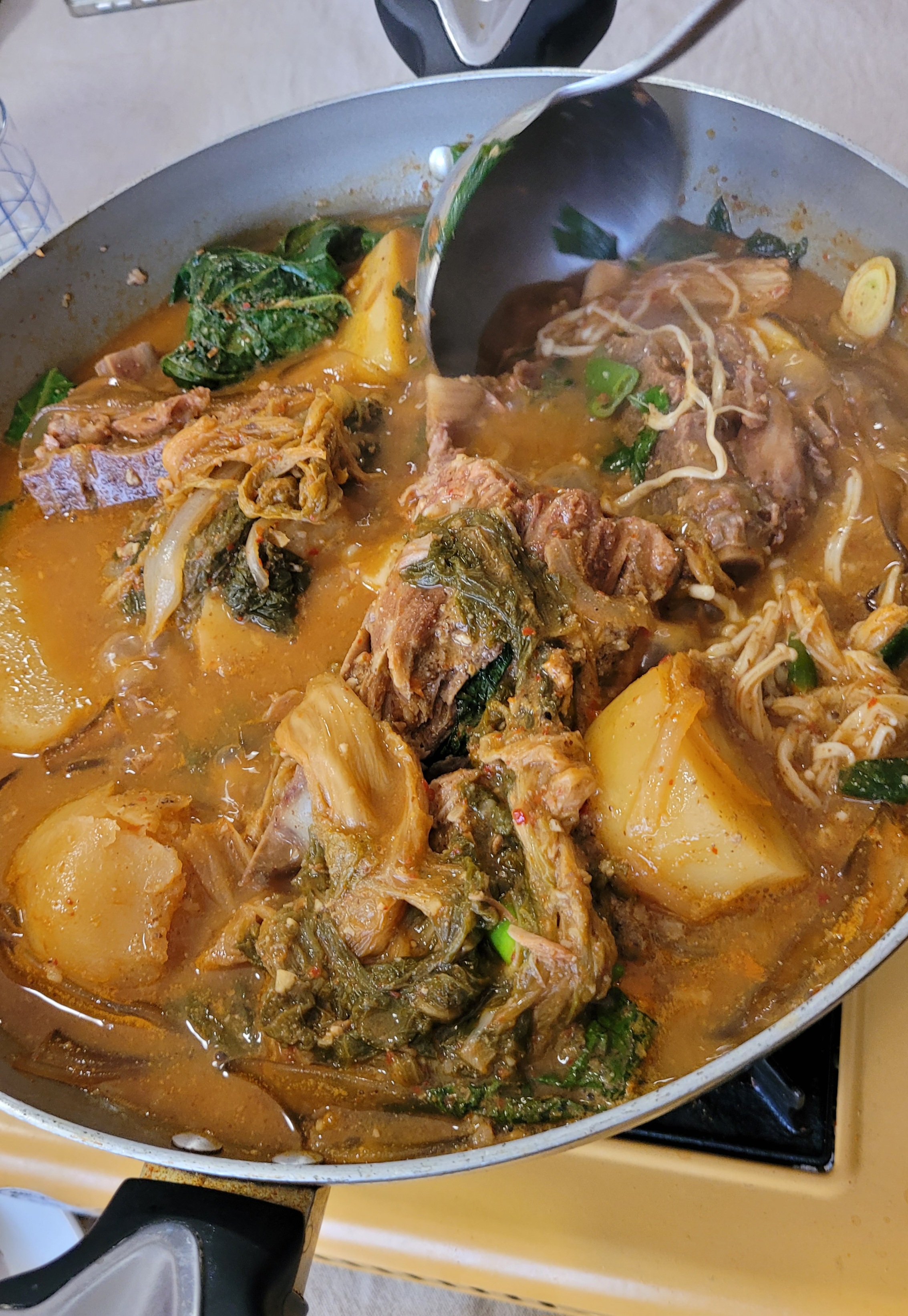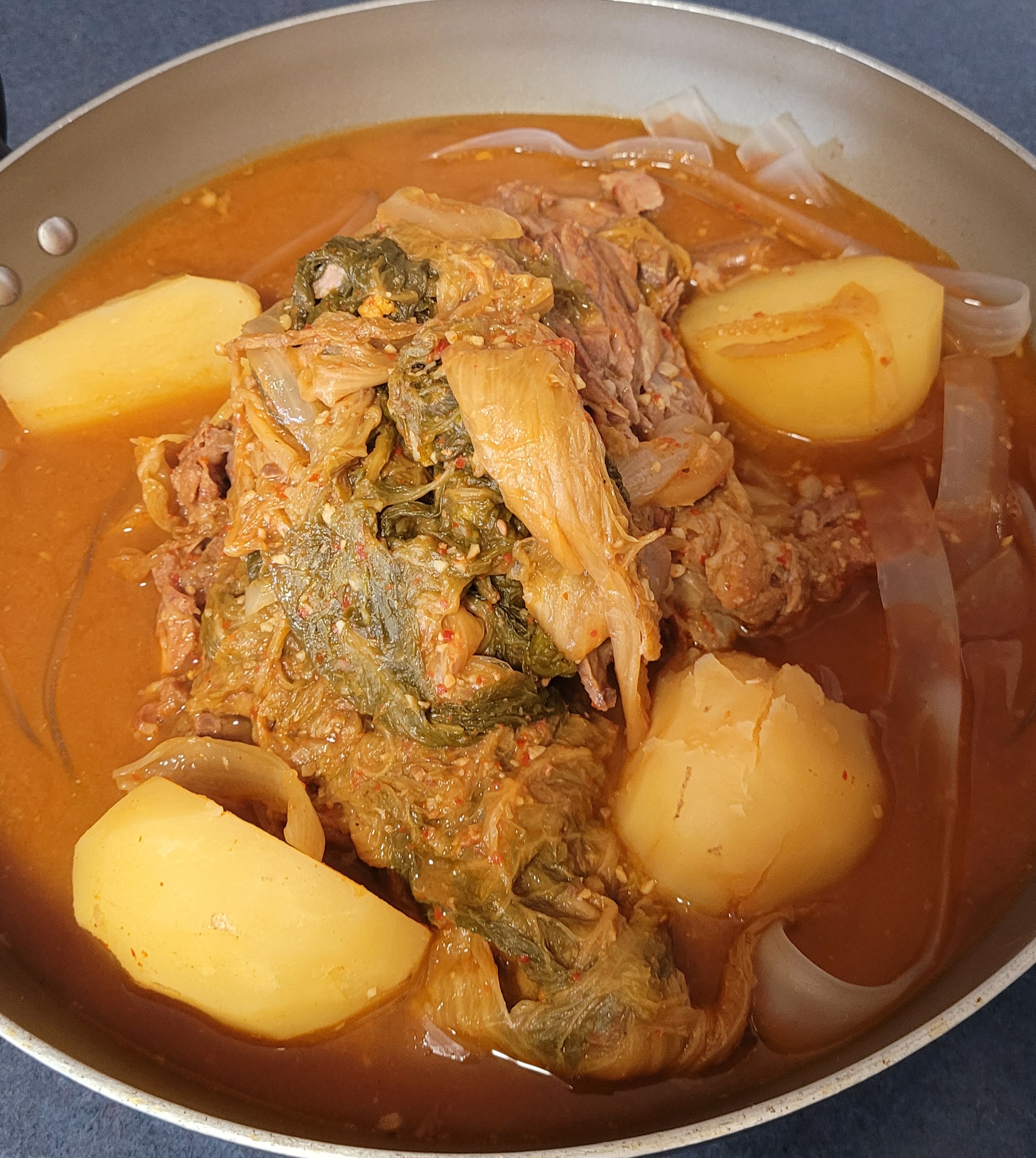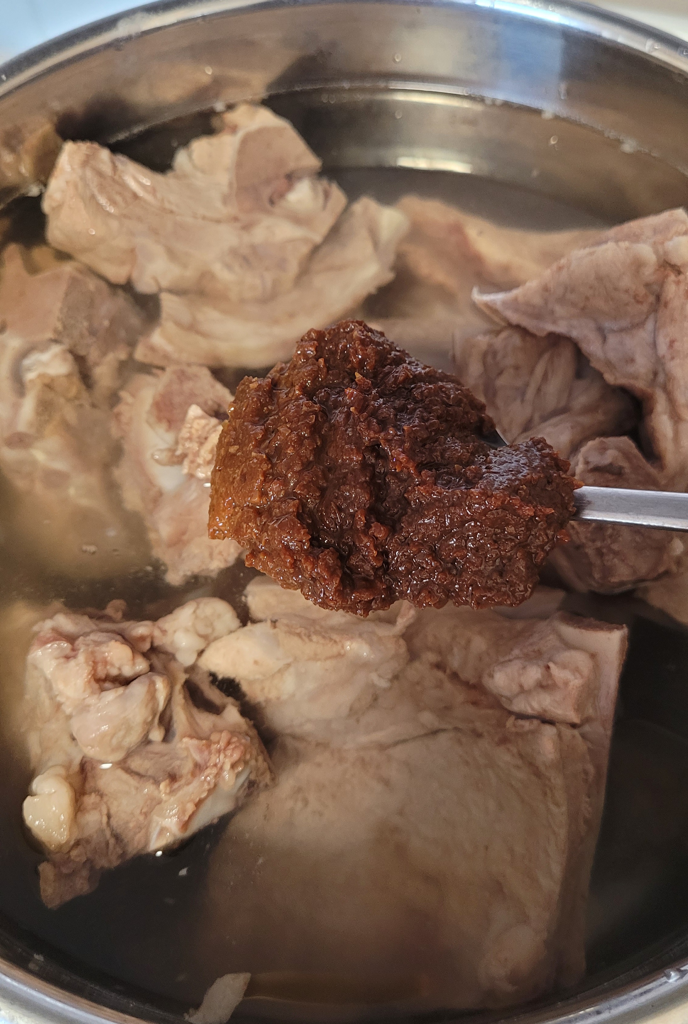 오늘은 돼지 등뼈를 푹 고아 우거지 감자탕을 끓였어요.