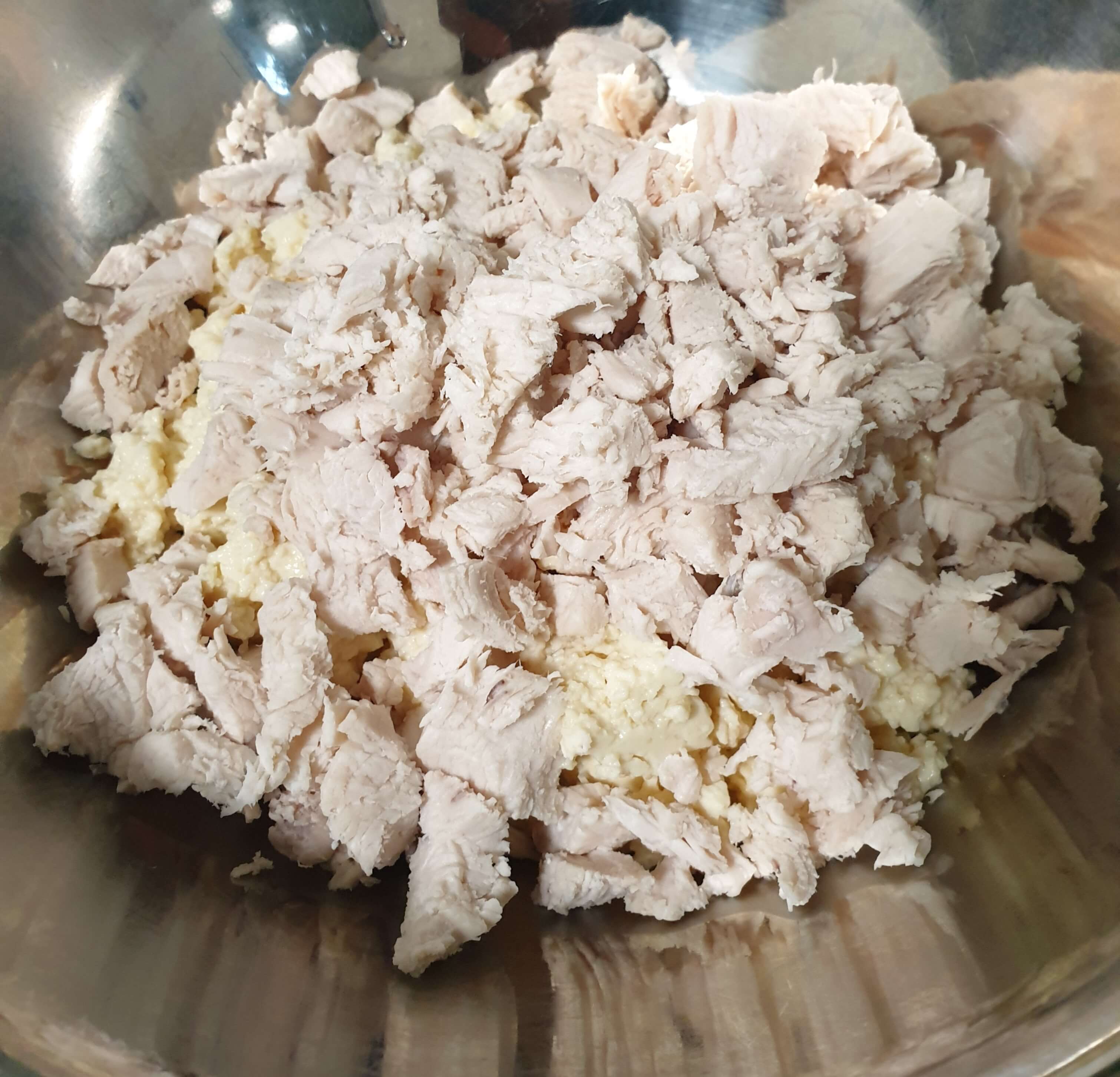 두부 1모를 살짝 데쳐 물기는 꽉 짜주고