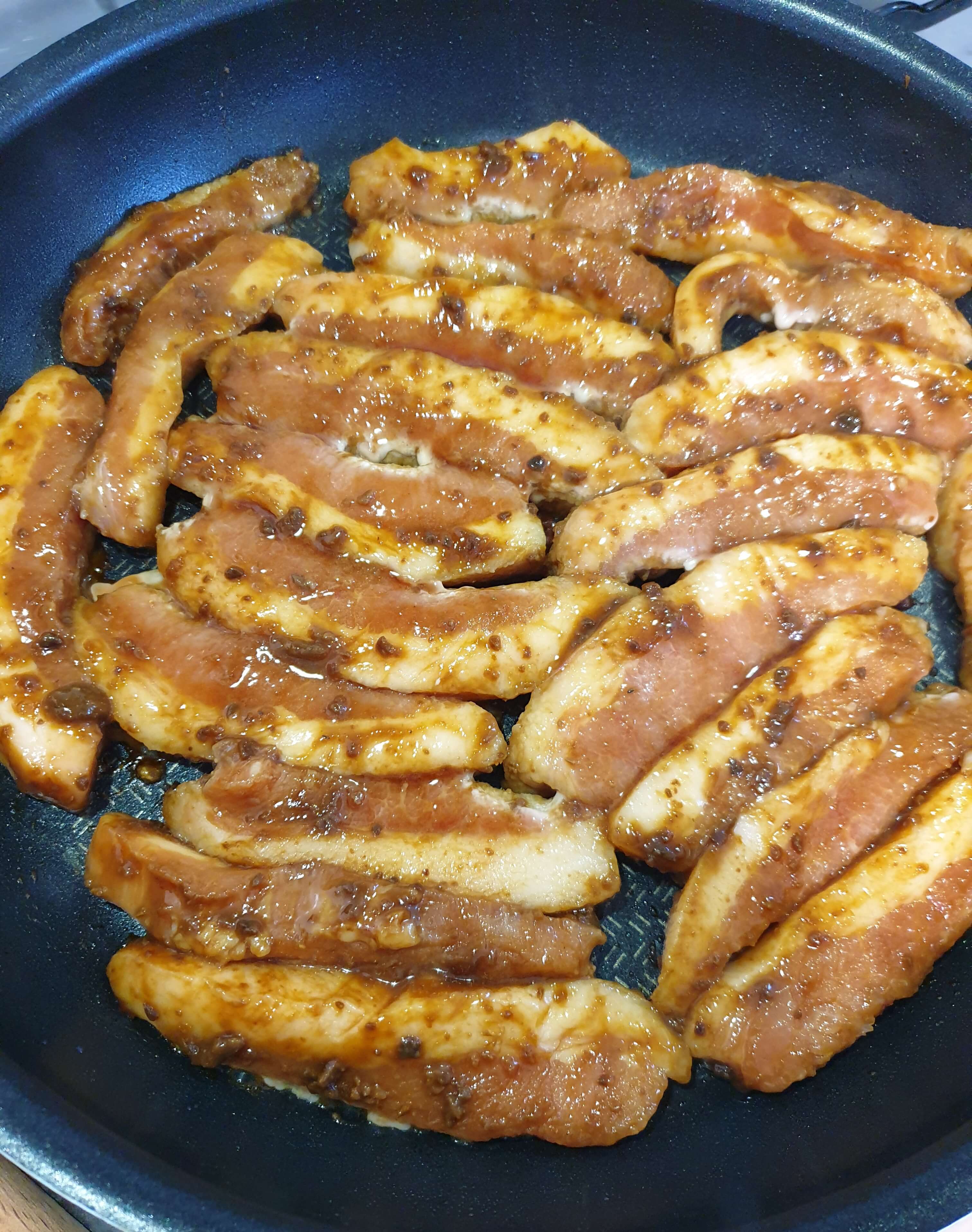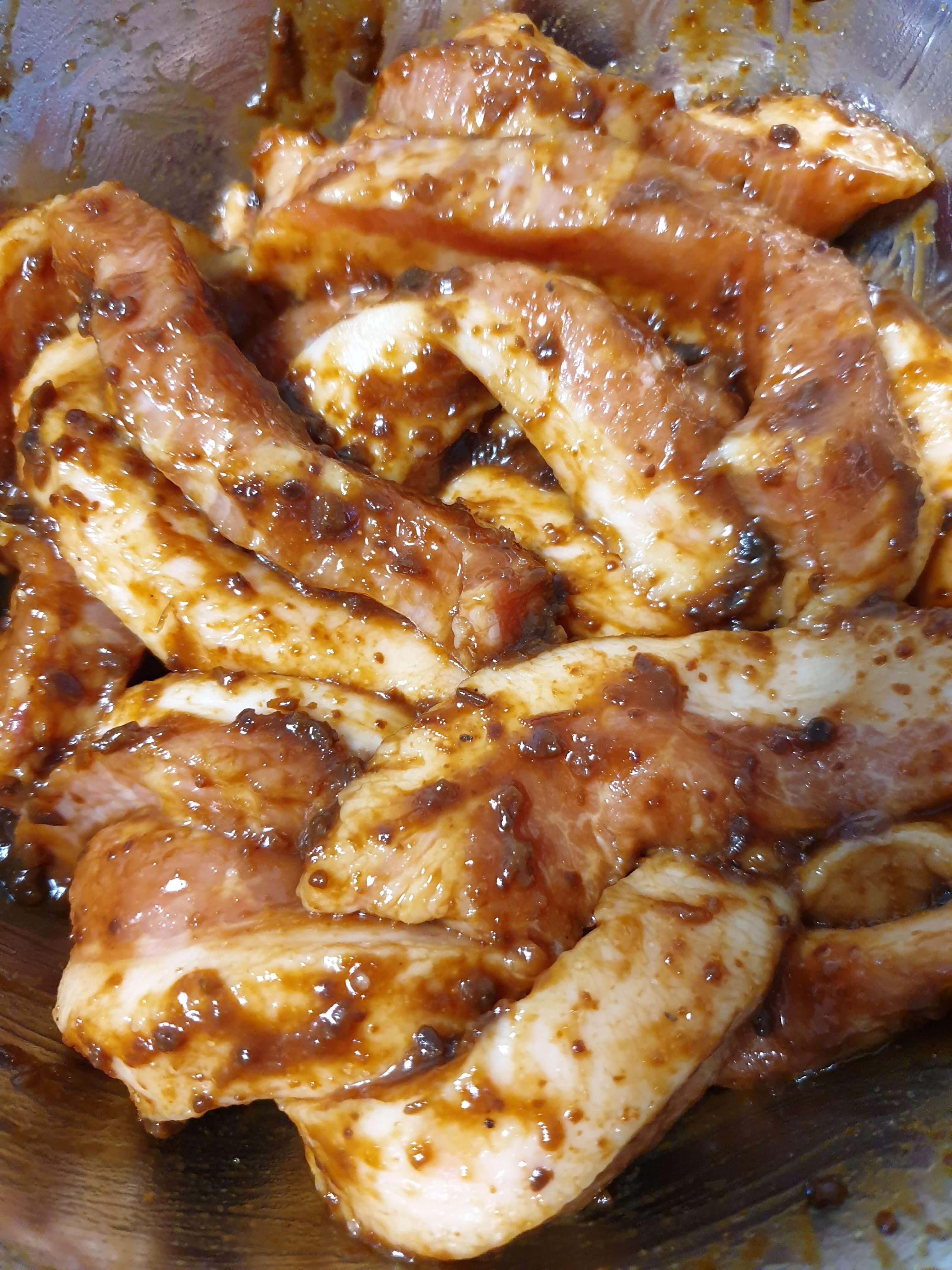 매실청 1큰술, 맛술 2큰술, 참기름 1큰술, 후추 약간 넣고