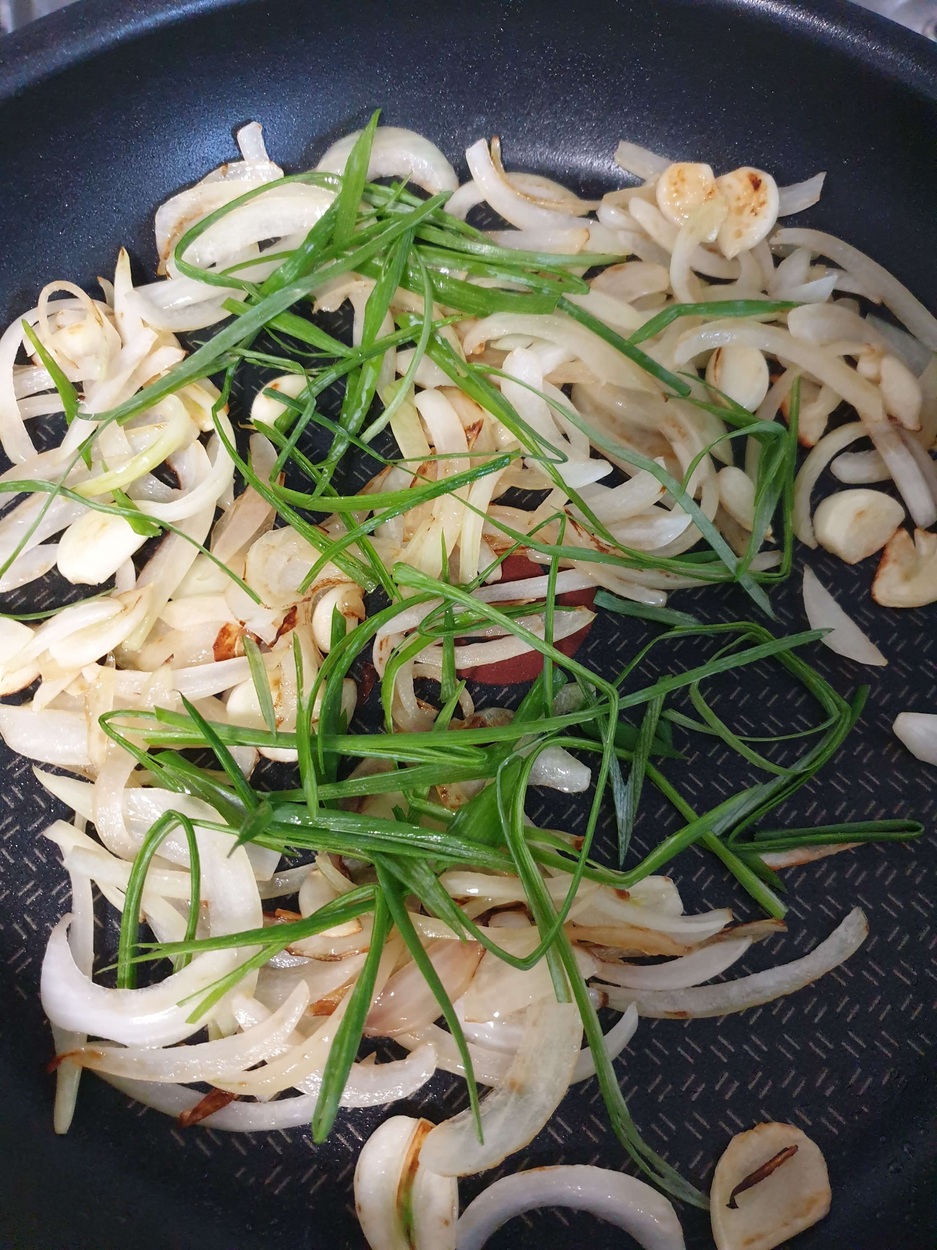 파를 넣어서 숨이 죽을 정도로만 볶아 줬어요