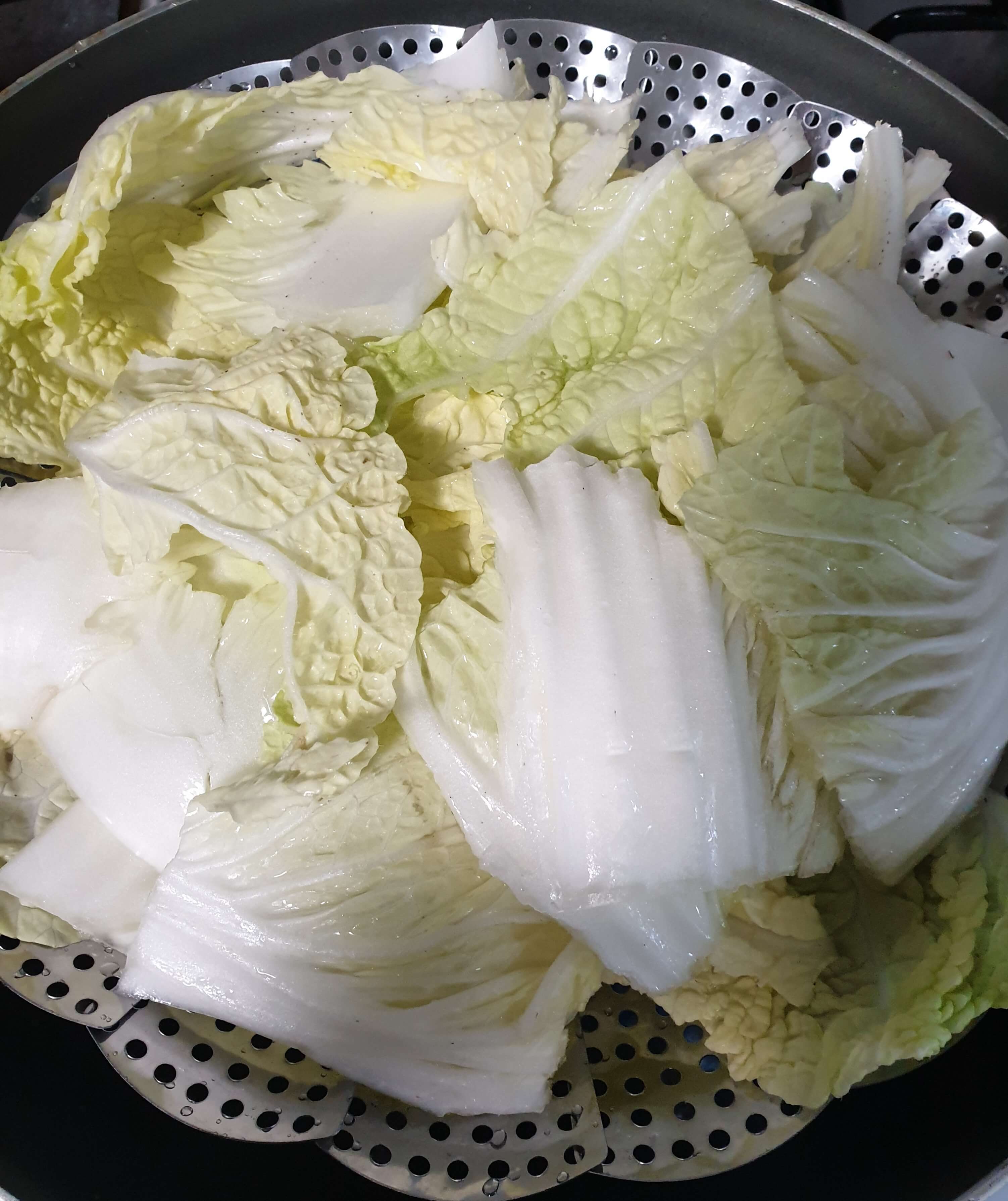 먼저 배추 준비해서 깨끗이 씻어 배추를 맨 밑에 깔아 줬고요