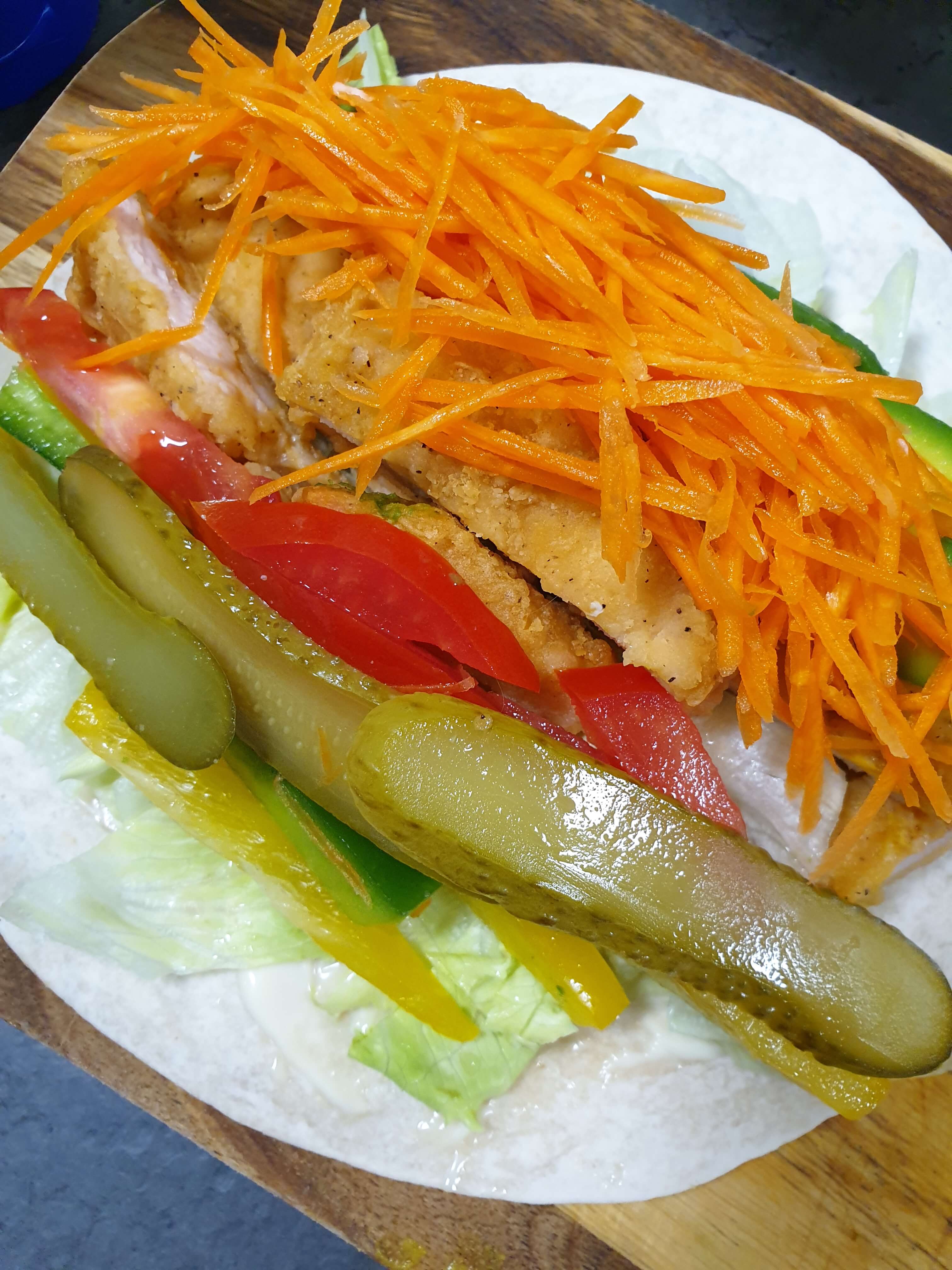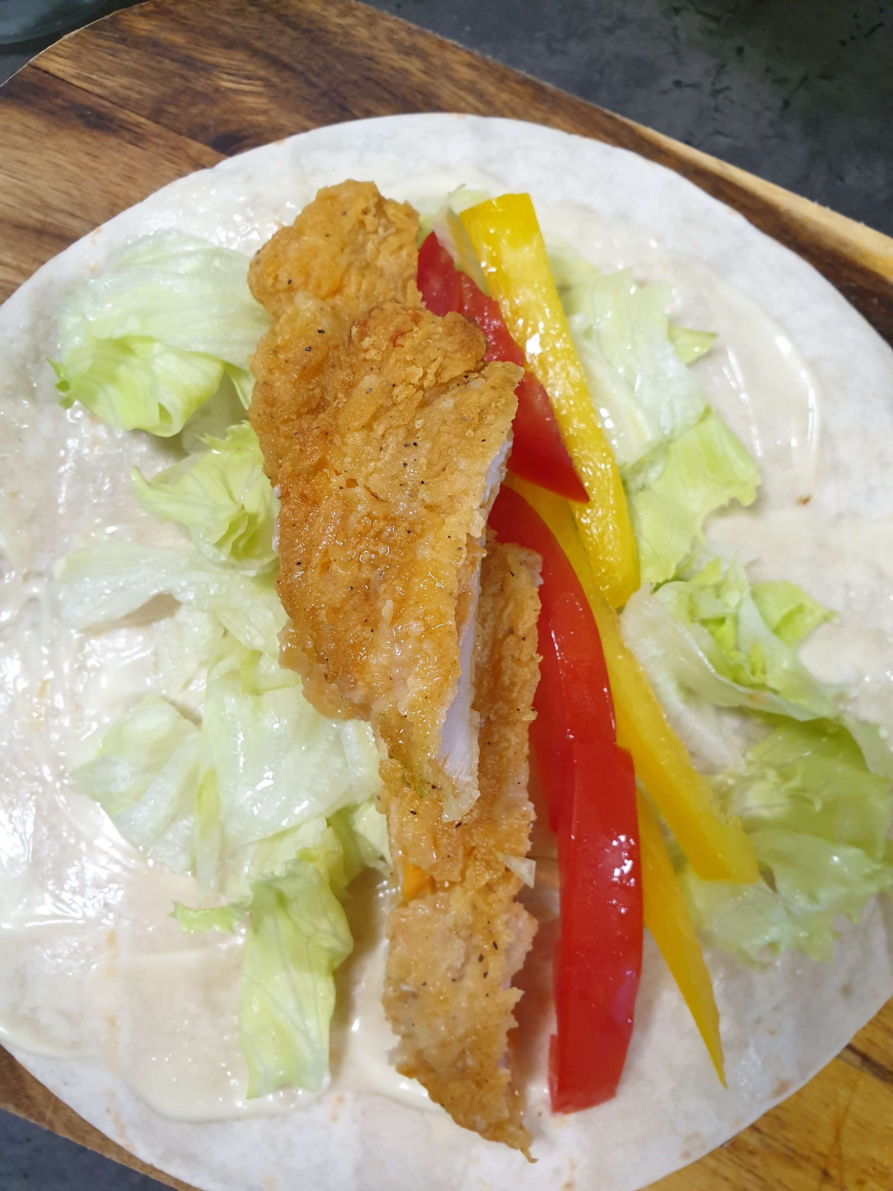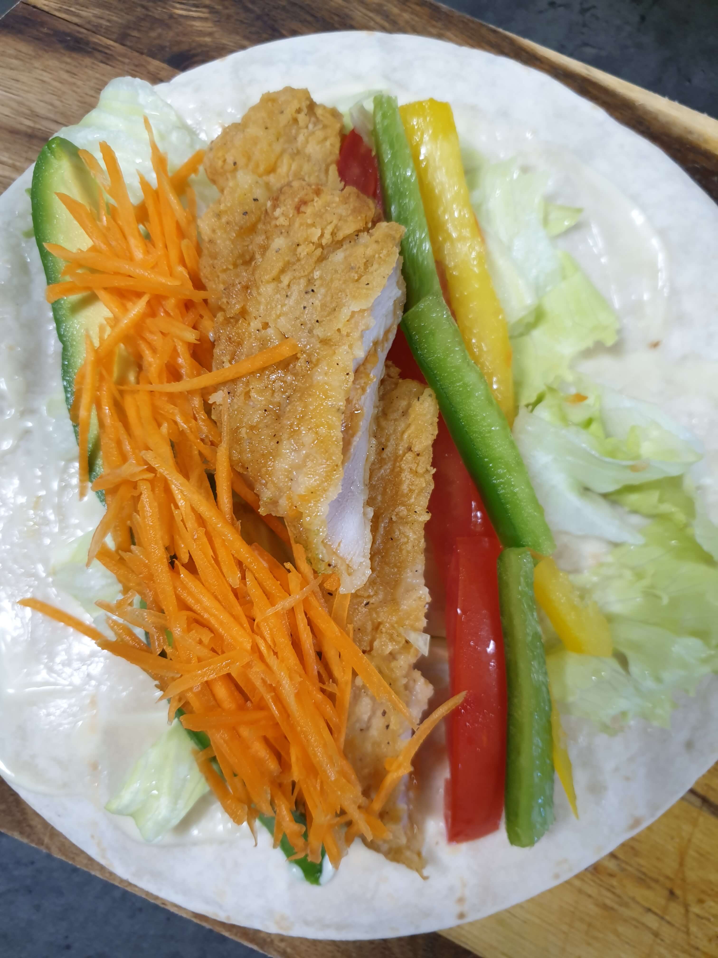 재료- 치킨, 또띠아, 양상추, 피클, 아보카도