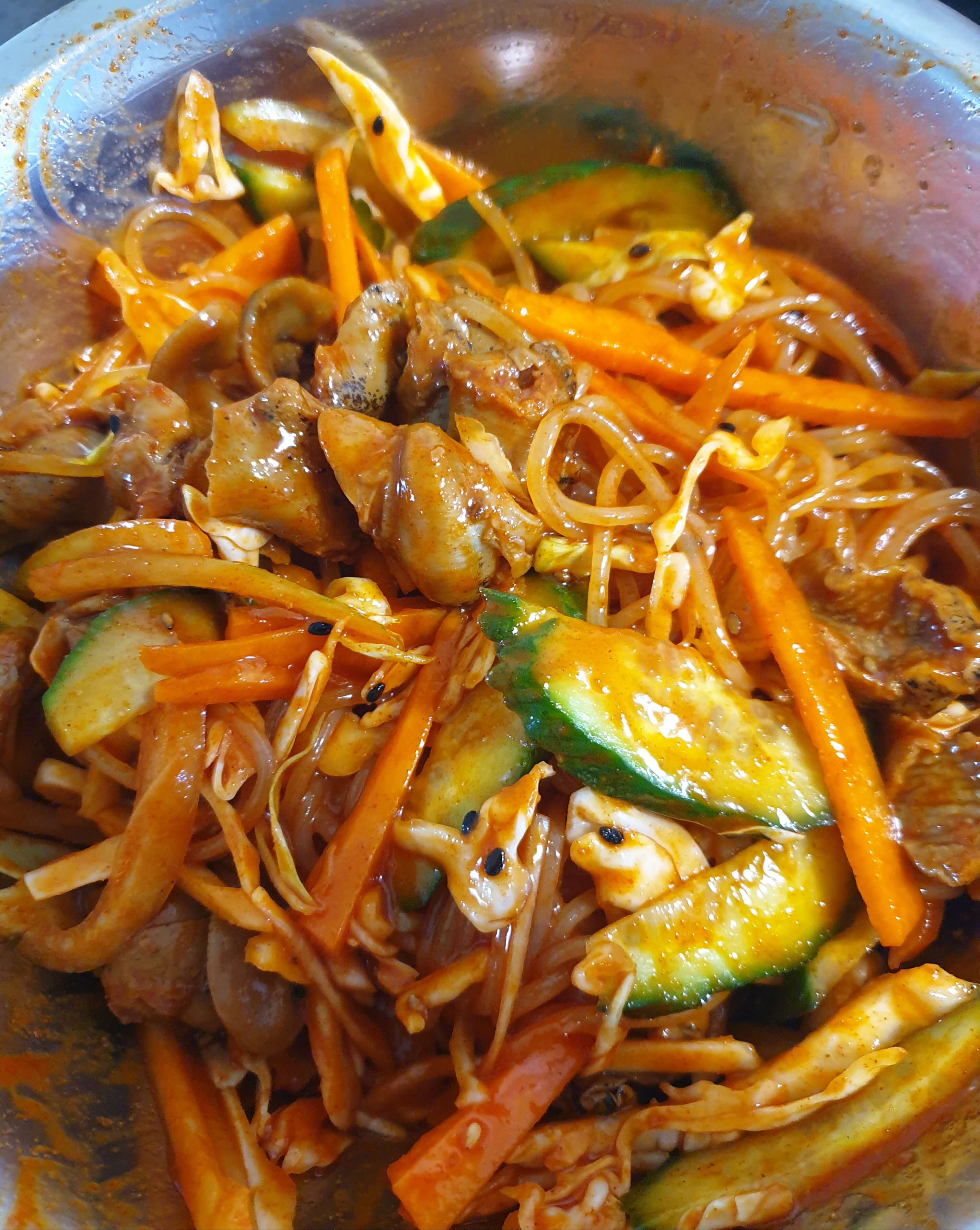 재료- 골뱅이, 쫄면, 양배추, 오이, 당근, 양파