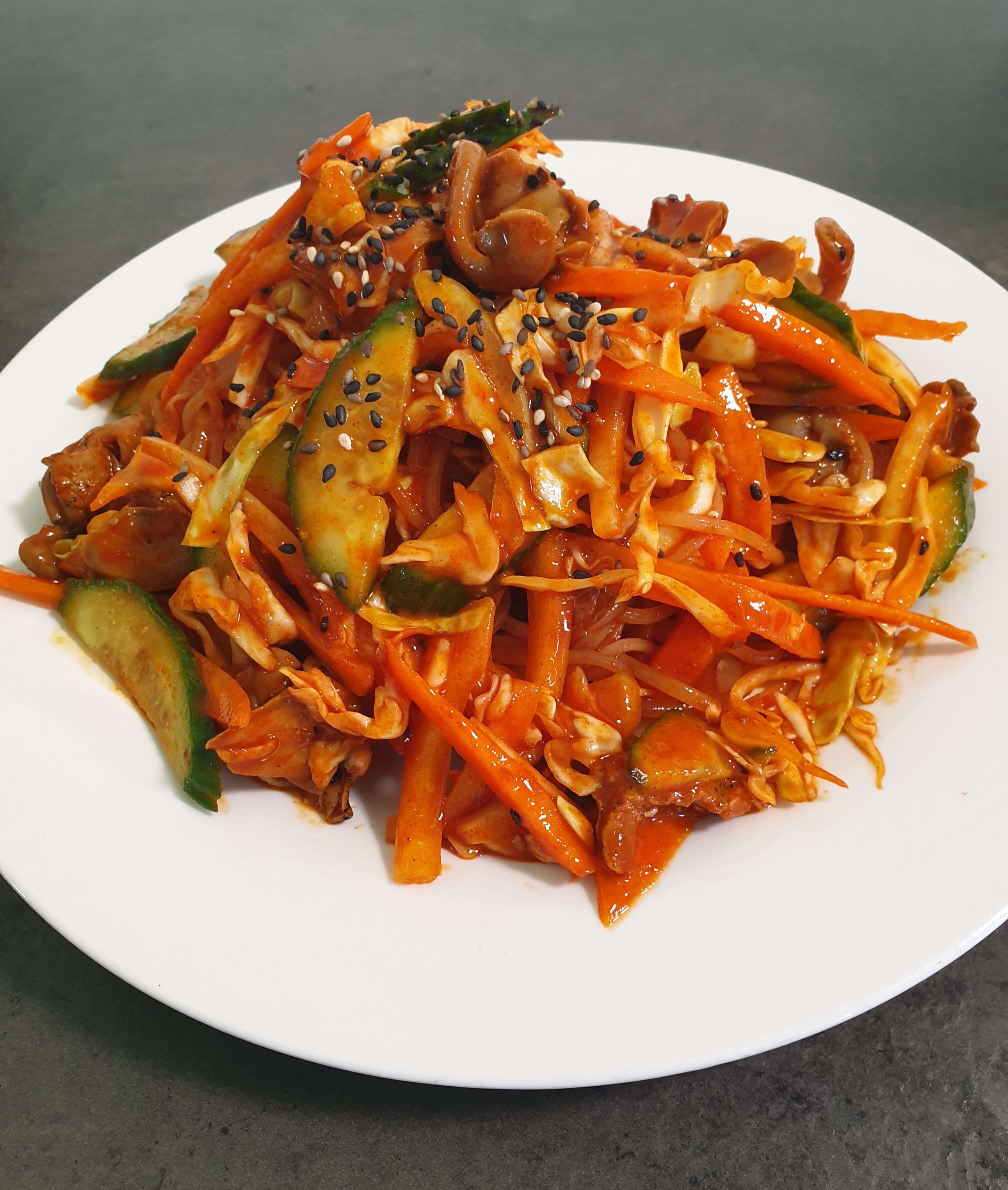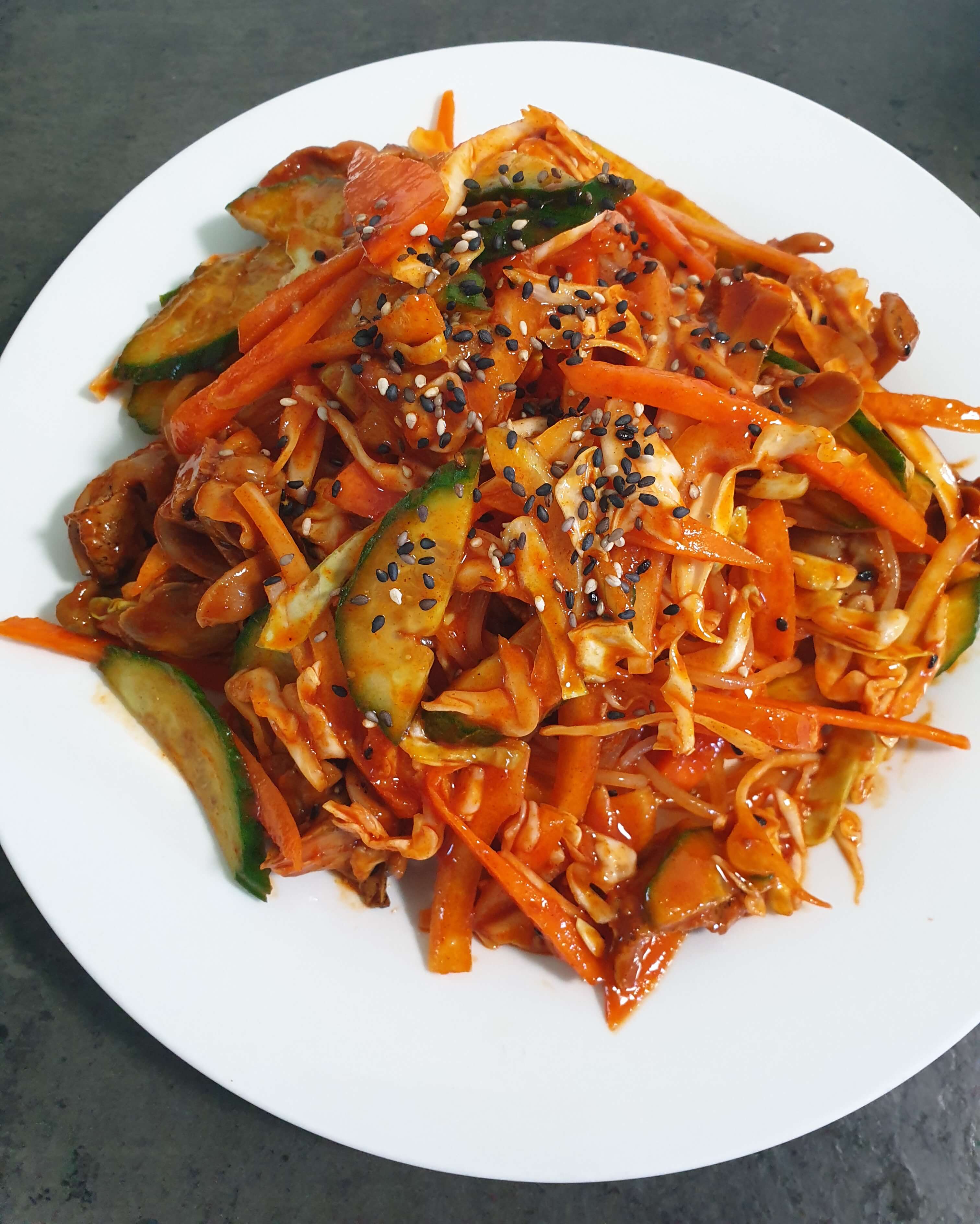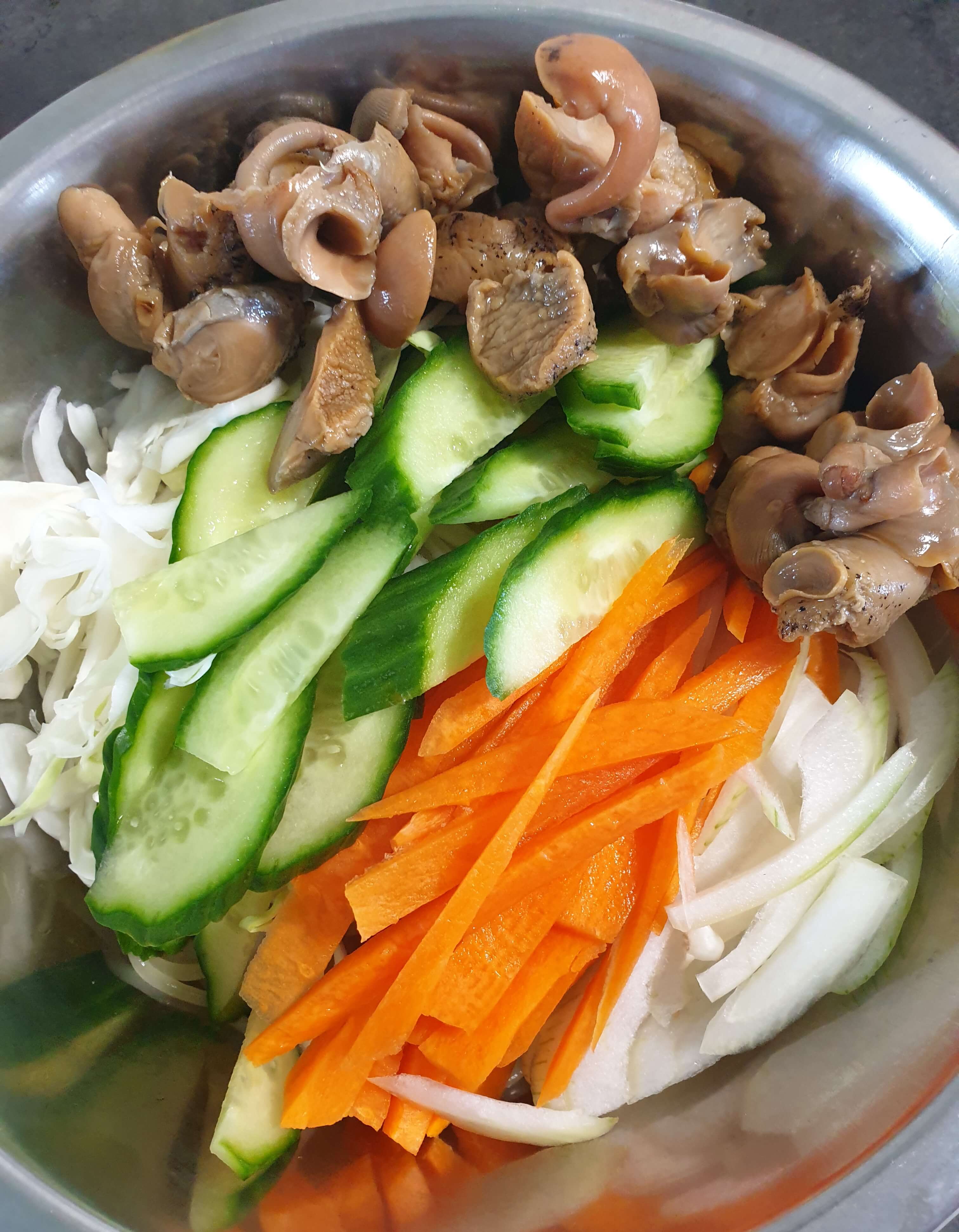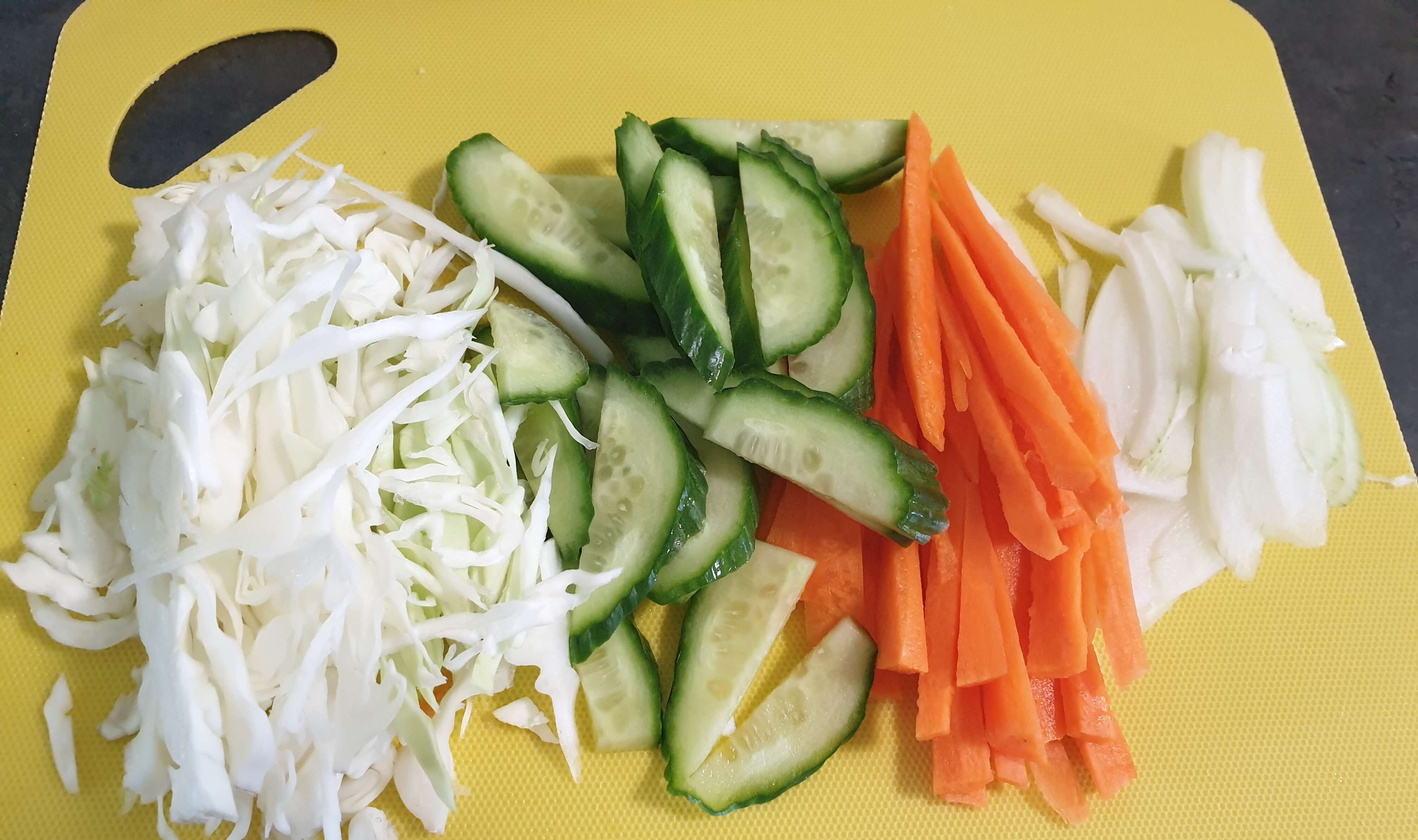 양배추, 오이, 당근, 양파만 넣었어요