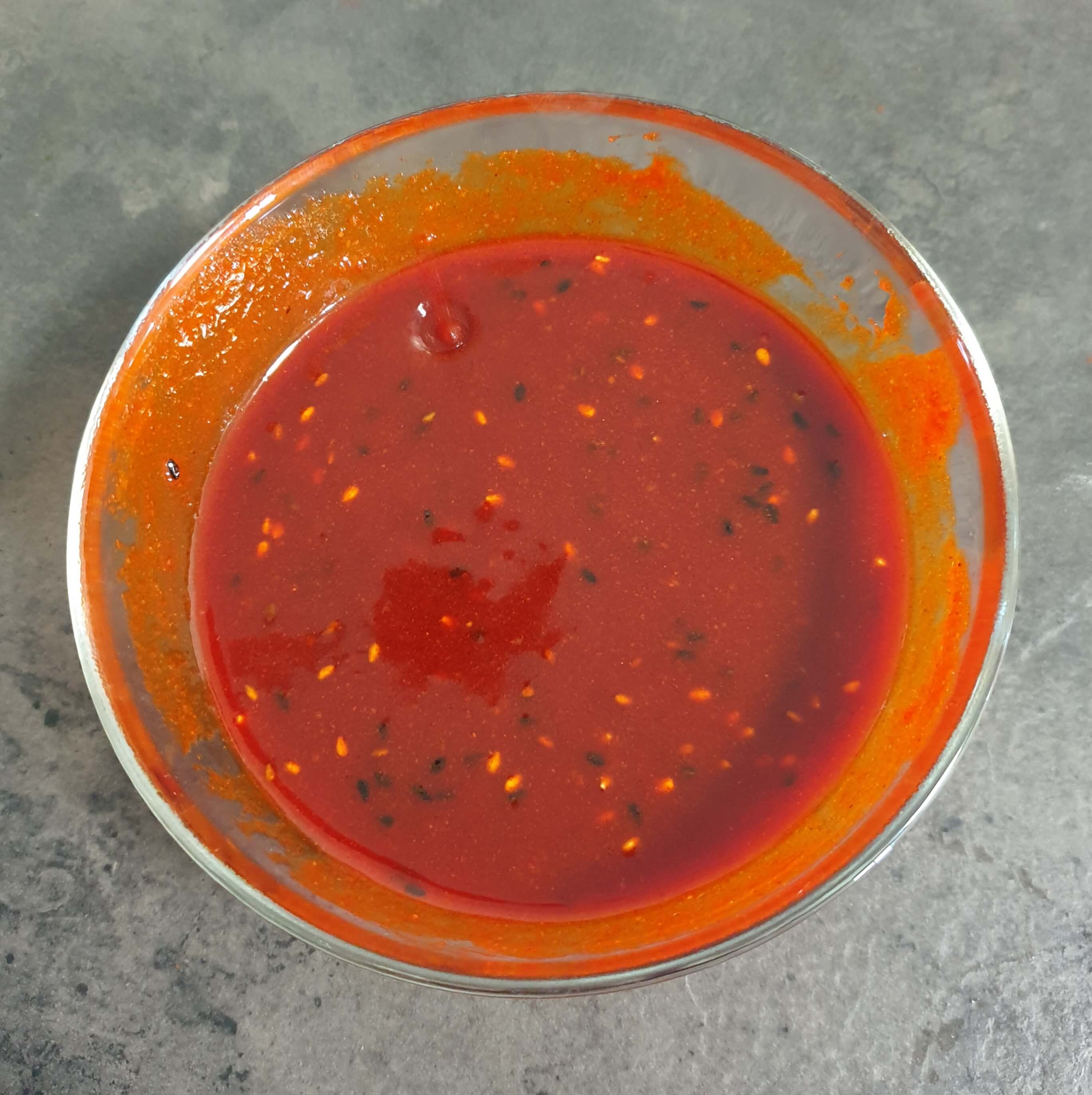 고추장 2큰술, 고춧가루 2큰술, 통깨 2큰술