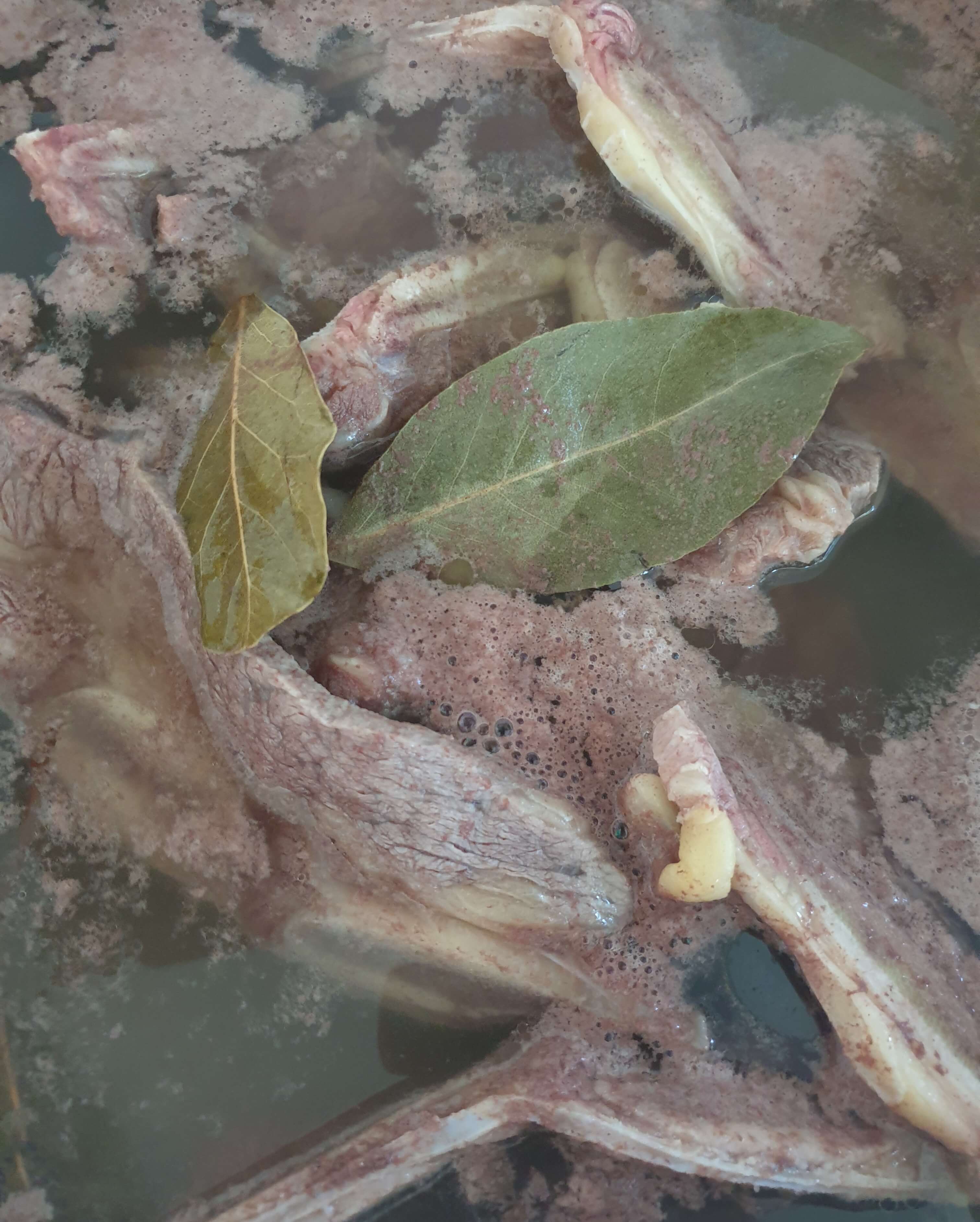 핏물을 뺀 LA갈비는 월계수 잎을 넣고