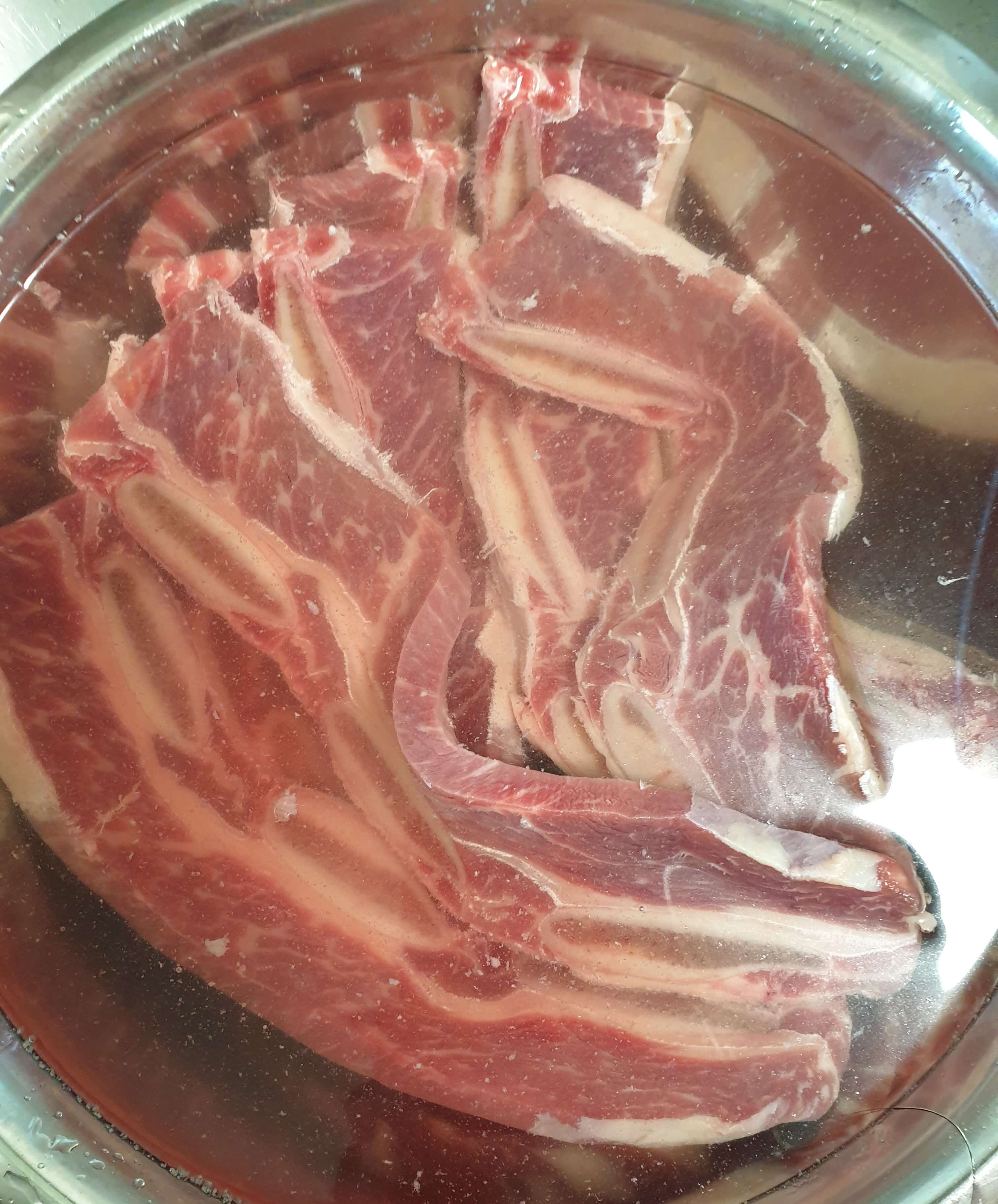 3시간 정도 핏물을 빼줬어요