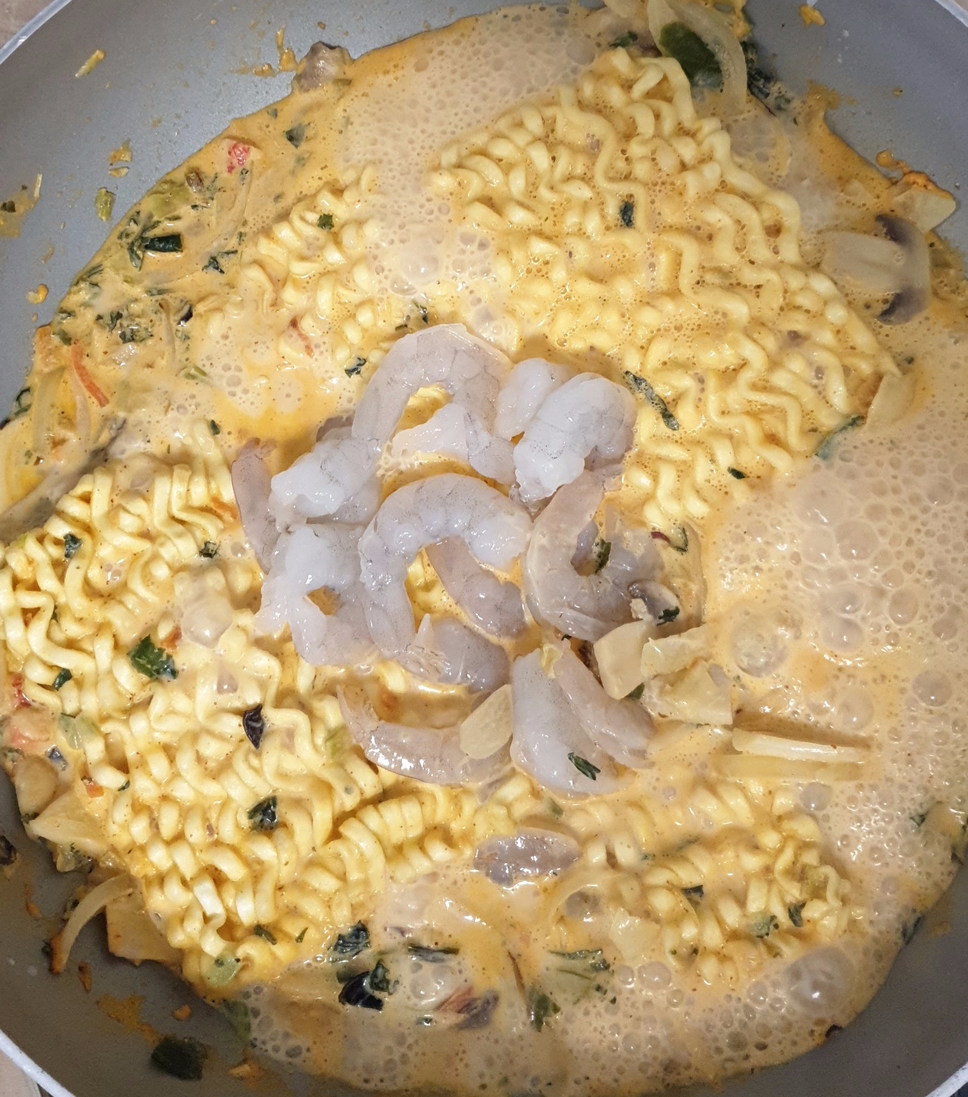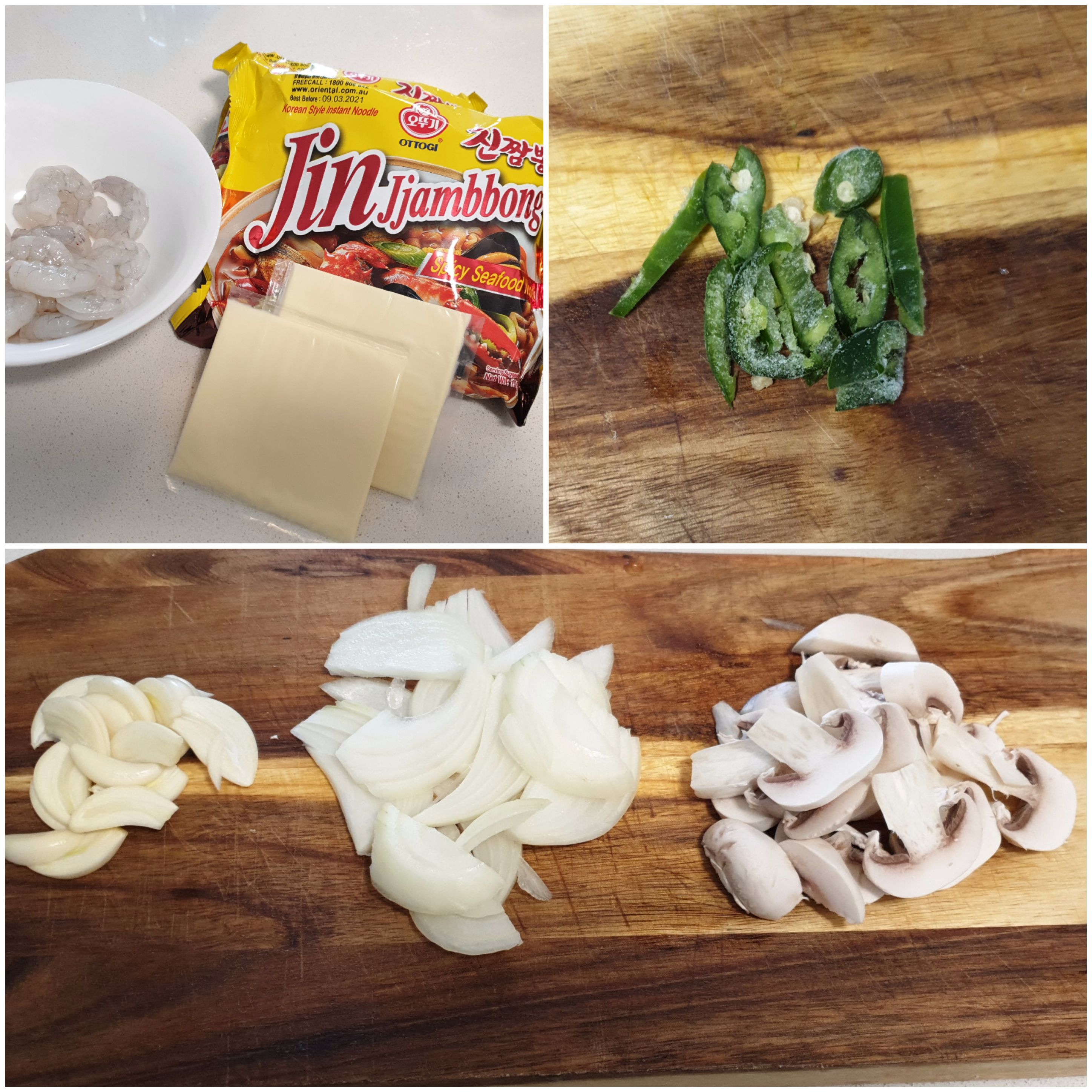 진짬뽕 두 개, 새우, 치즈 두장