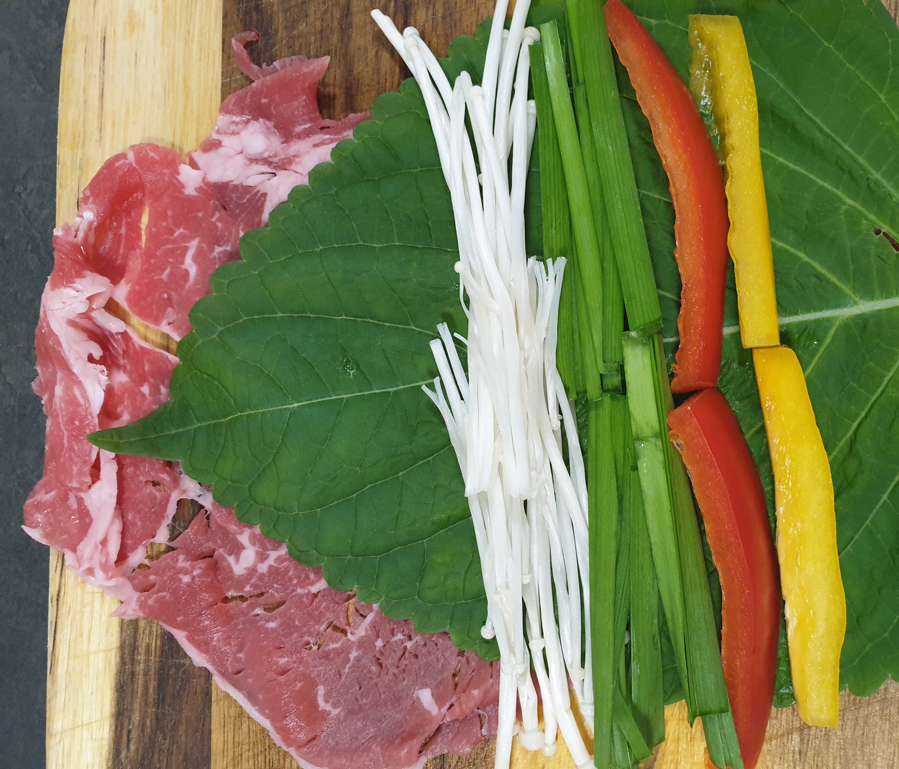 깻잎과 파프리카, 부추, 팽이버섯을