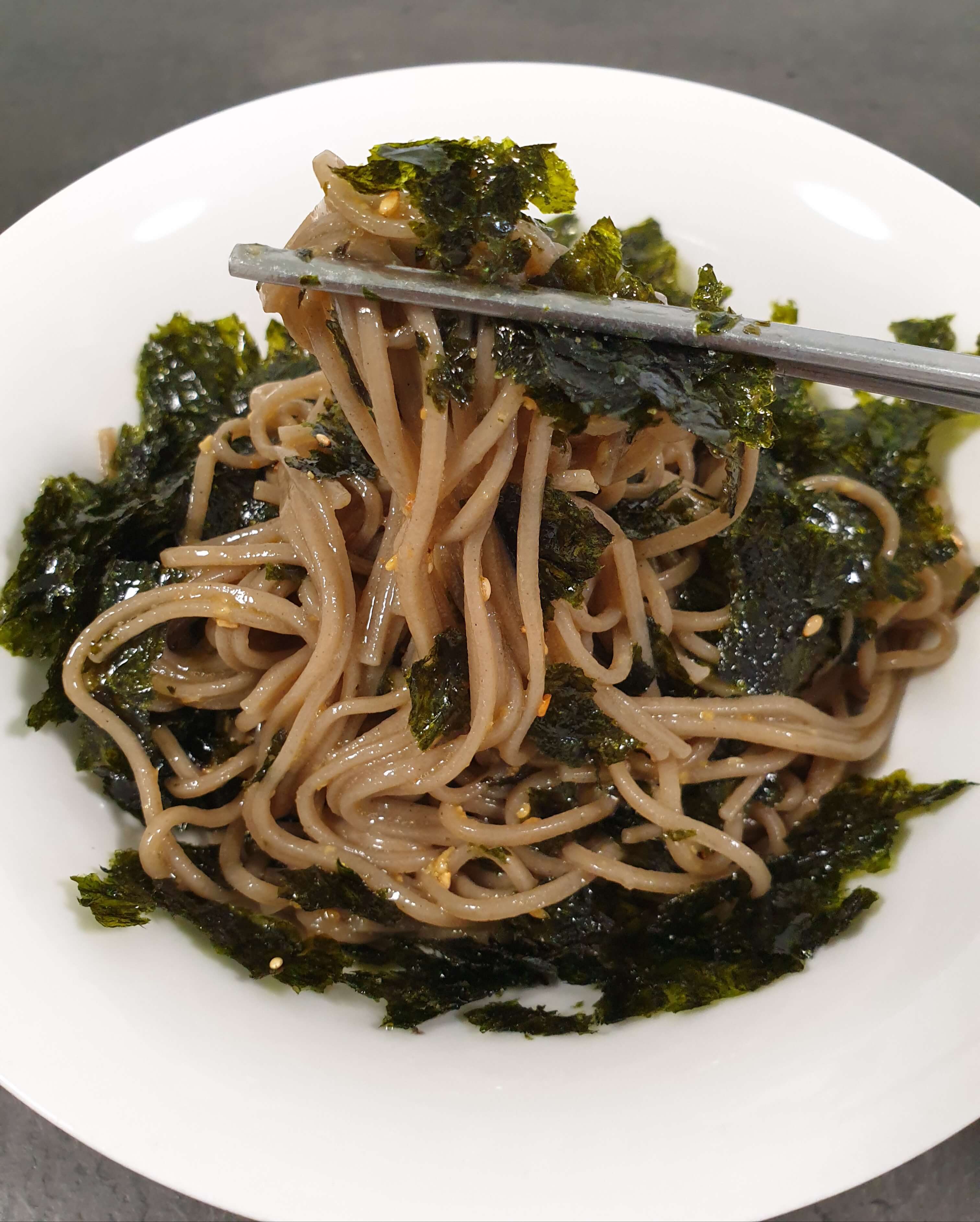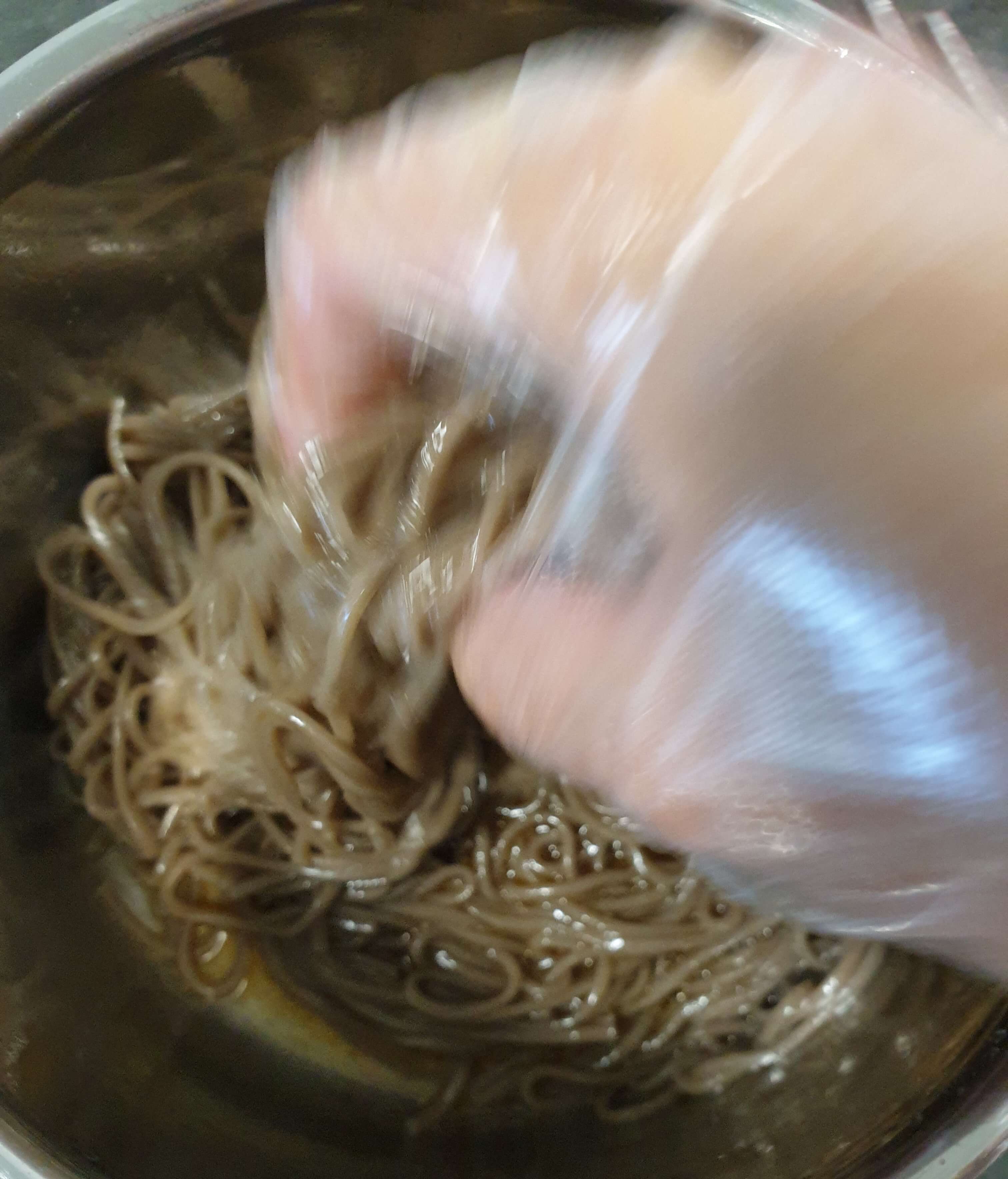 저는 덜 찔려고 메밀면을 100g 사용했어요