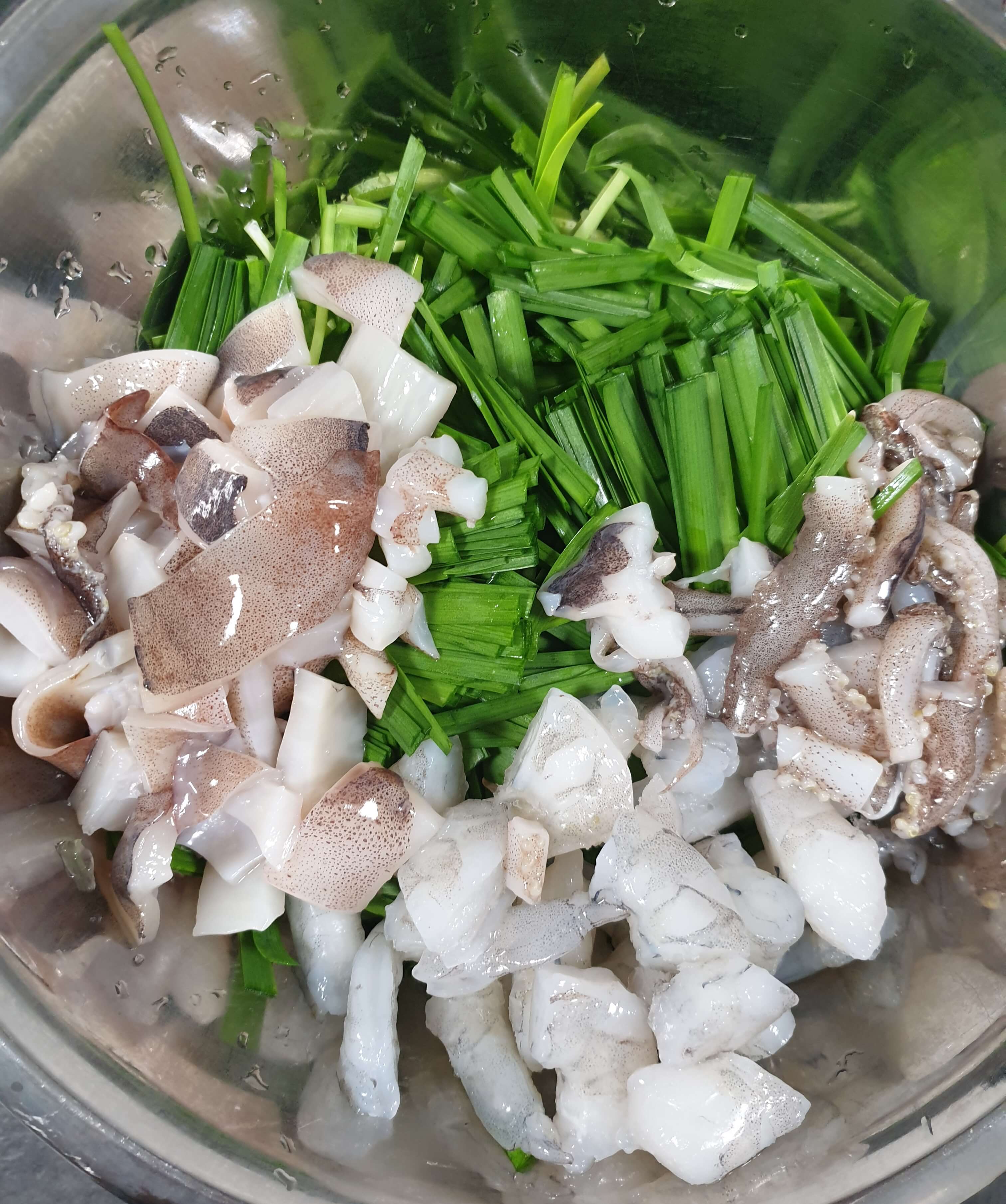 오징어와 새우 넣고 해물 부추전 만들기