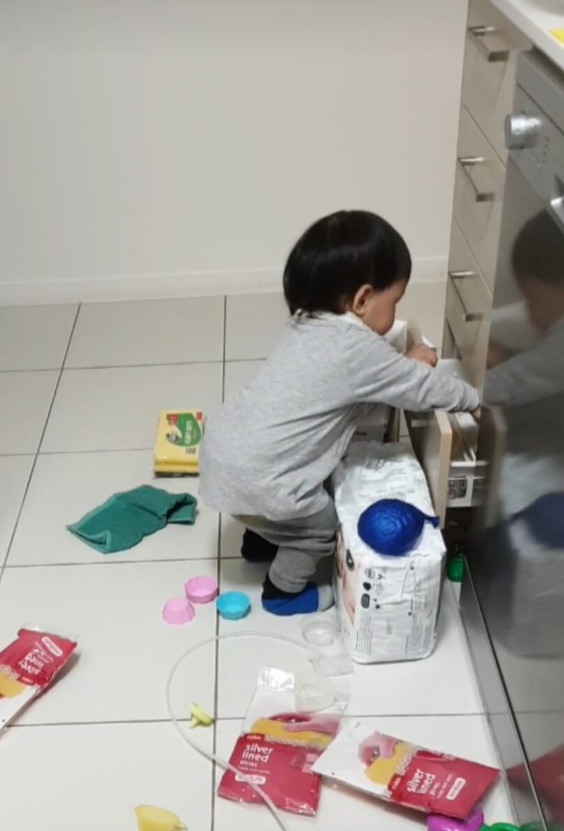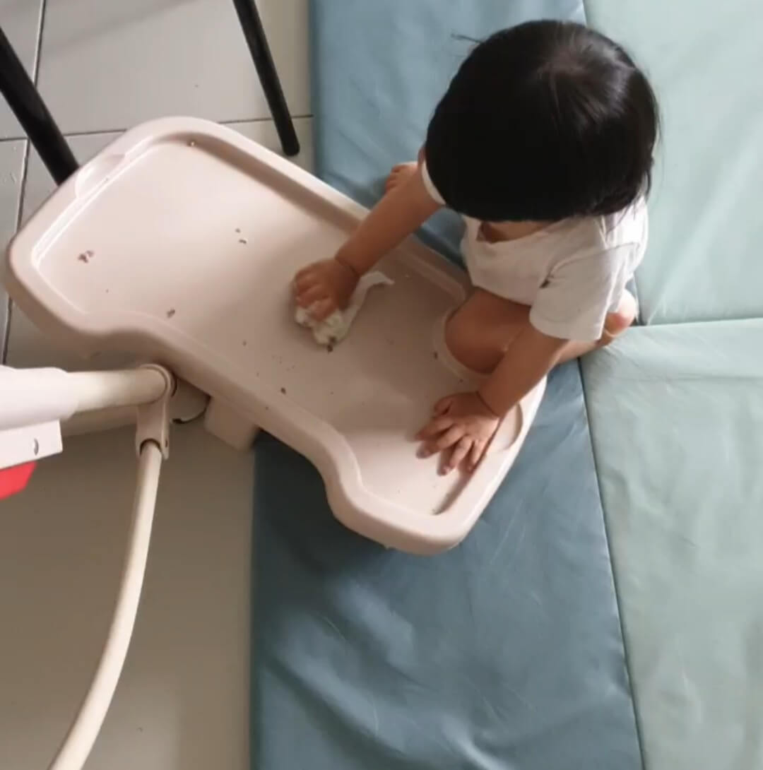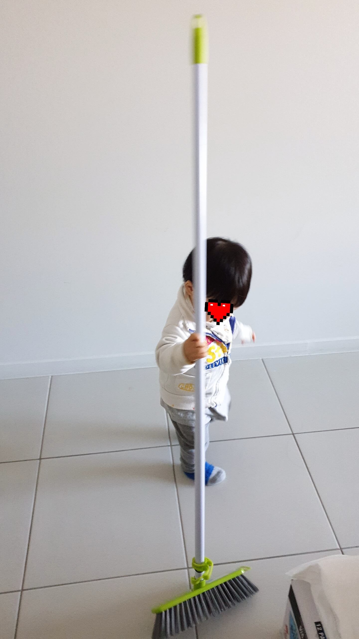 엄마가 하는 걸 보고 청소에도 엄청난 관심을 갖고 따라 해요