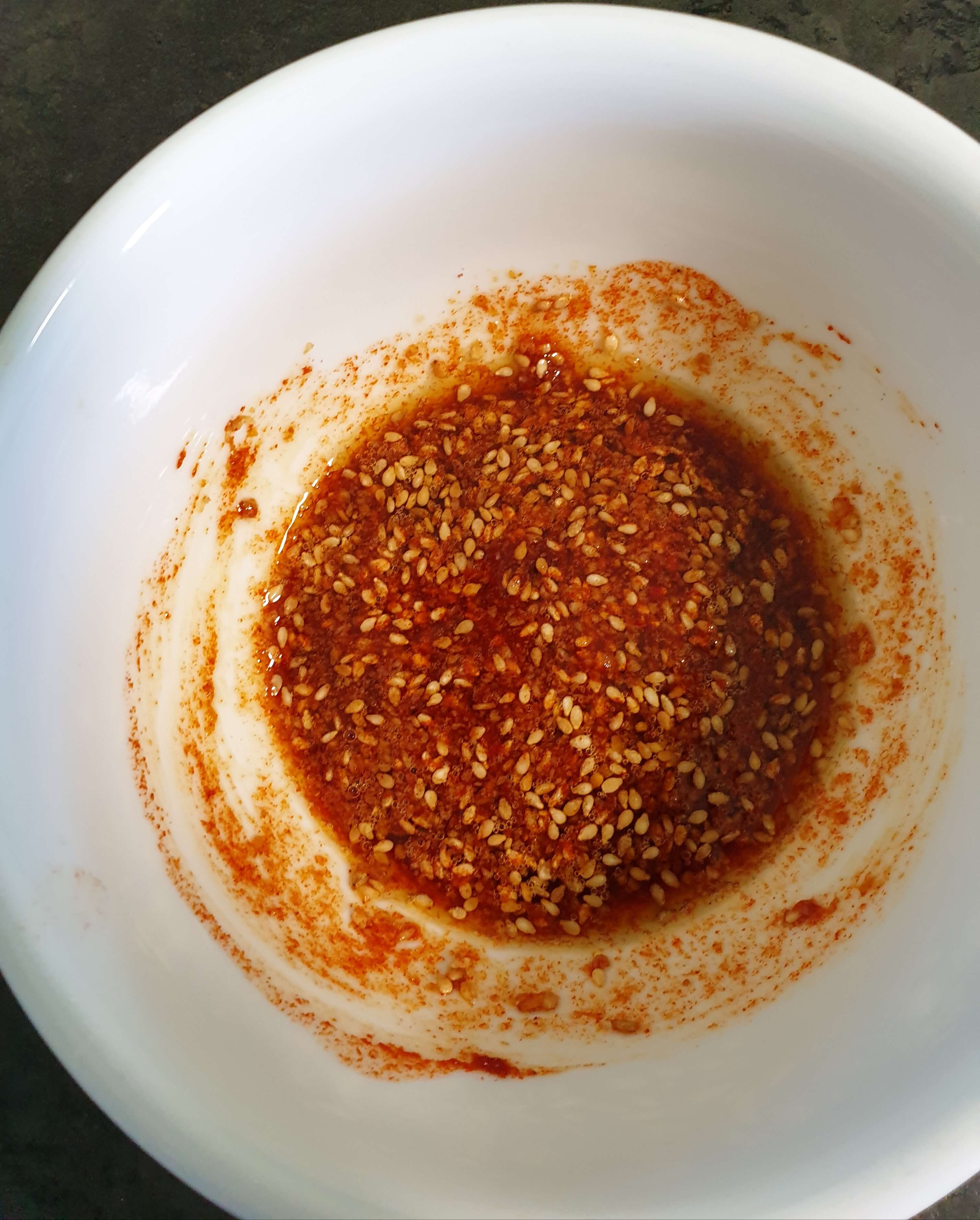 참기름 1큰술, 식초 1/2큰술, 고춧가루 1/2큰술, 깨소금 1큰술