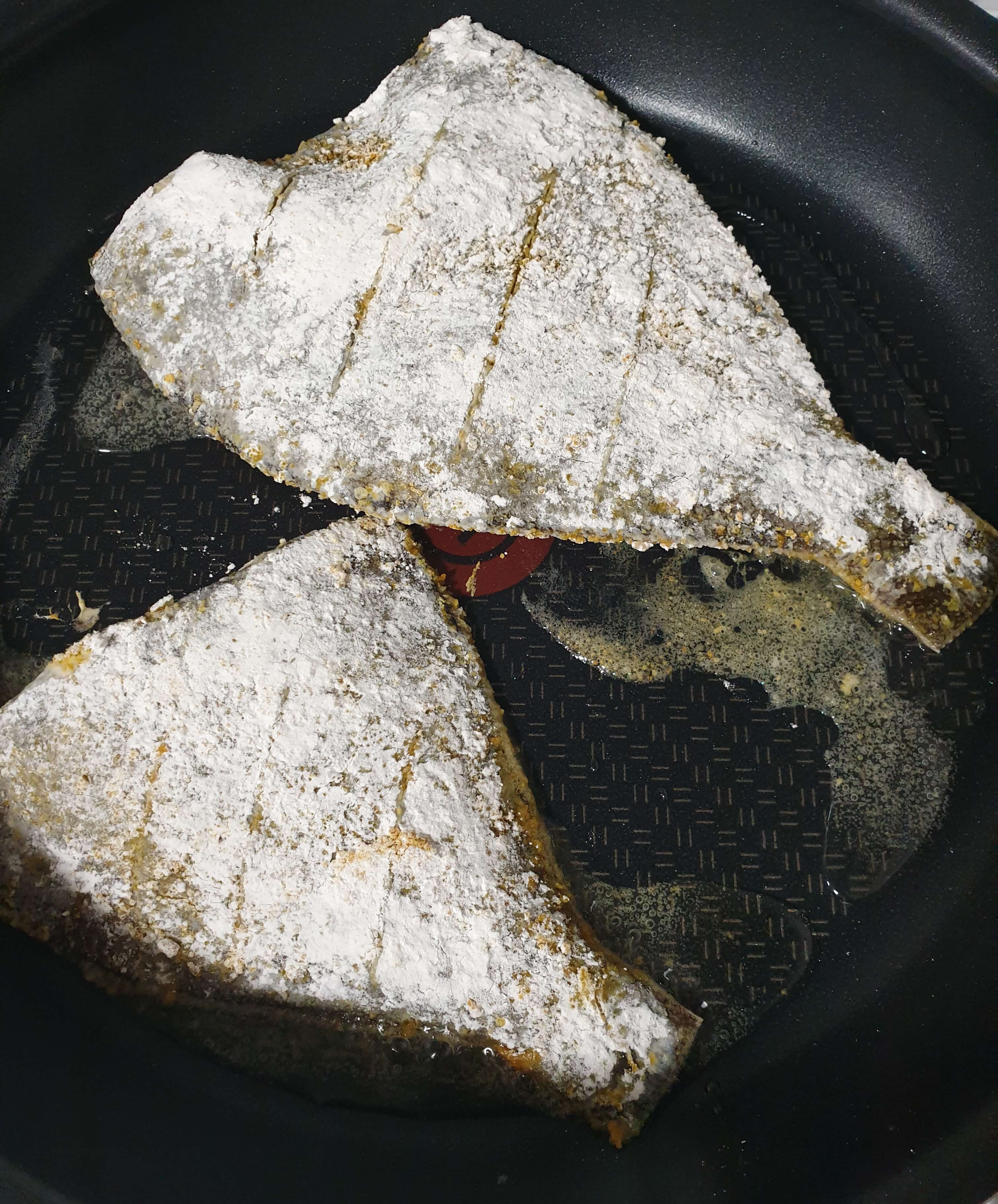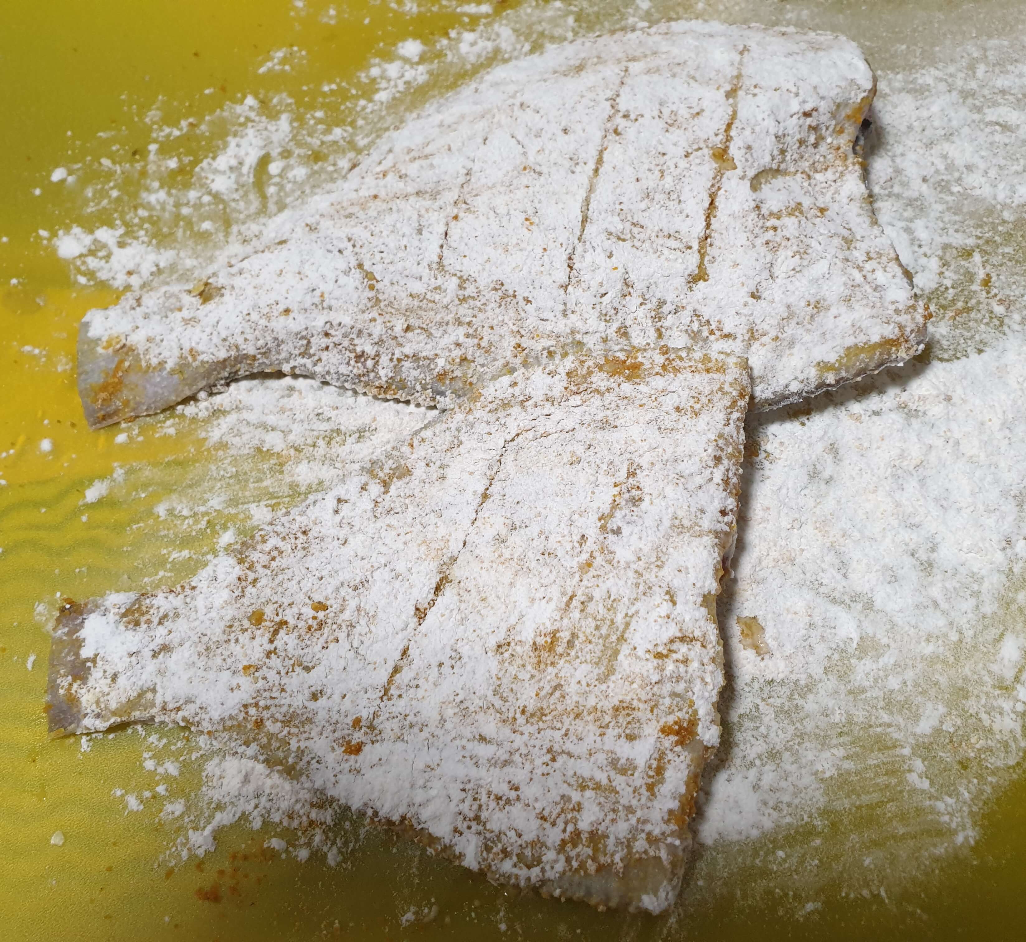 재료- 가자미, 카레가루, 튀김가루, 오일