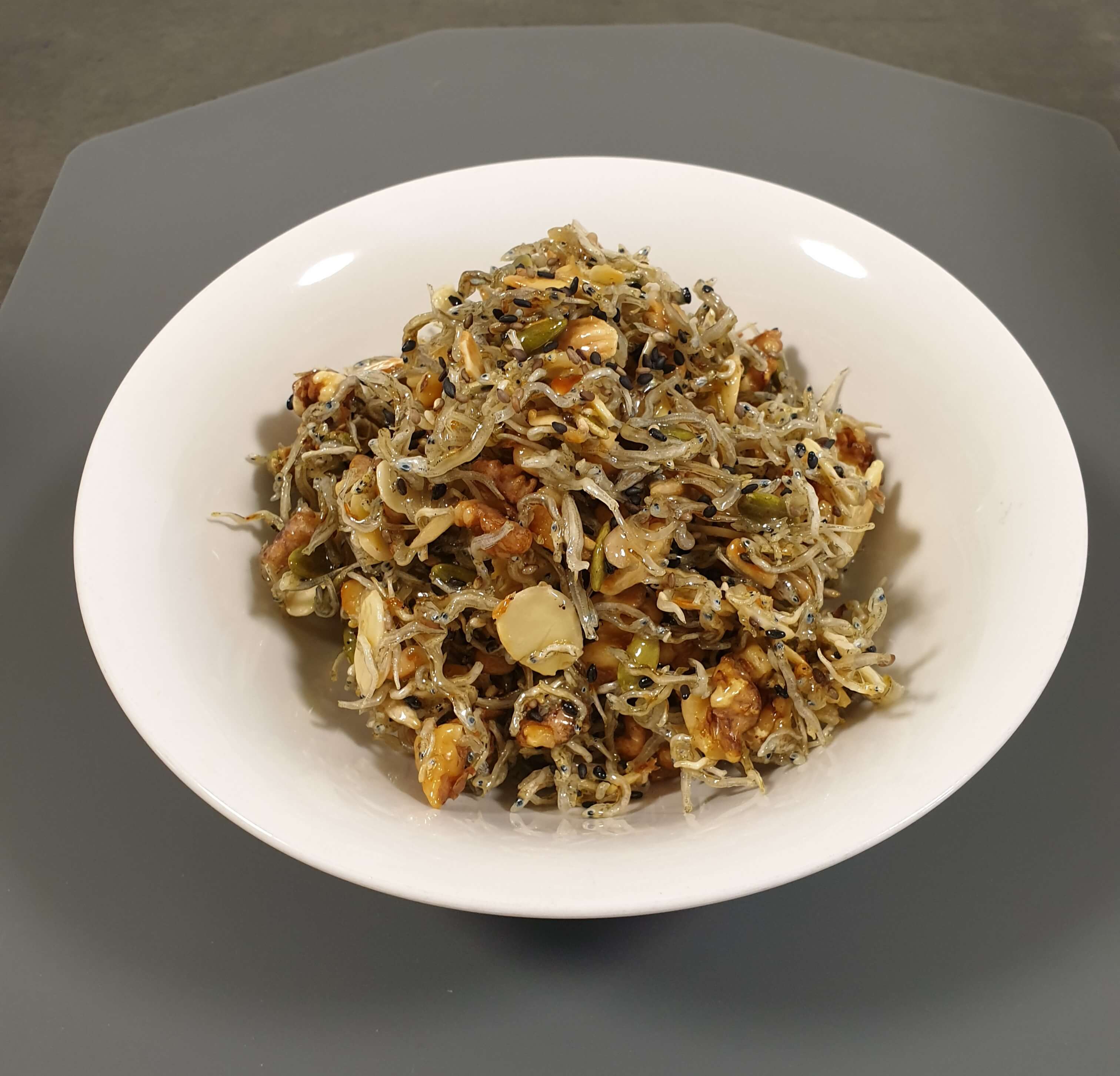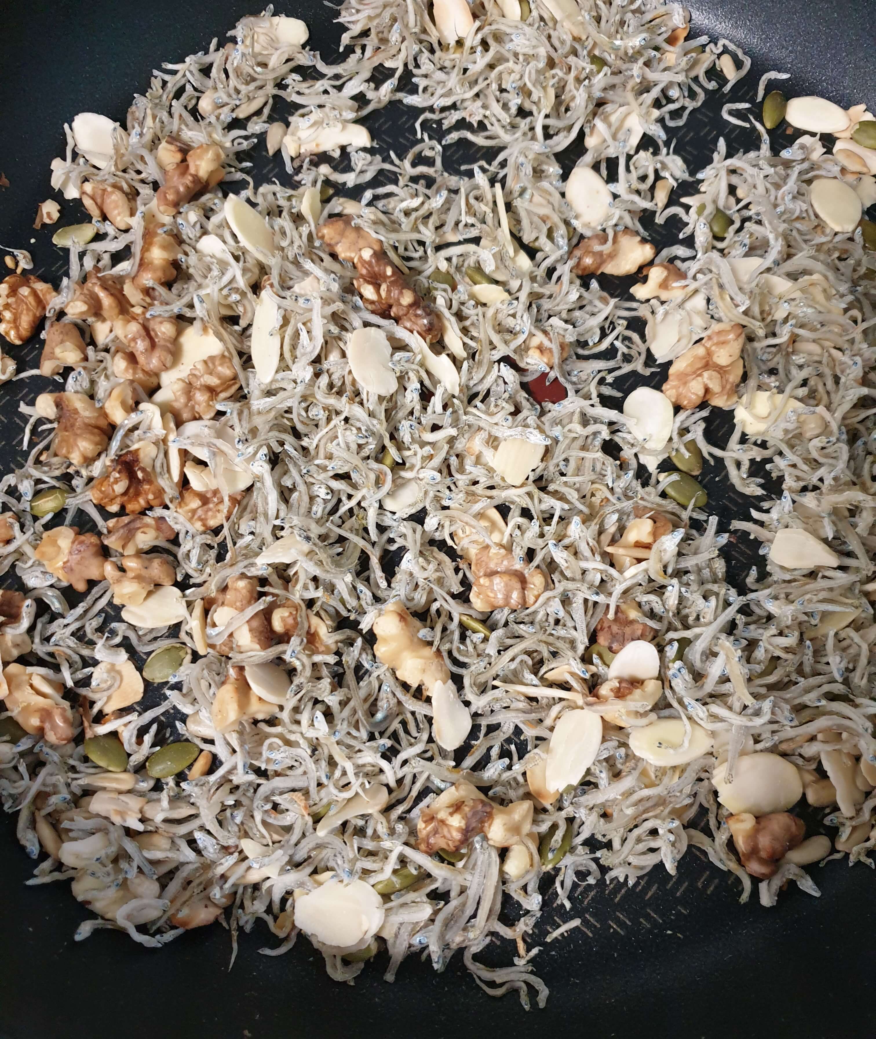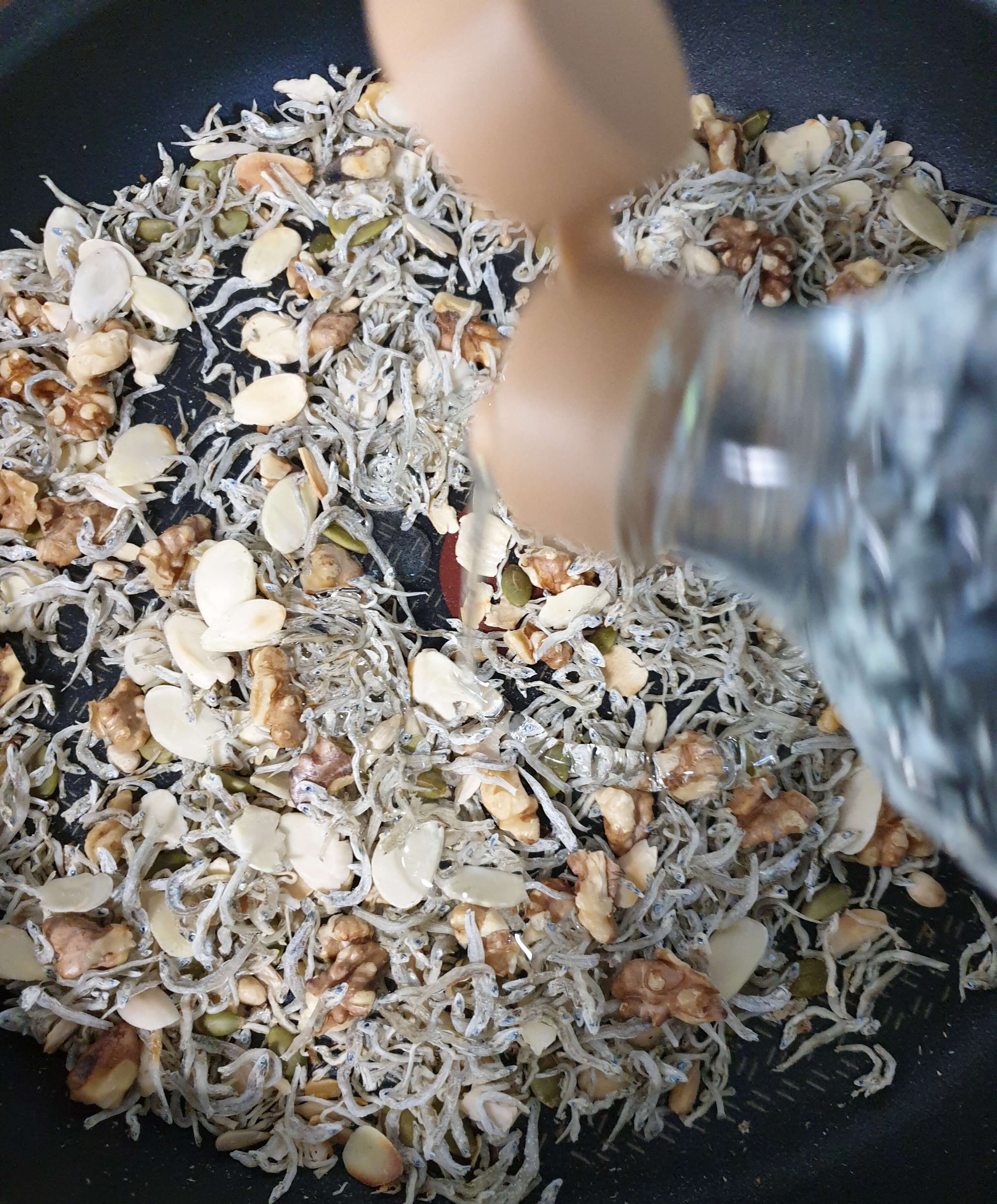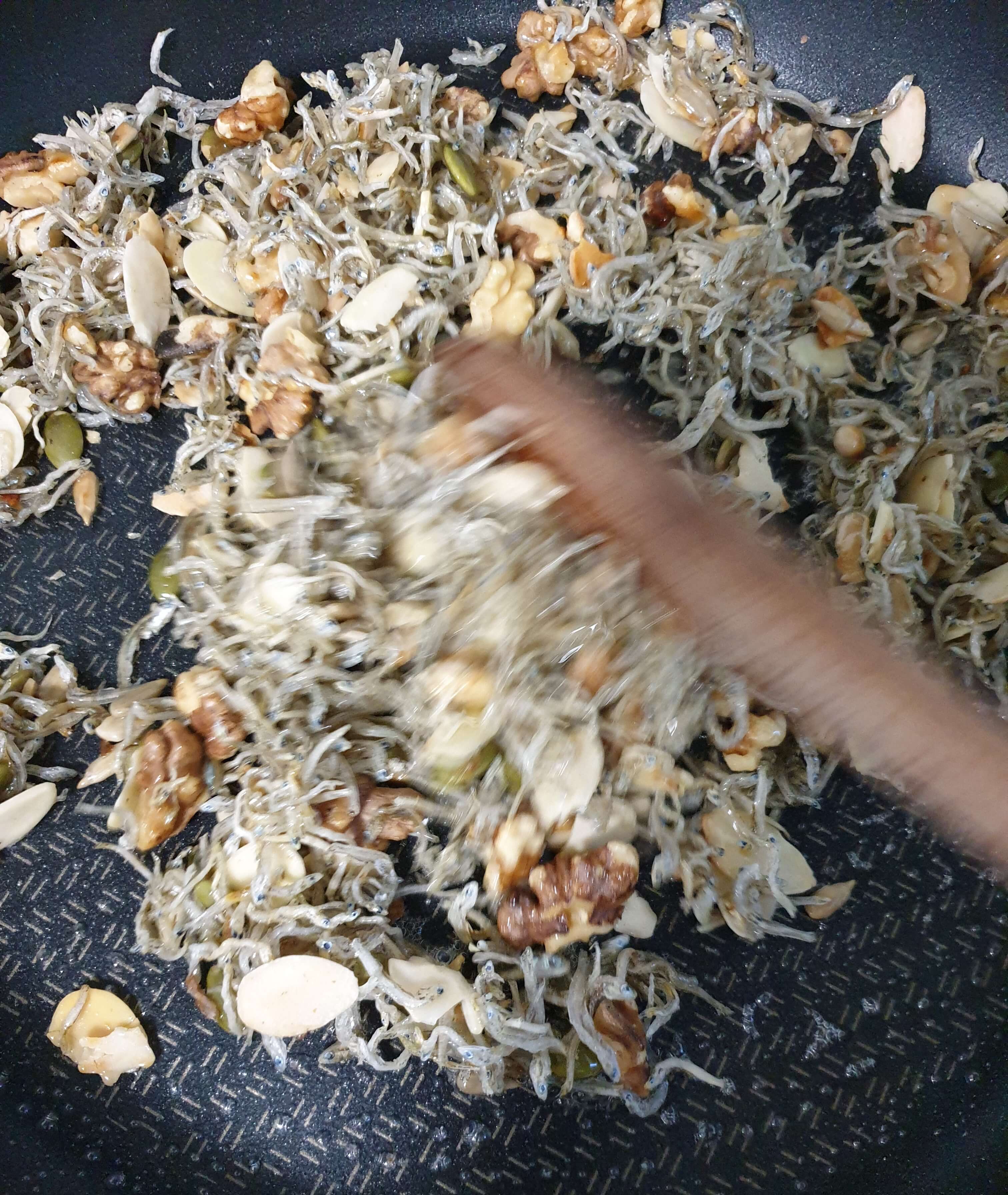 재료- 견과류, 잔멸치, 올리고당, 마요네즈, 통깨