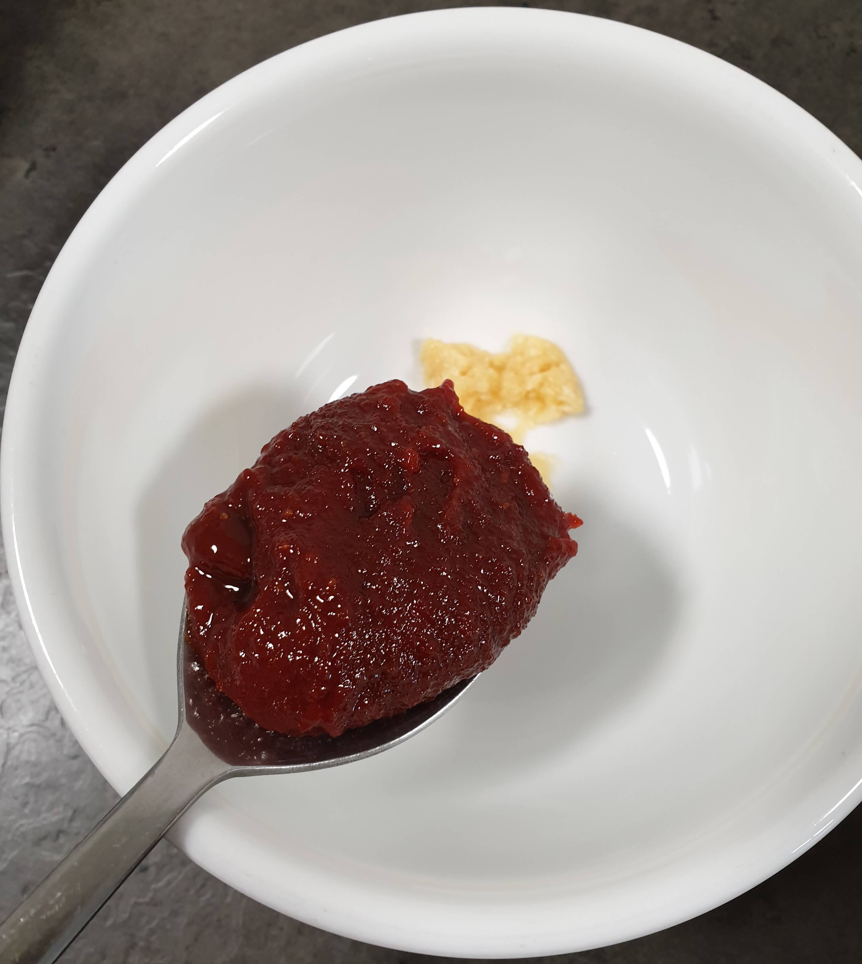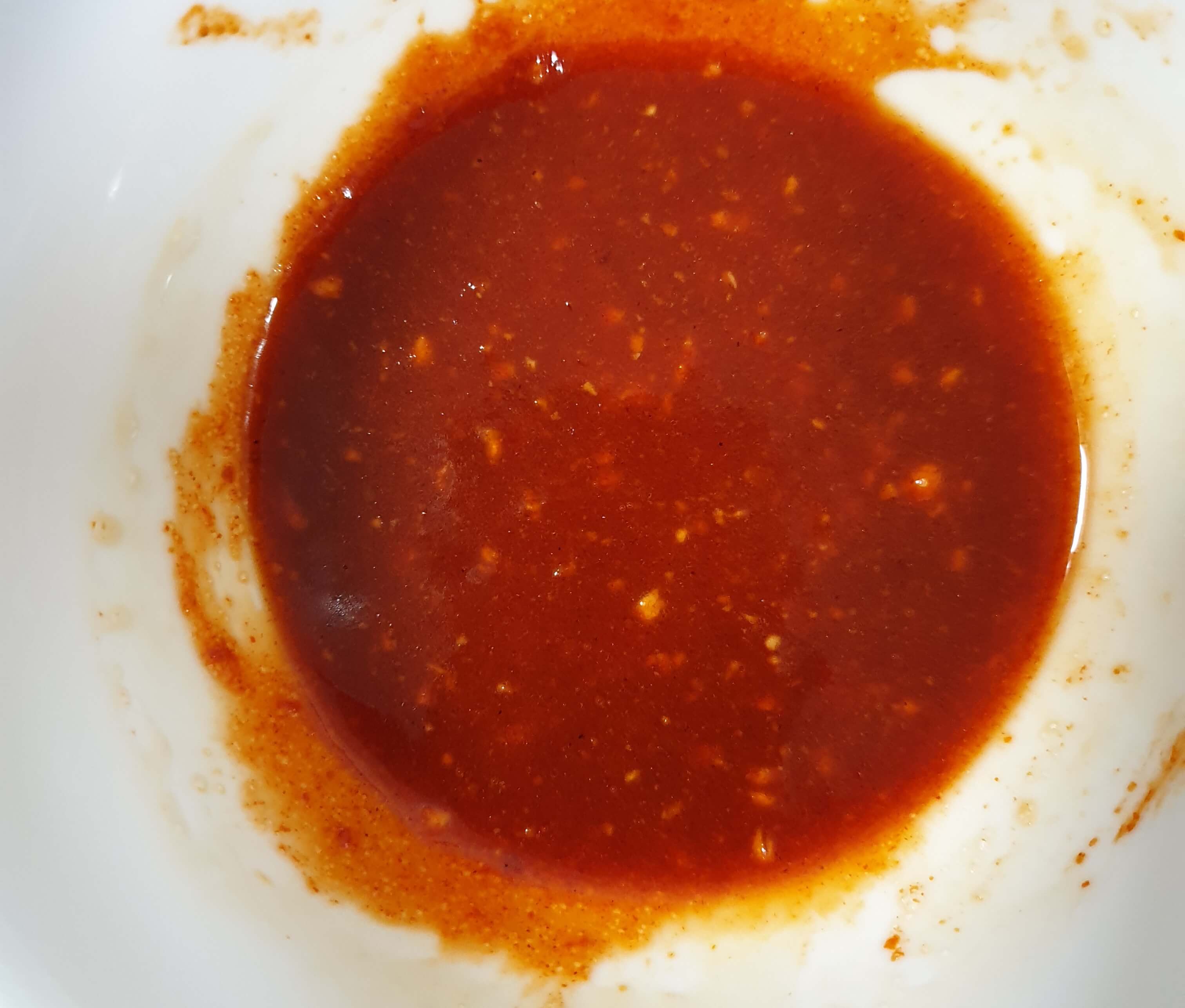 고추장 1큰술, 다진마늘 반 큰 술, 설탕 1큰술, 올리고당 1큰술