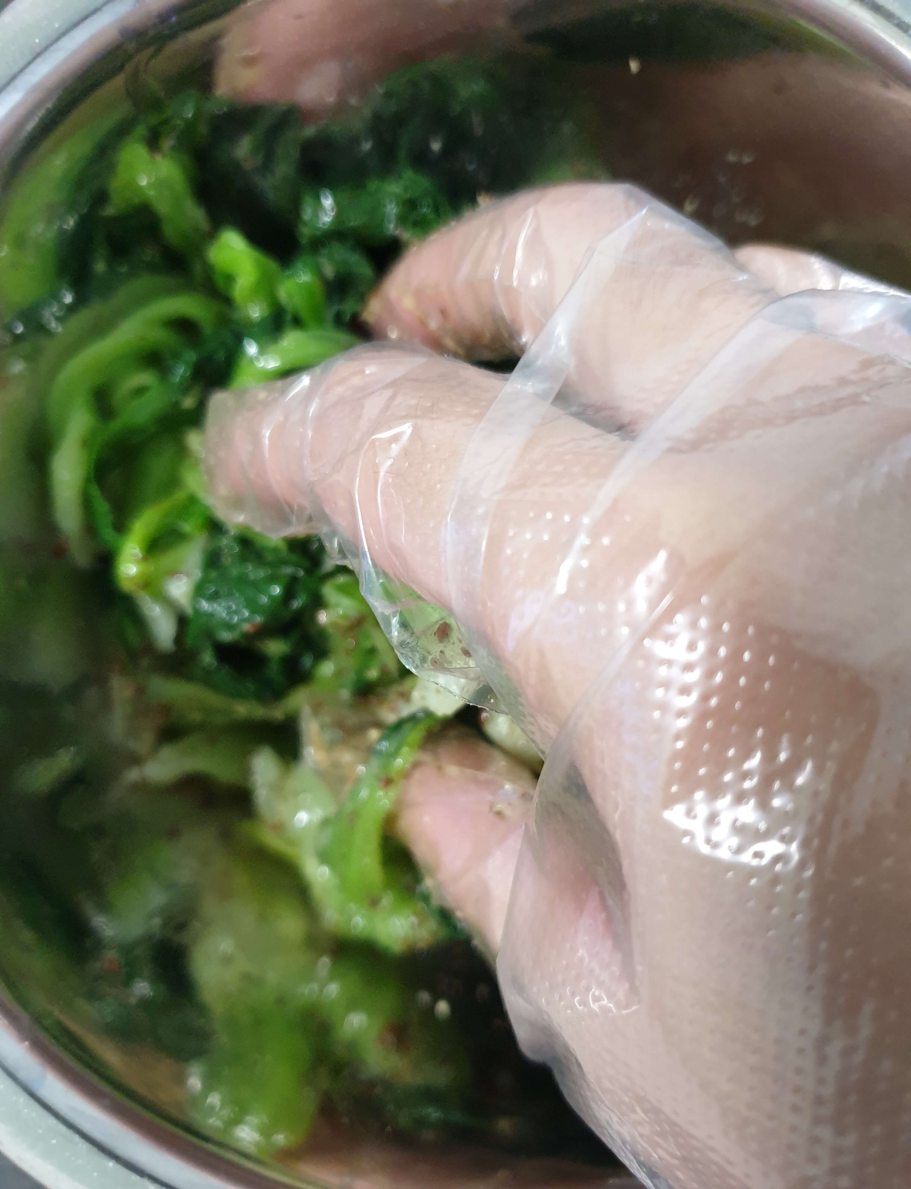 찬물에 헹궈 물기를 꼬~옥 꼭