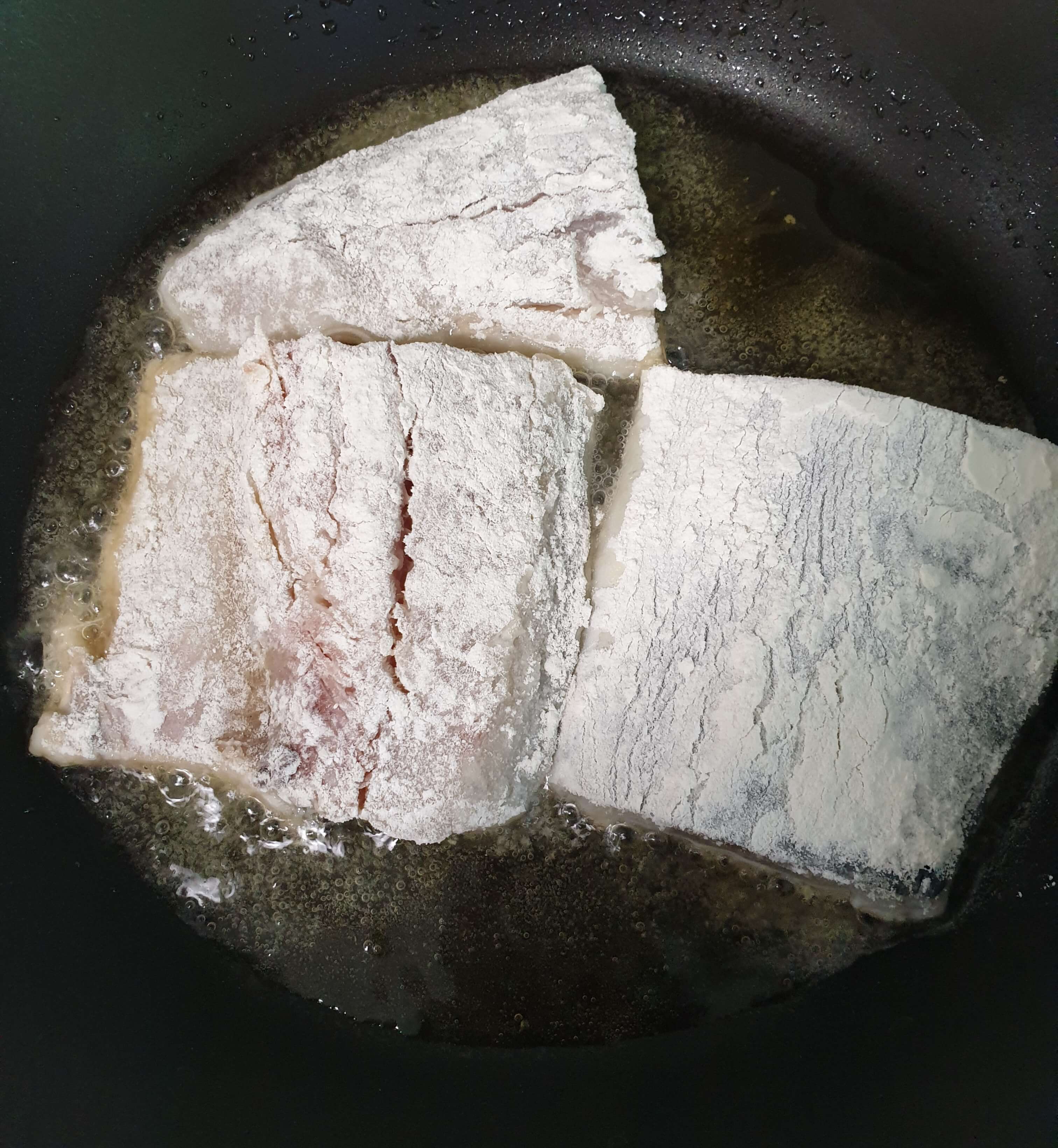 삼치에 밀가루 옷을 앞뒤로 묻힌 후