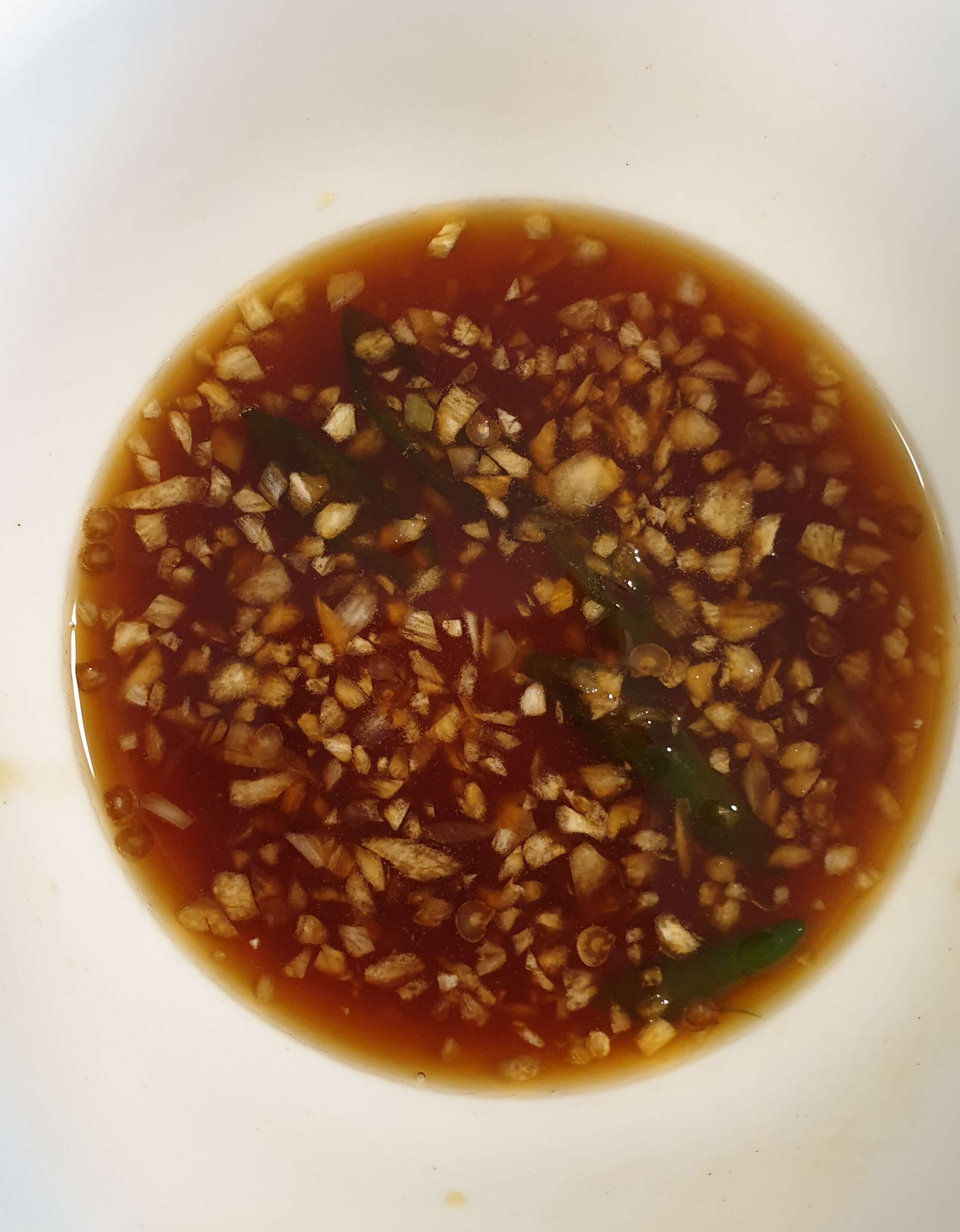 간장, 다진 마늘, 굴소스, 설탕, 레몬즙, 맛술, 후추