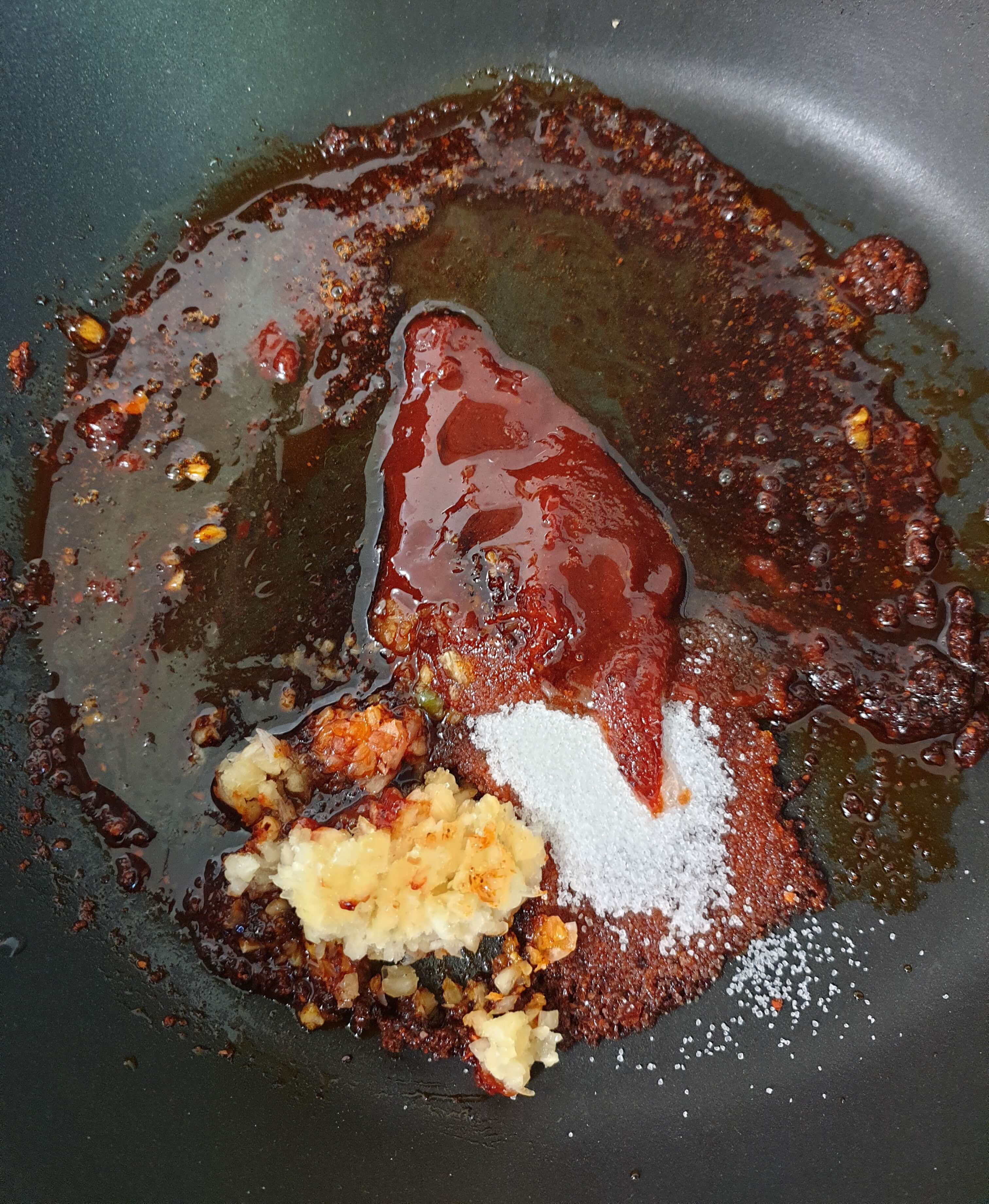 고춧가루, 다진마늘, 고추장, 설탕, 간장