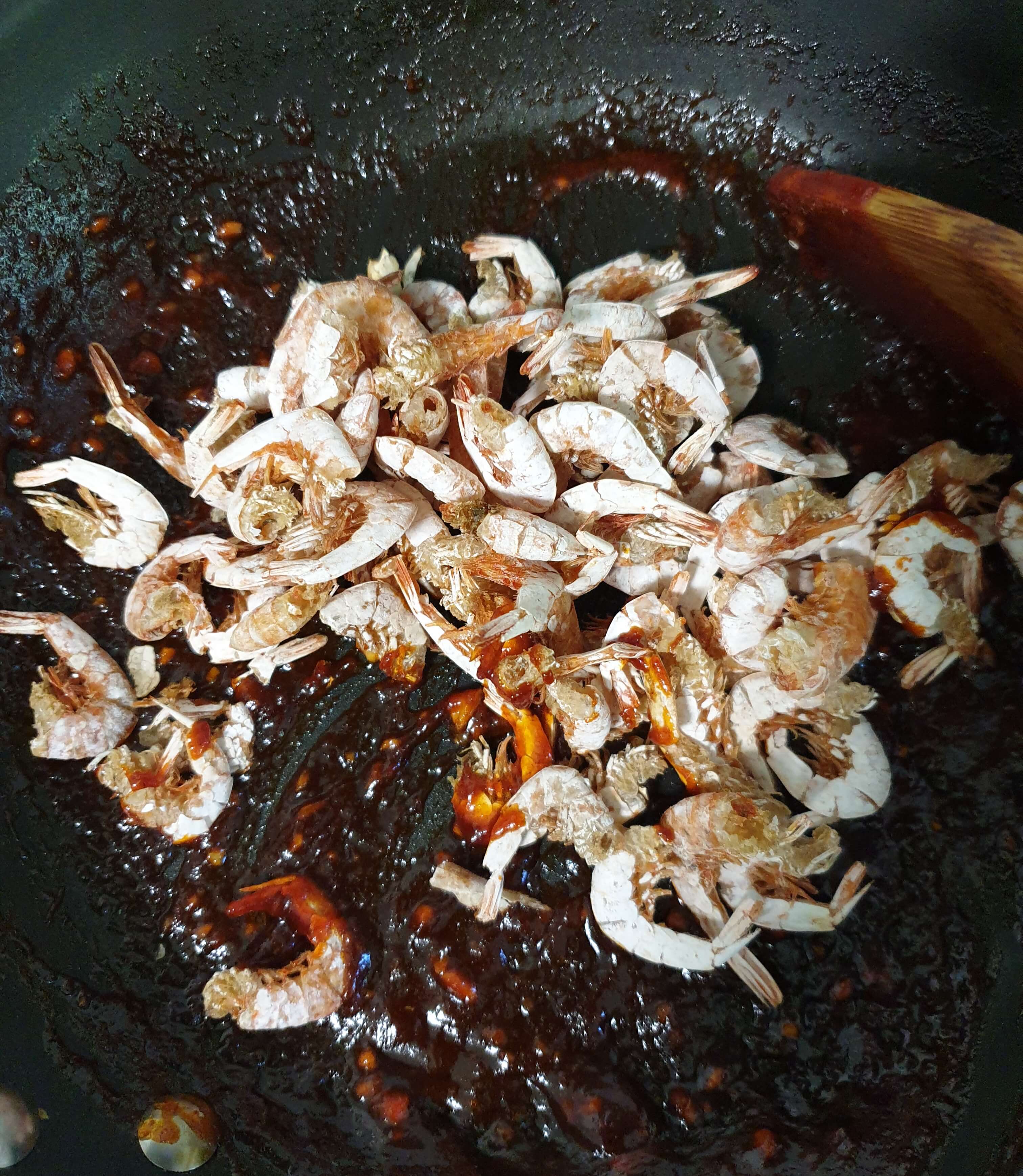 남은 양념에는 건새우를