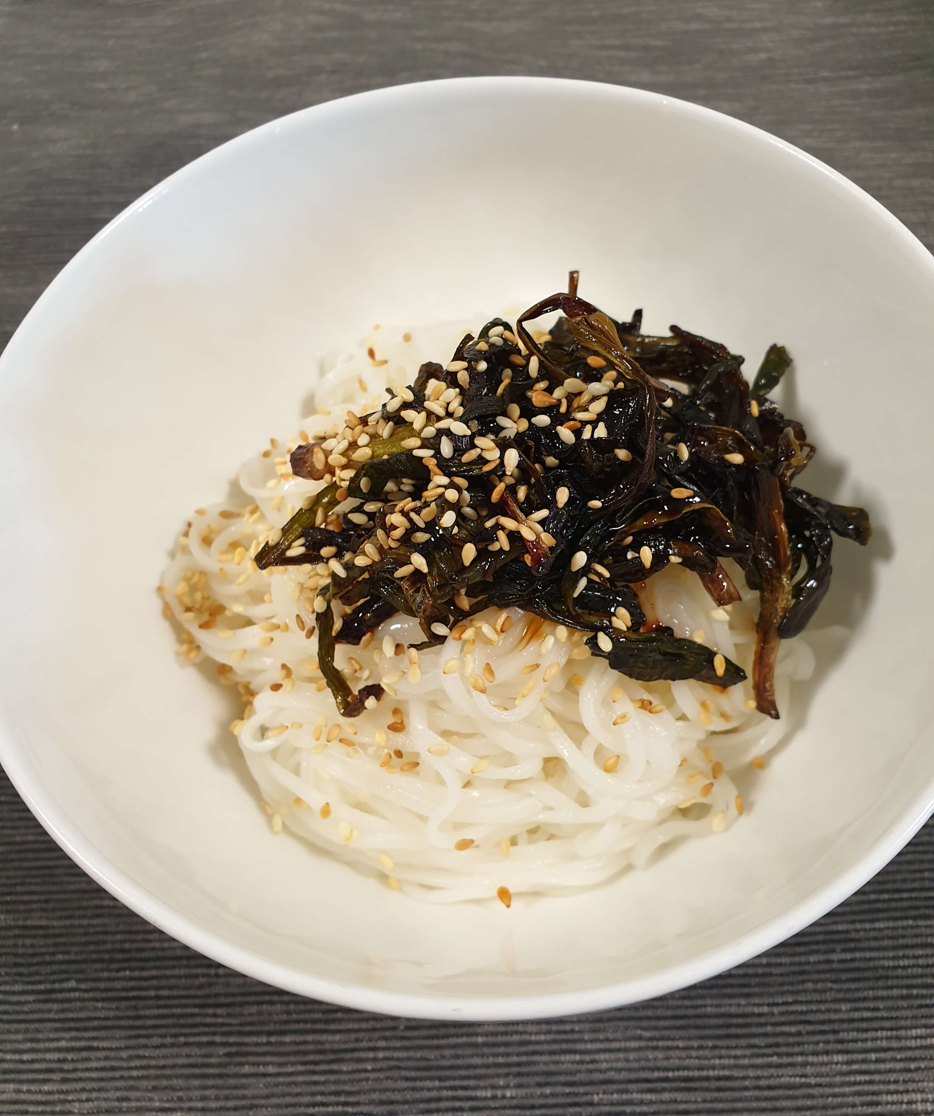 오늘의 요리 고추장 넣고 비벼먹는 비빔국수도 맛있지만 가끔은 순하게 간장하고 들기름 넣고 비벼 먹는 간장비빔국수도 맛있더라고요 입맛 없을 때 칼 쓰기 싫을 때 별거 안 하고도 뚝딱 만들