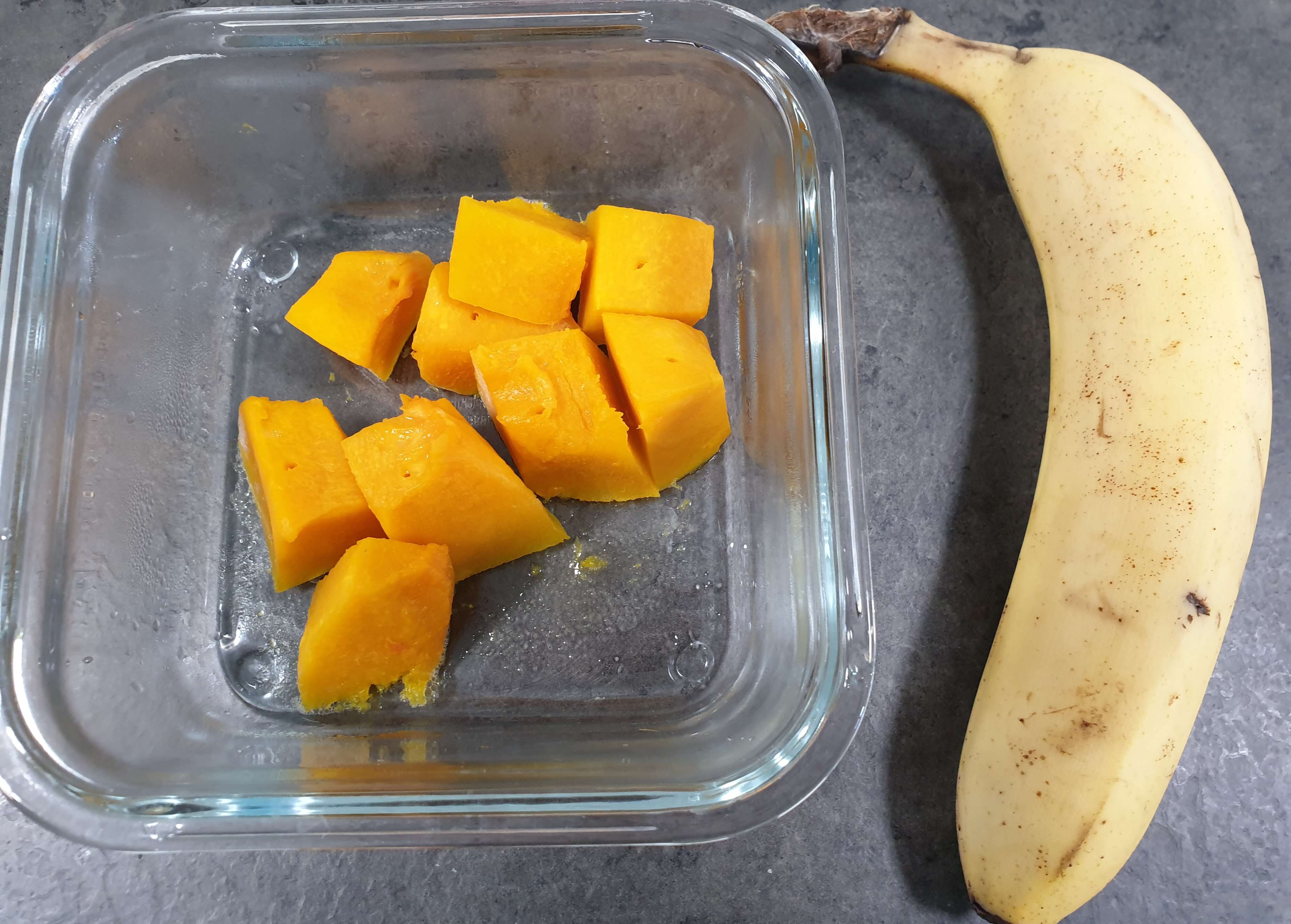 바나나와 잘 쪄진 단호박과