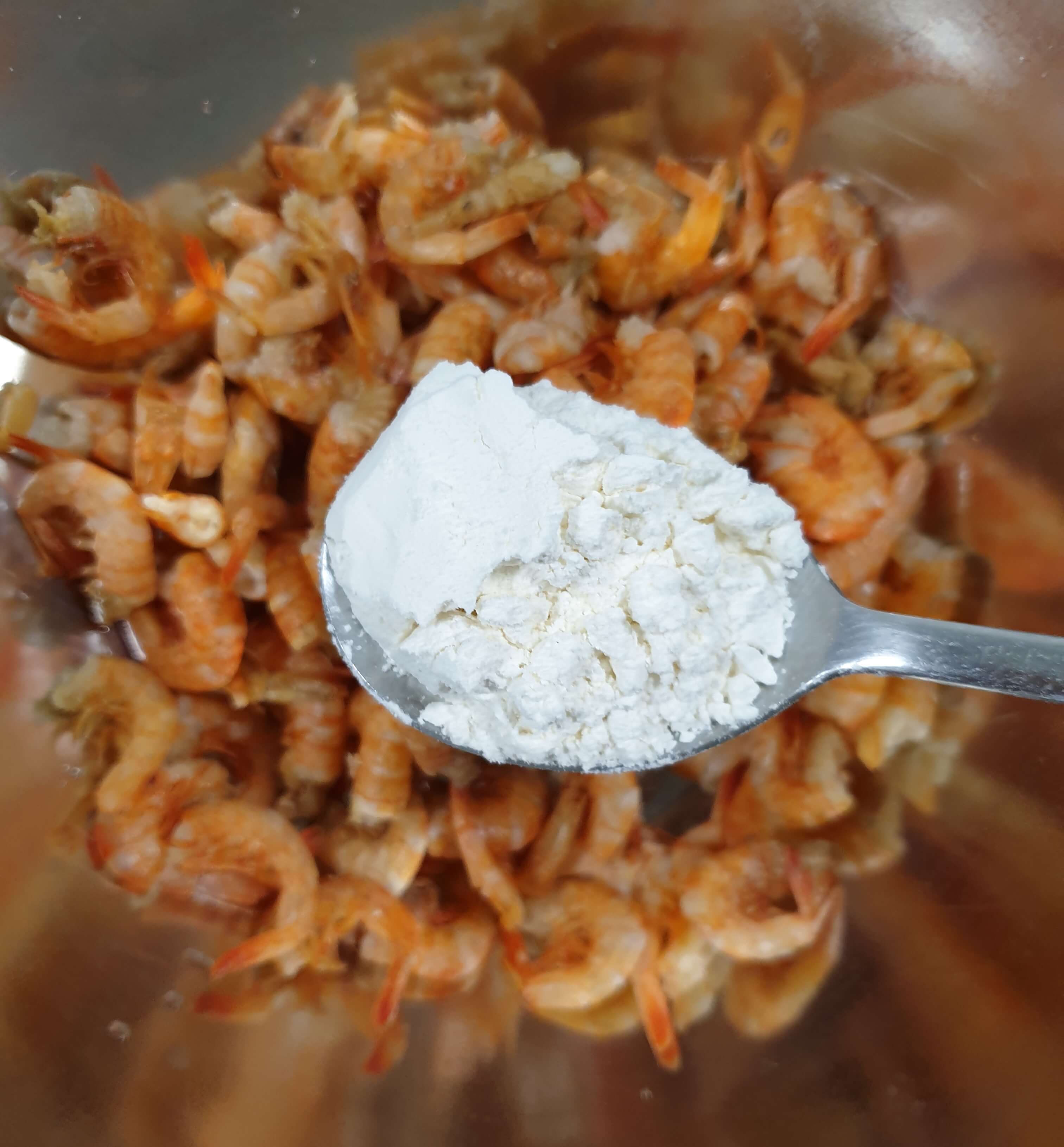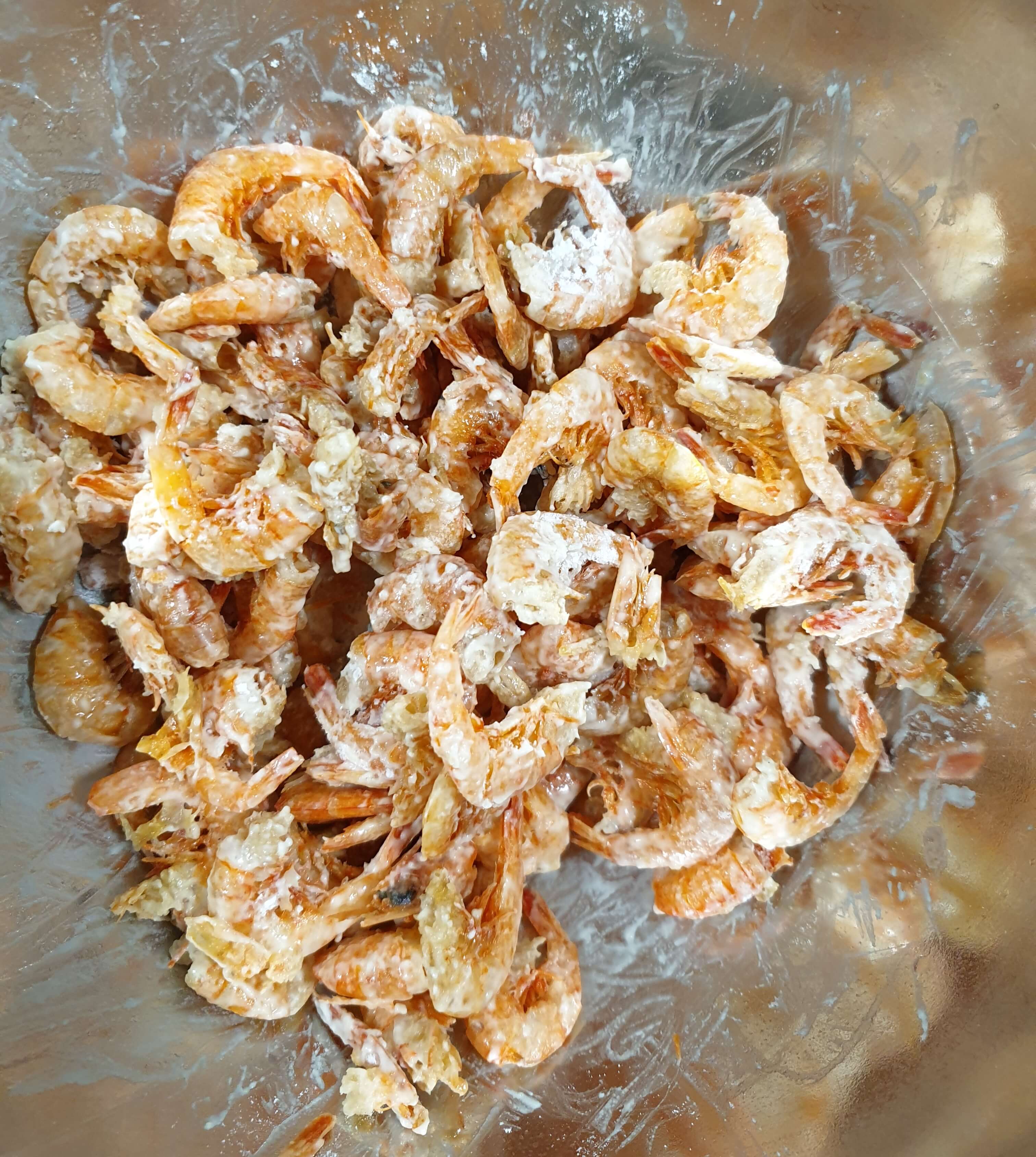 새우에 물기가 남은 상태에서