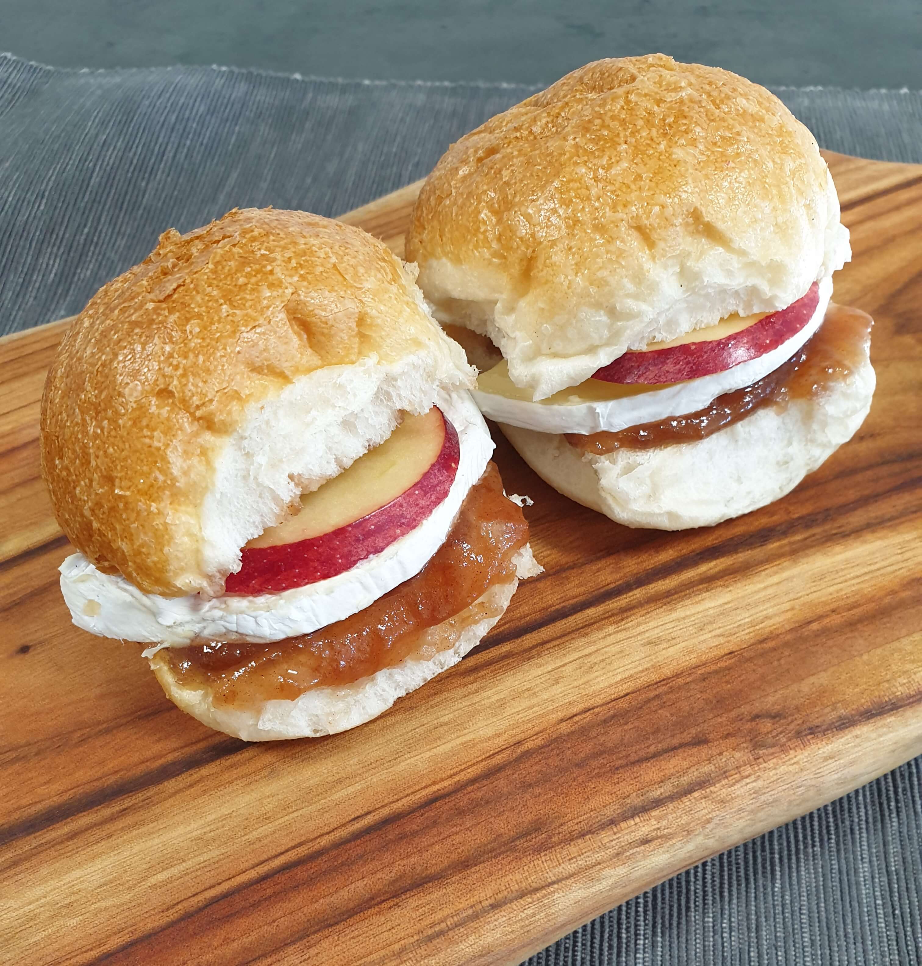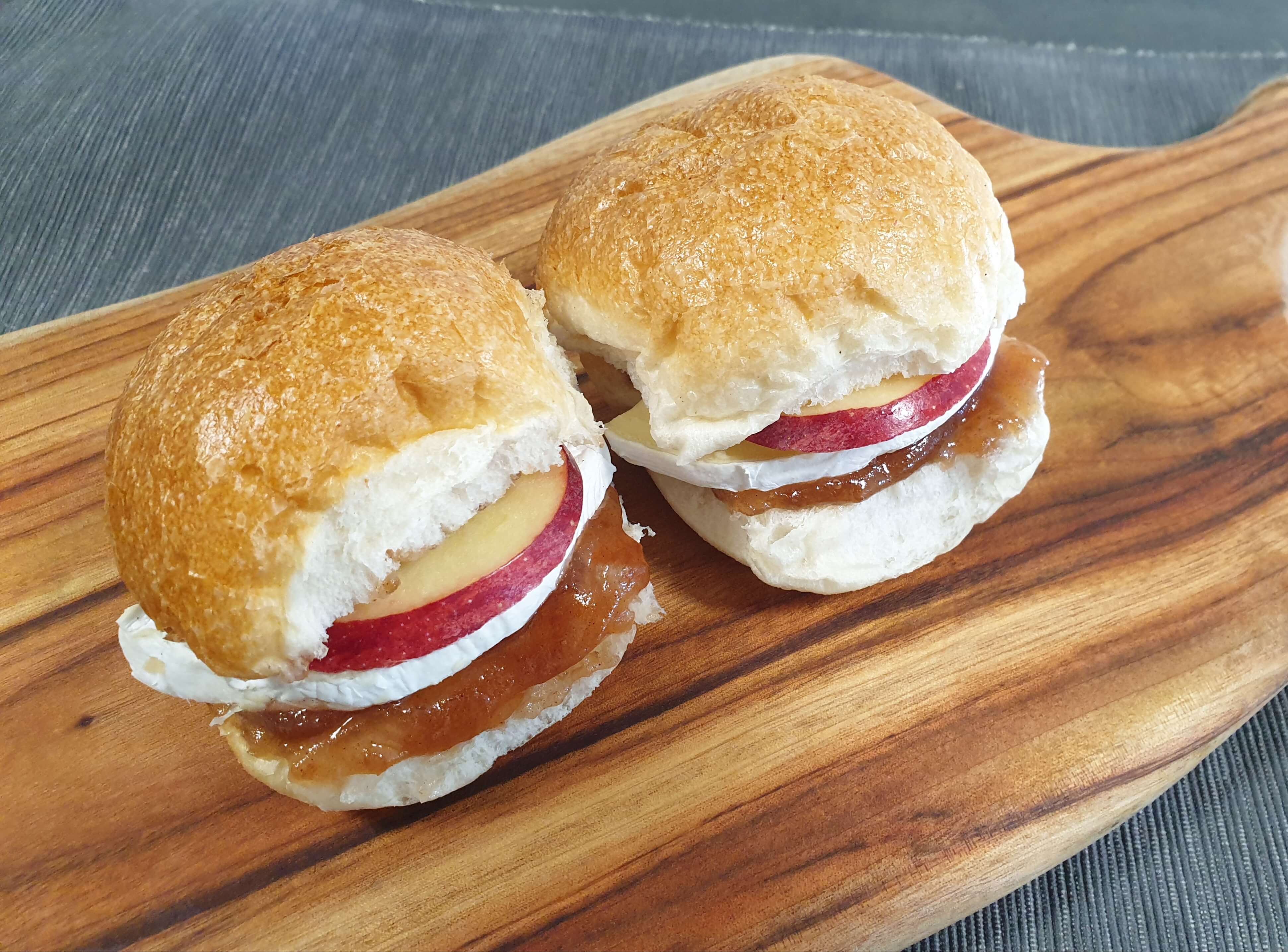 사치 빵 재료- 모닝빵, 사과, 사과잼, 브리치즈