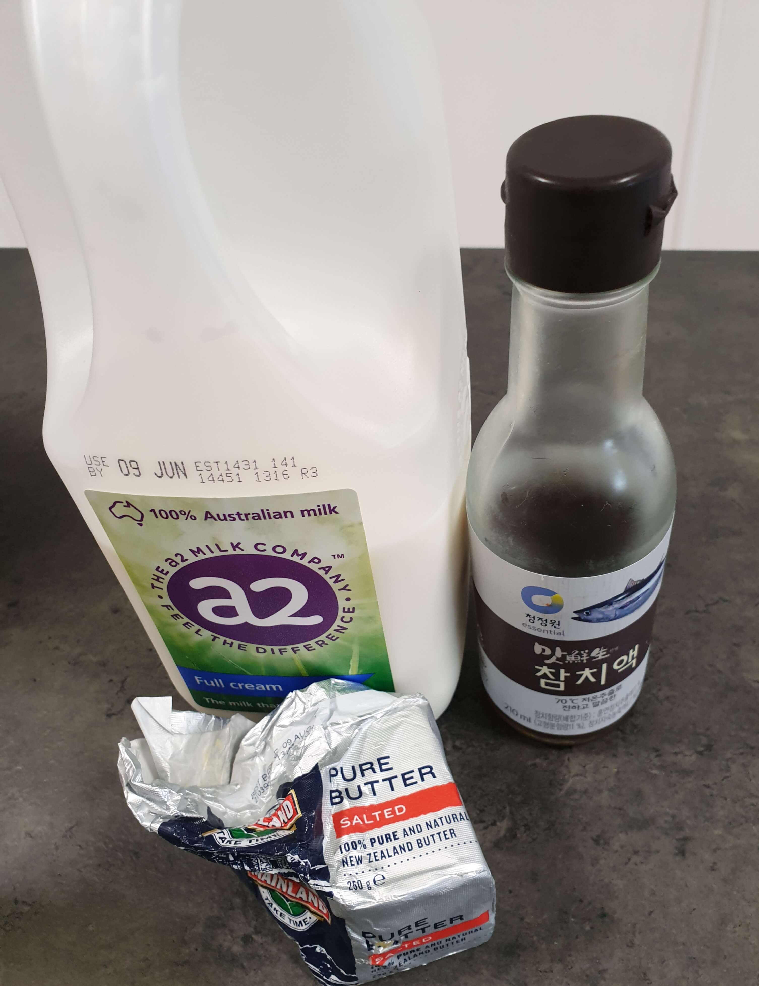 우유, 참치액, 버터, 다진 마늘을