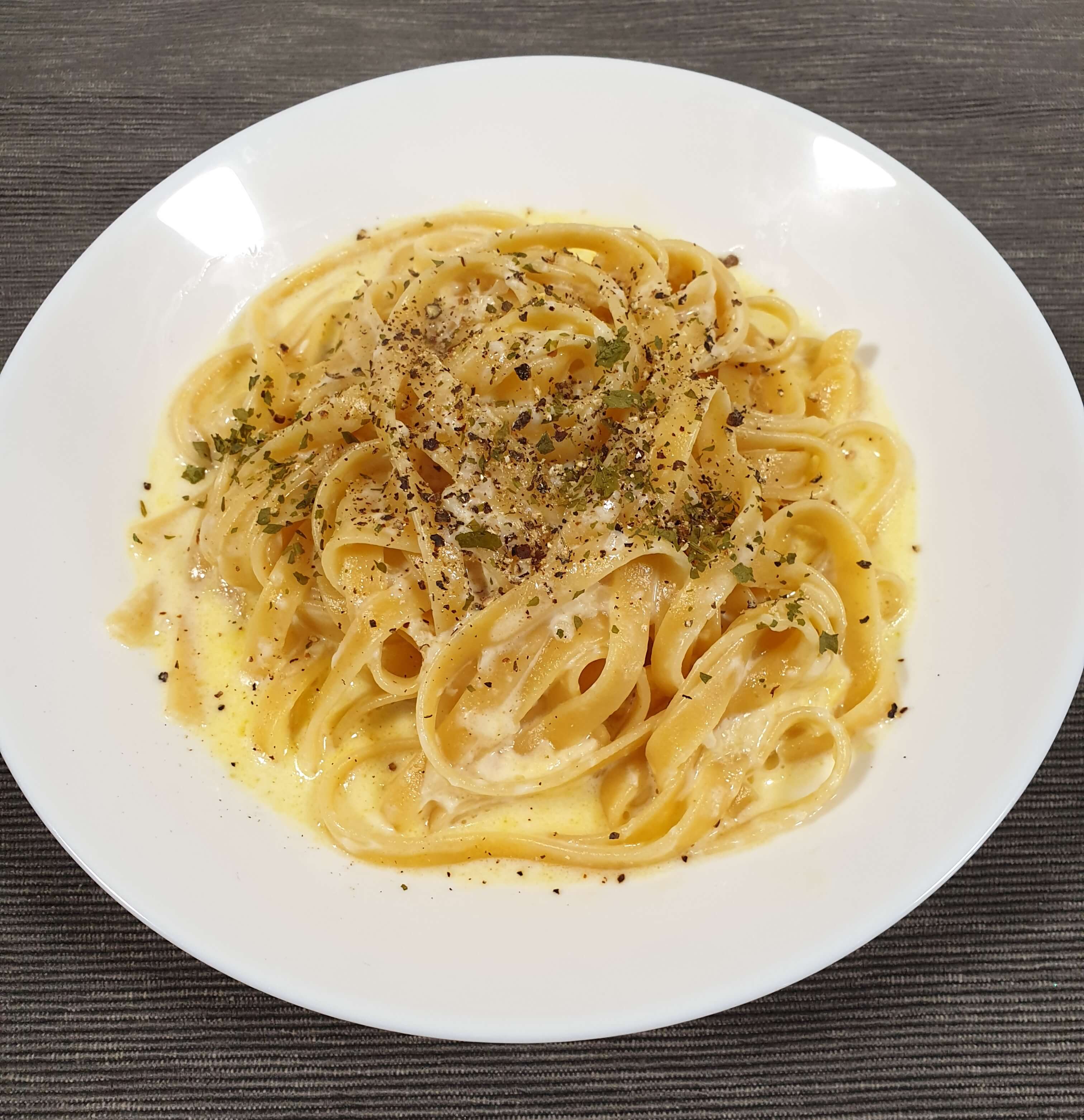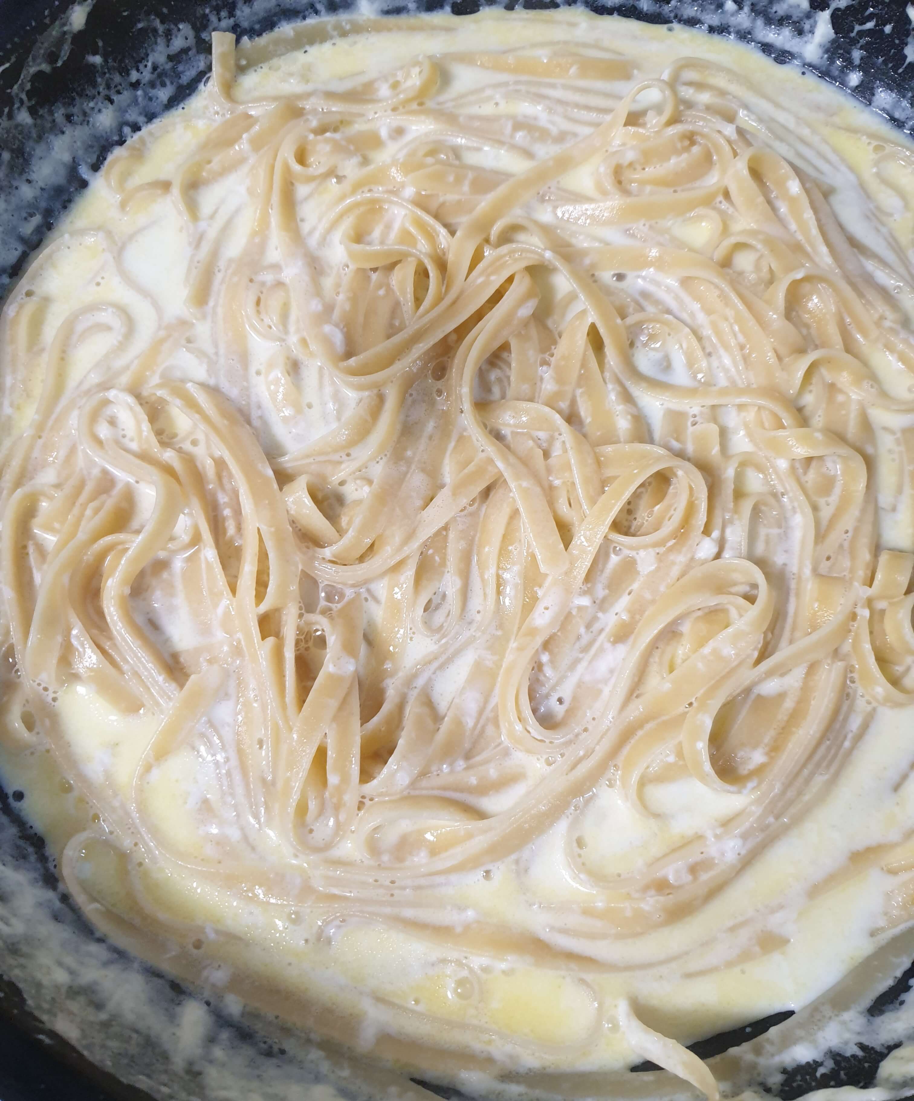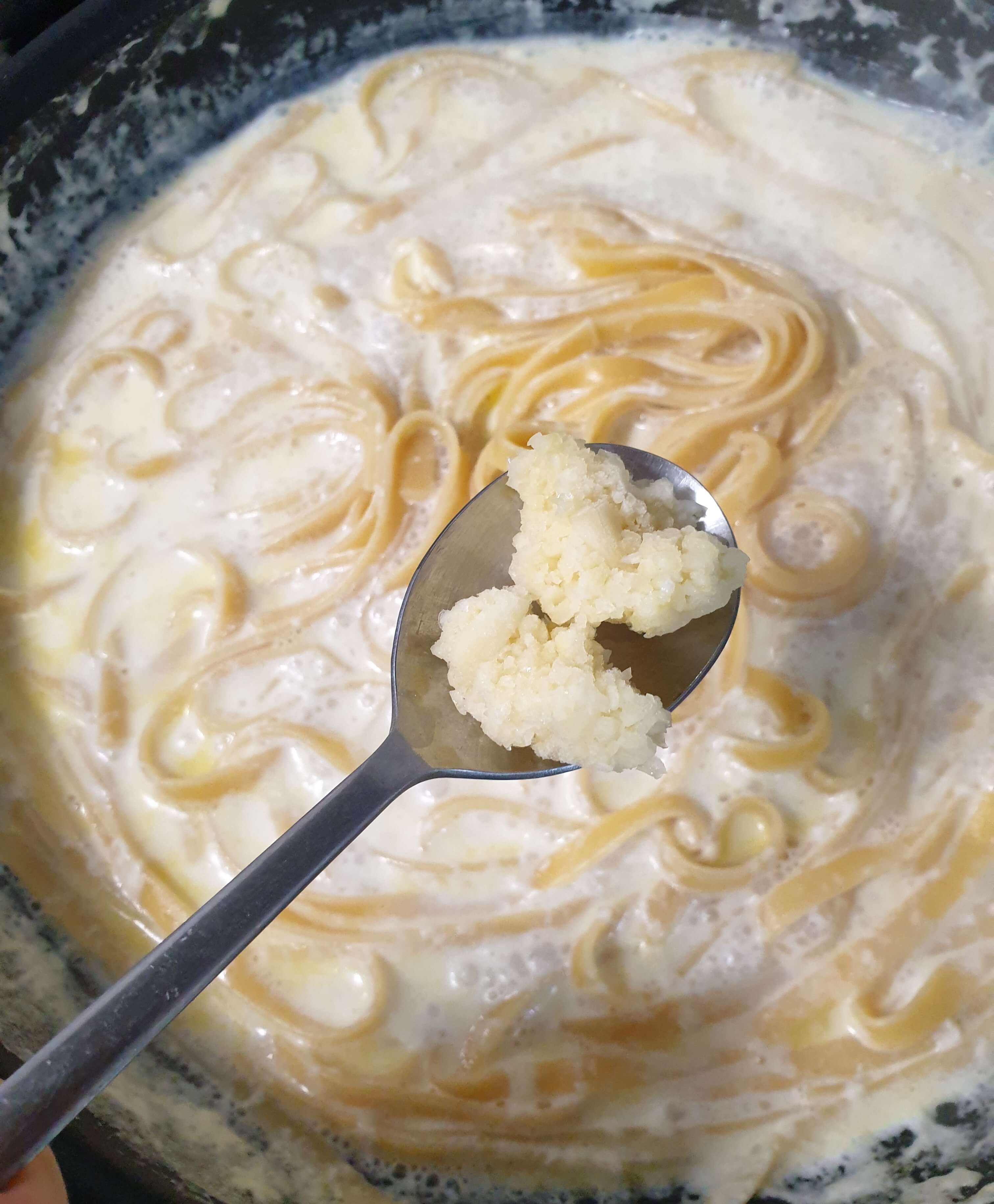 재료- 파스타면, 우유, 버터, 참치액, 마늘, 소금